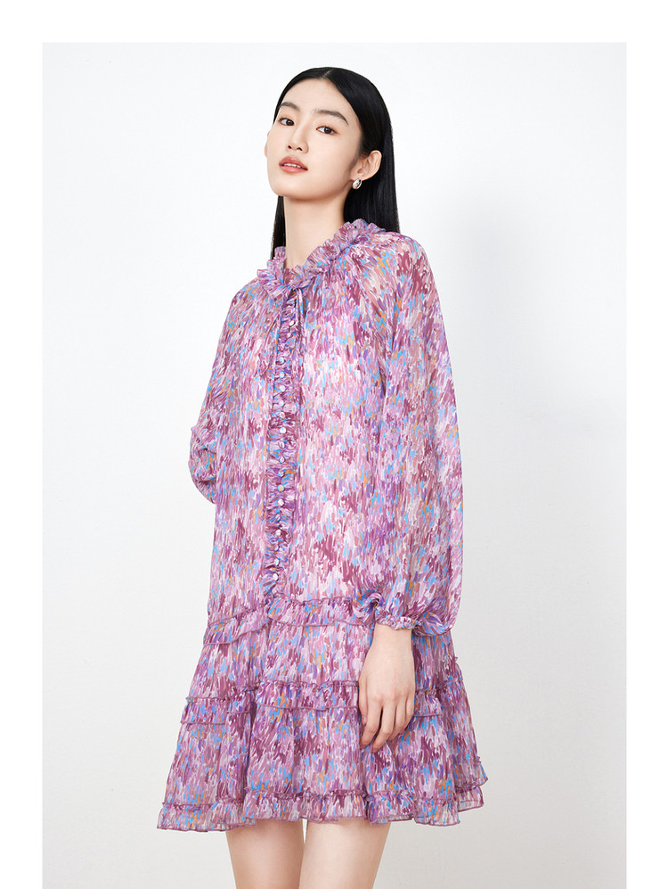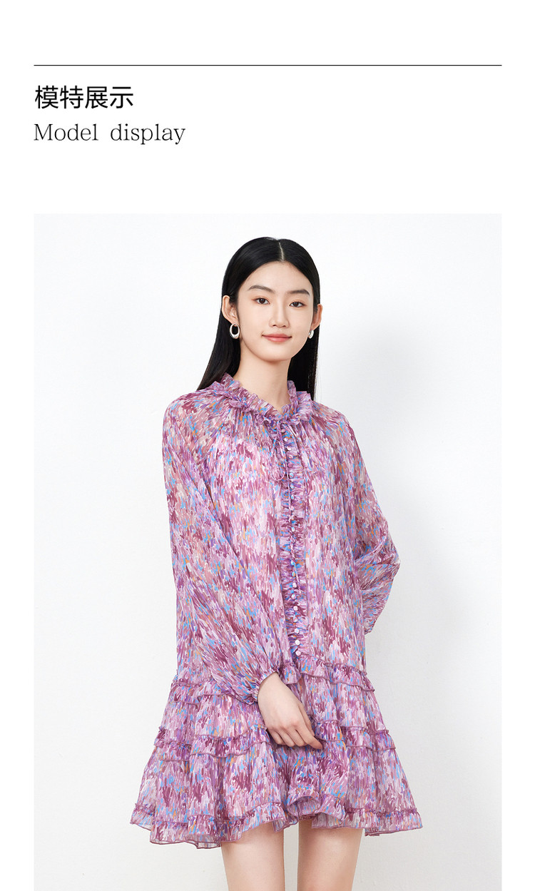 商品名称:玖姿旗下安娜蔻系列雪纺连衣裙女装夏季浪漫荷叶边裙子 697676