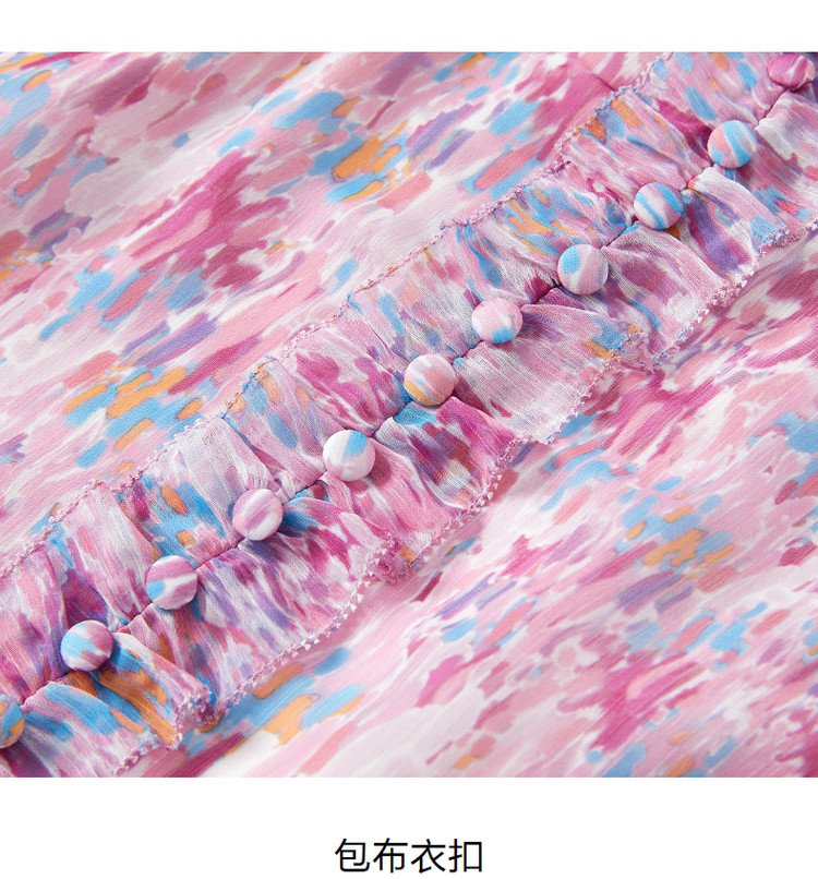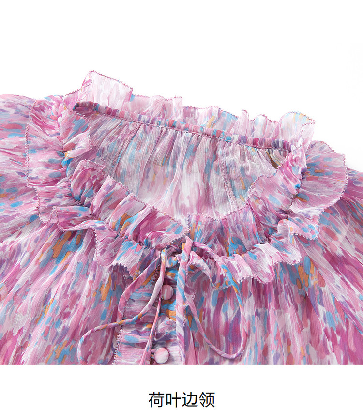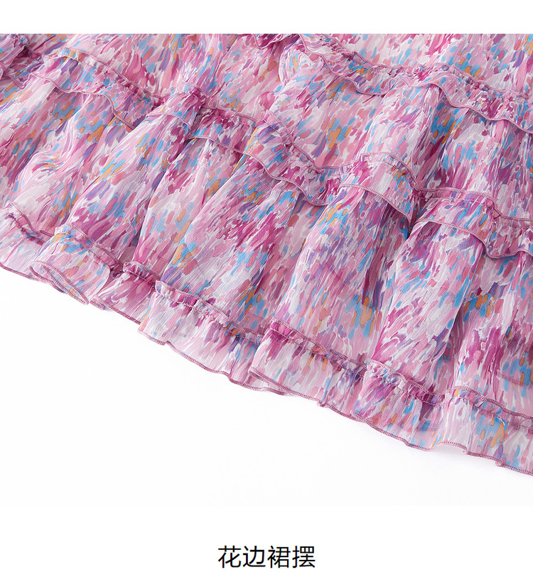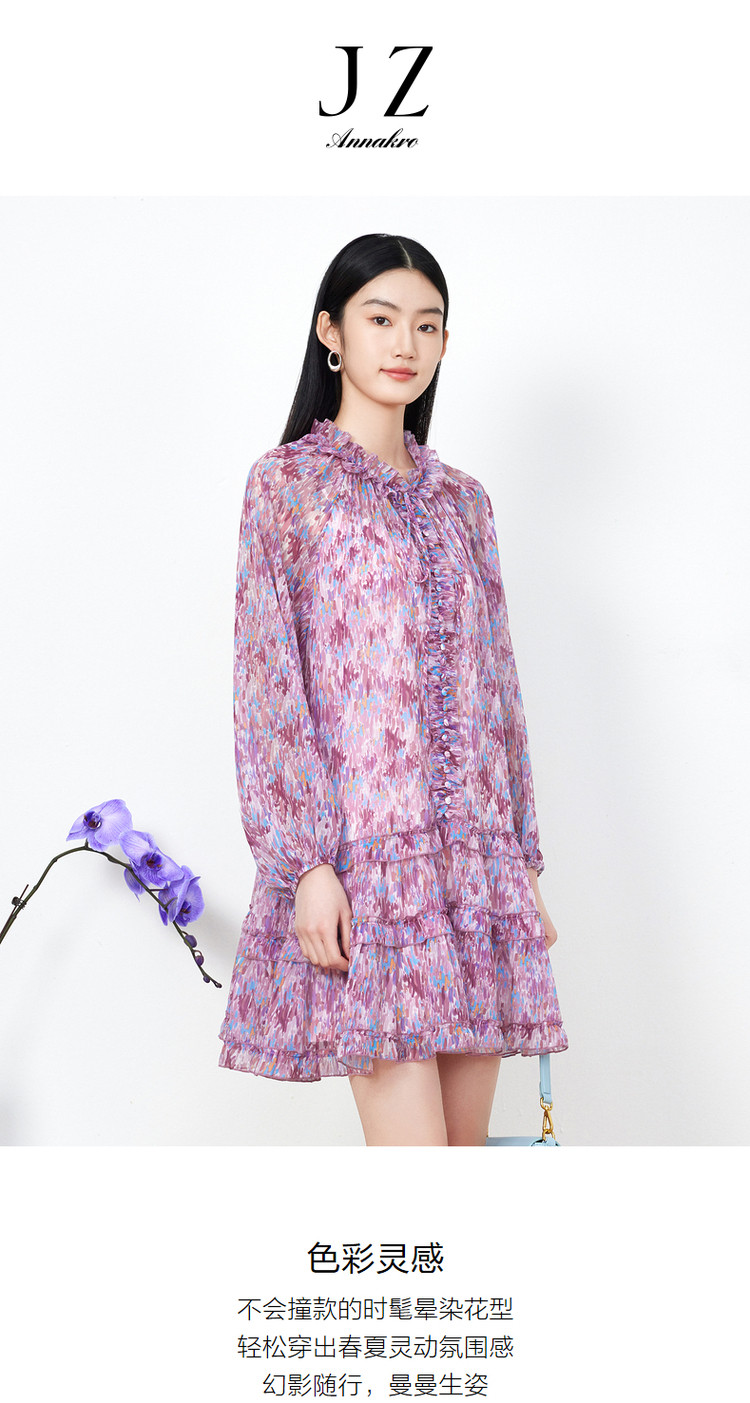 玖姿旗下安娜蔻系列雪纺连衣裙女装夏季浪漫荷叶边裙子 697676