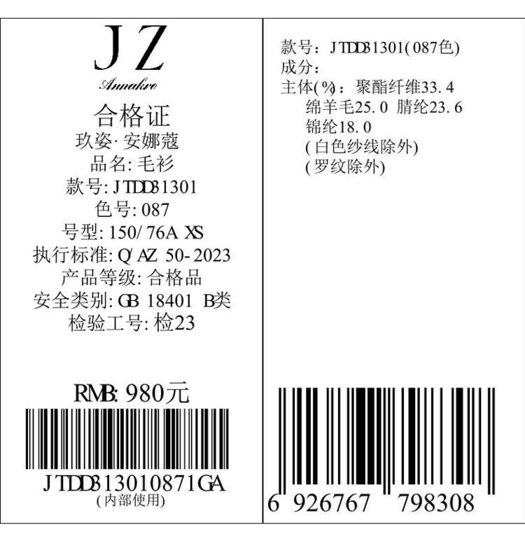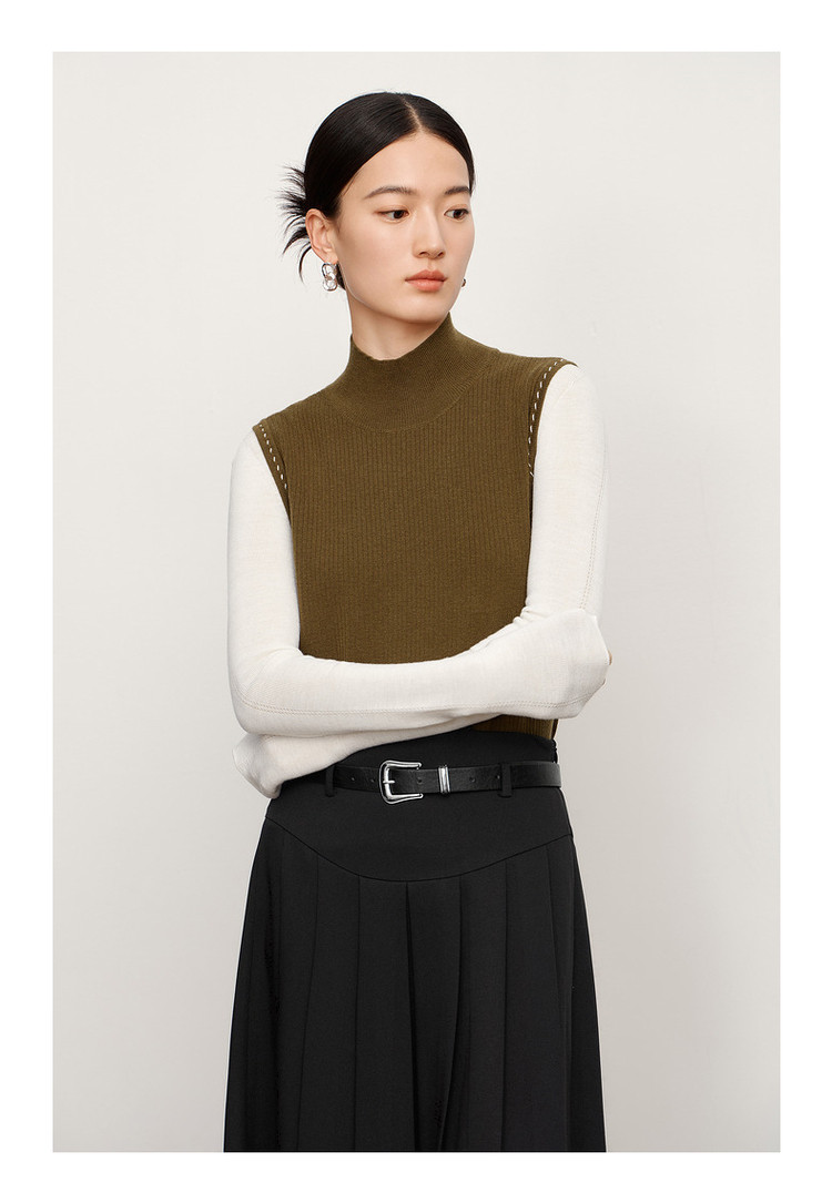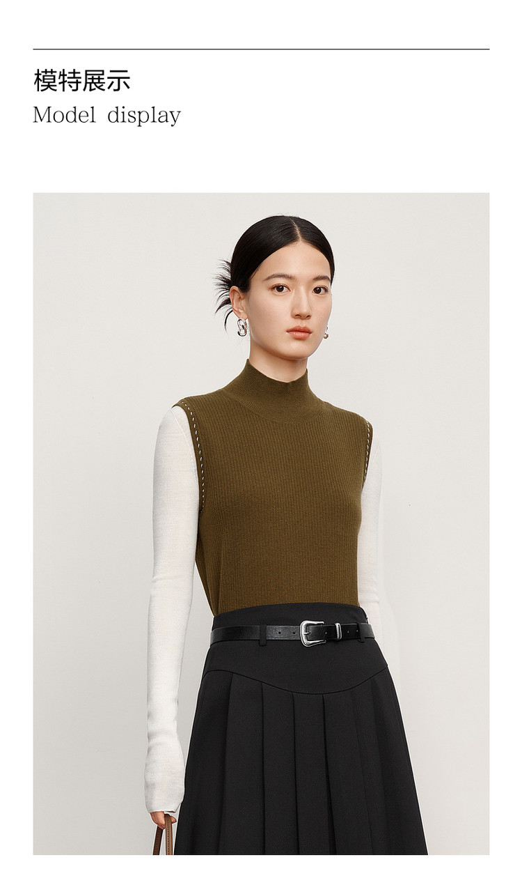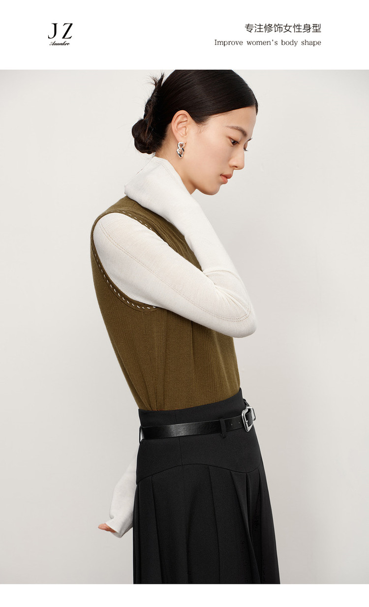 商品名称:玖姿旗下安娜蔻系列轻熟风针织衫简约半高领内搭背心女冬季 492492