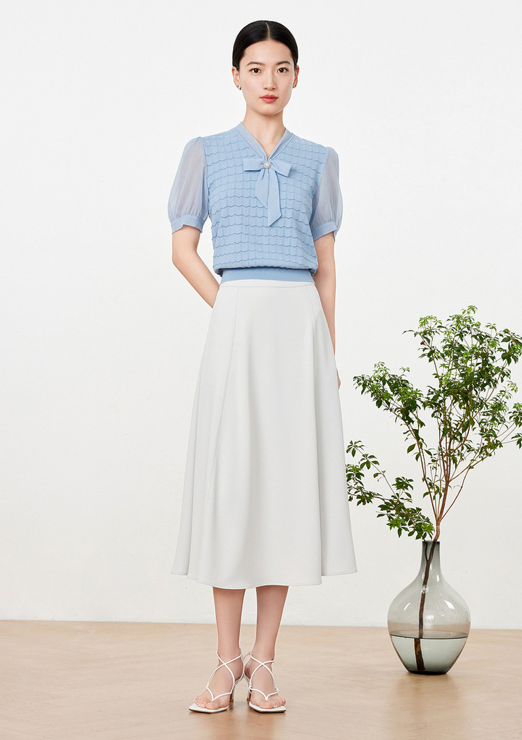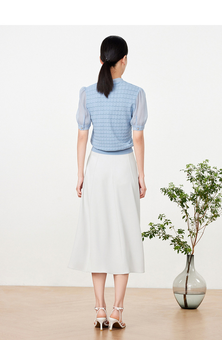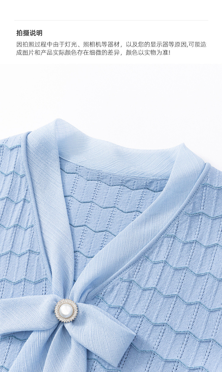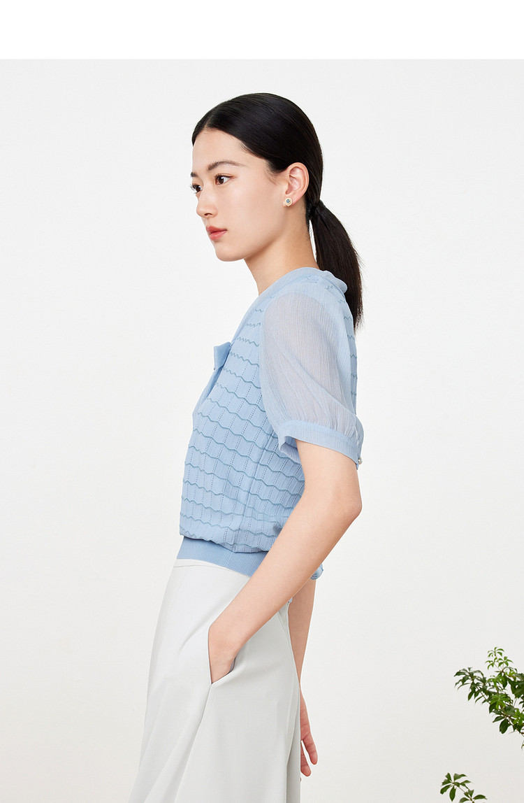 商品名称:玖姿旗下安娜蔻系列夏季气质V领泡泡袖女式短袖针织衫 469196