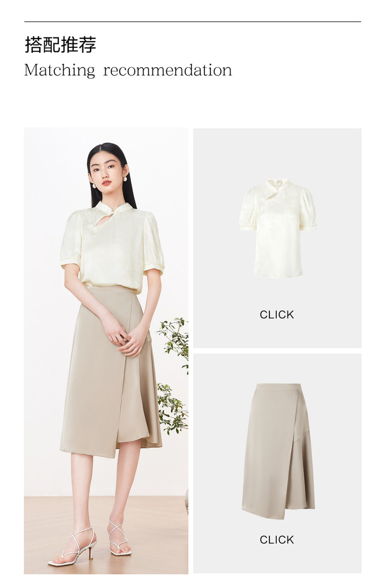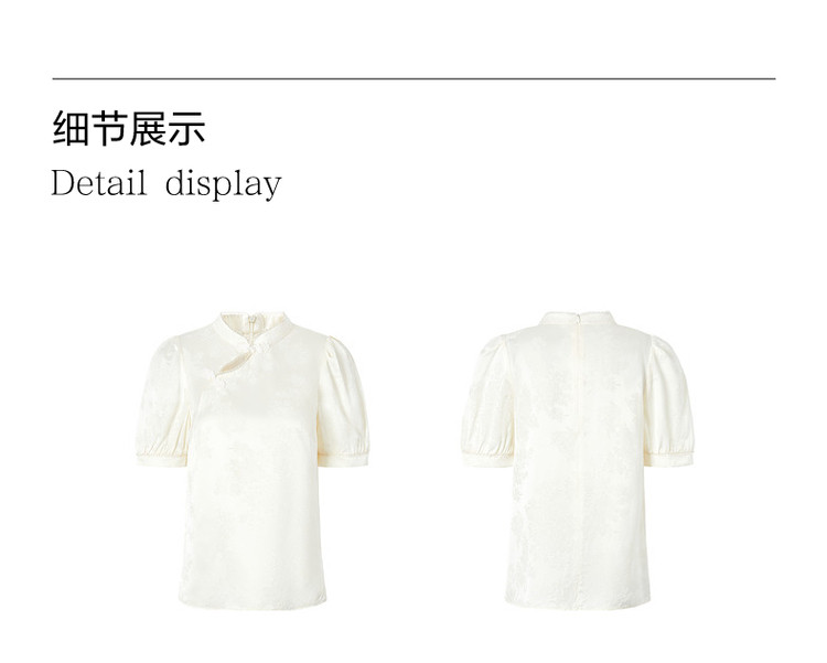 商品名称:旗下安娜蔻系列洋气新中式国风立领盘扣直筒缎面套头衫女装夏新 195724