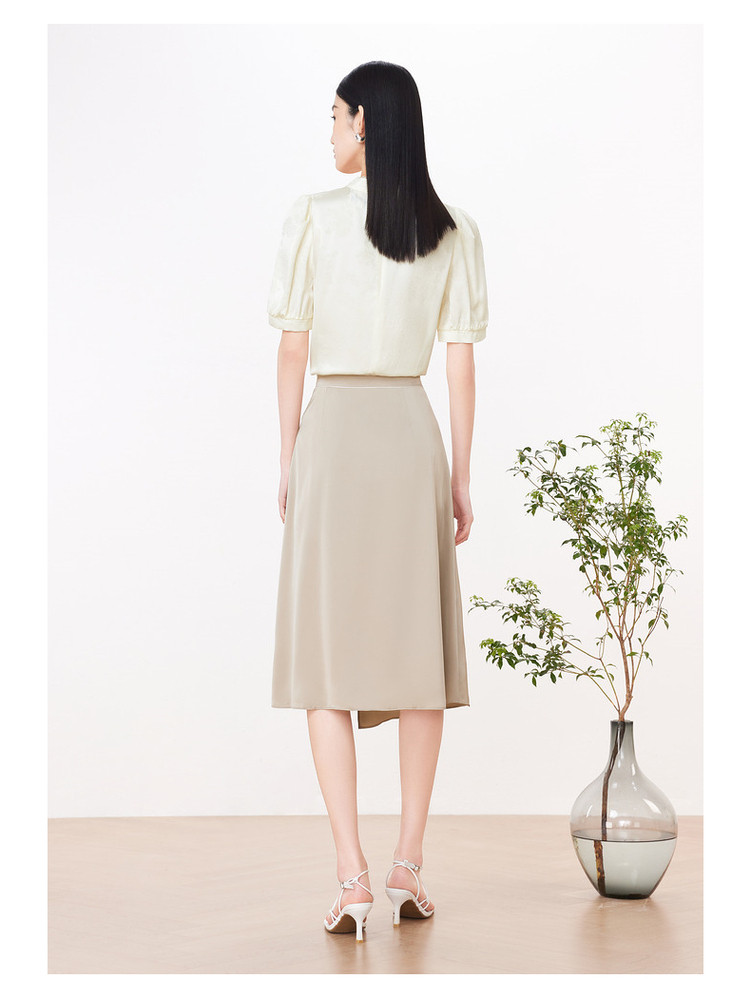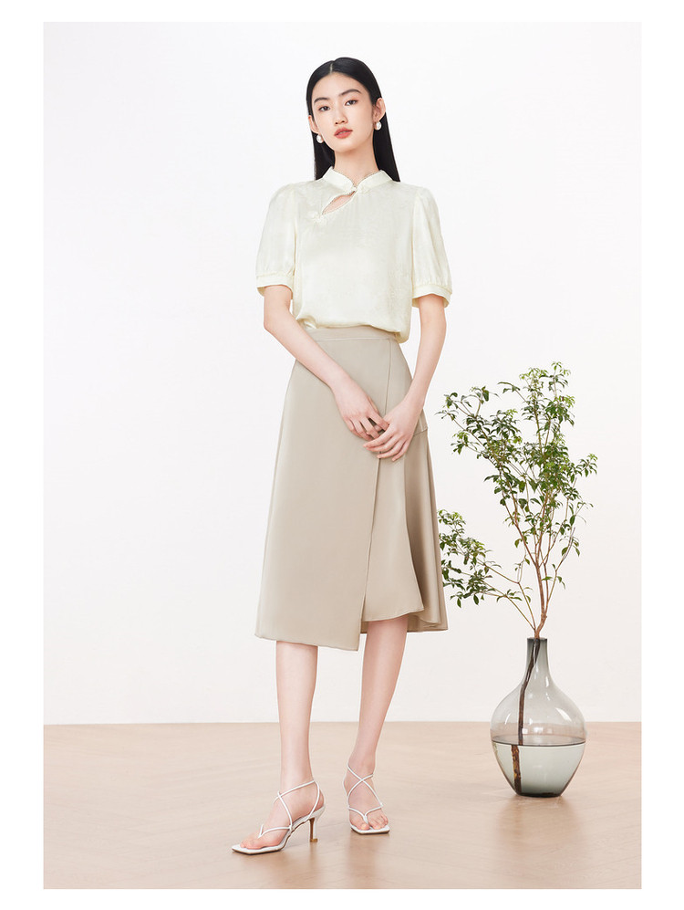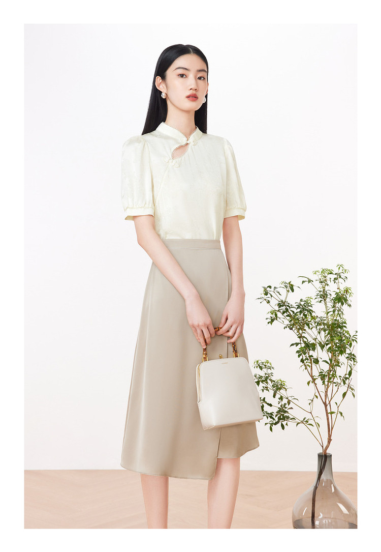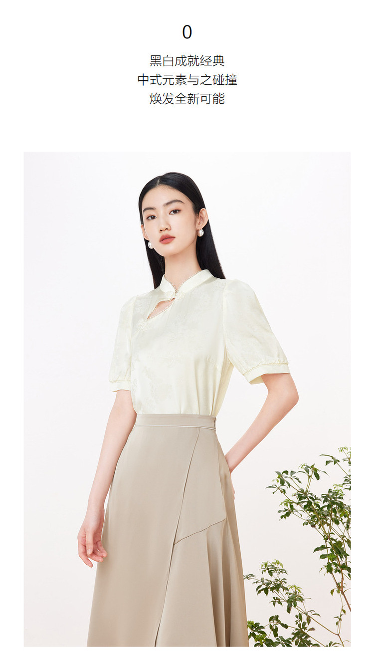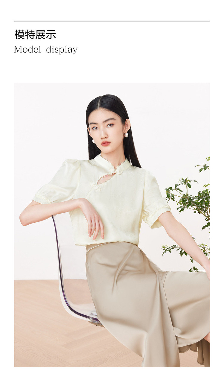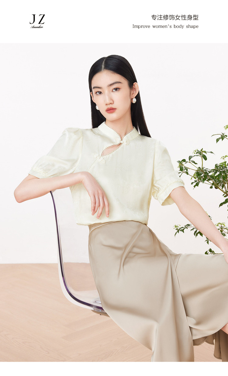 旗下安娜蔻系列洋气新中式国风立领盘扣直筒缎面套头衫女装夏新 195724