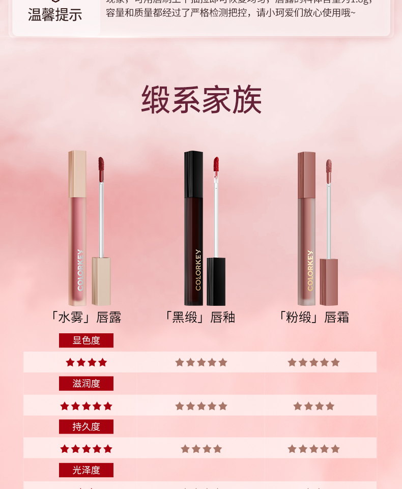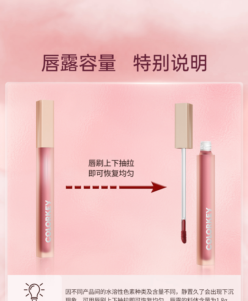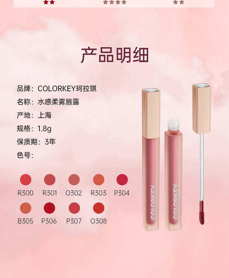 商品名称:Colorkey/珂拉琪 水雾唇露镜面雾面唇釉 1.8g