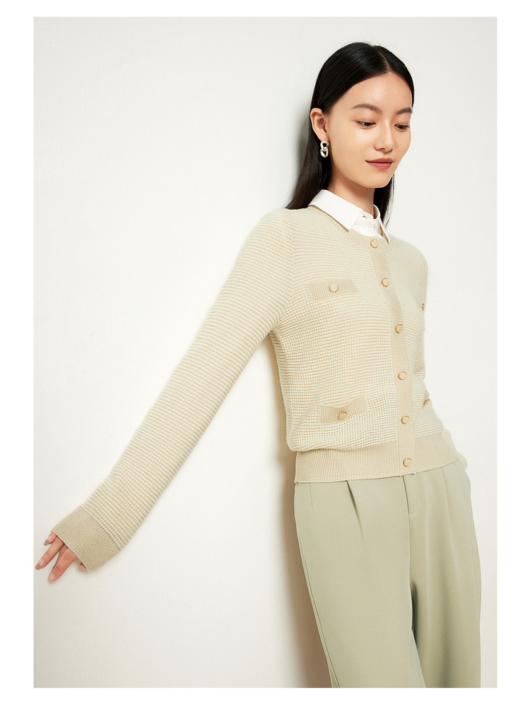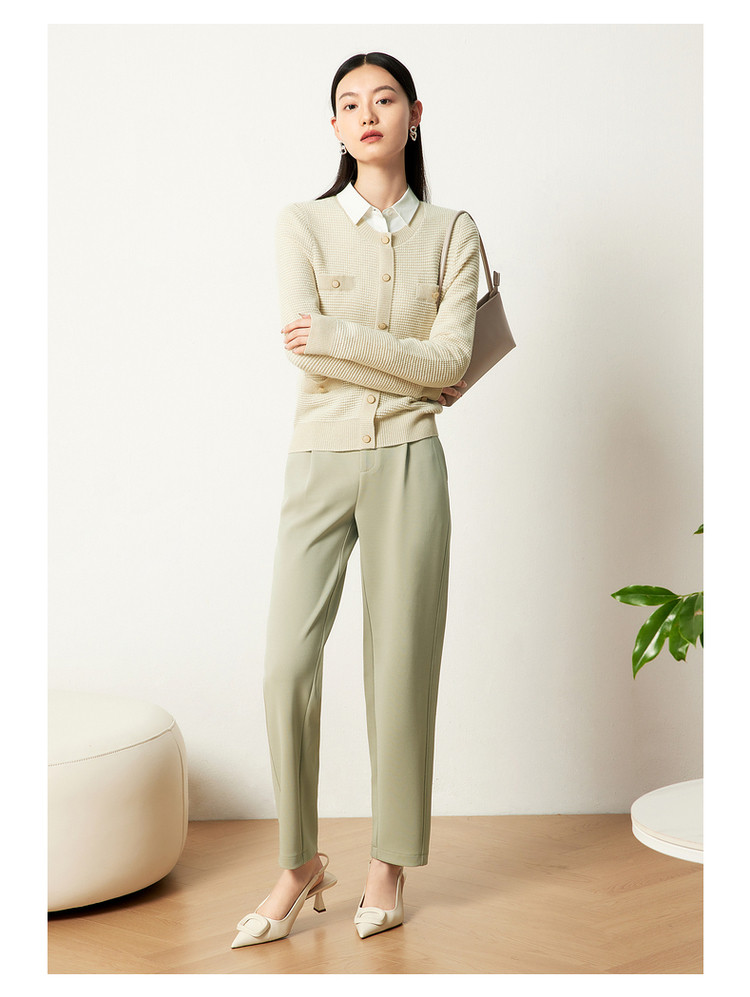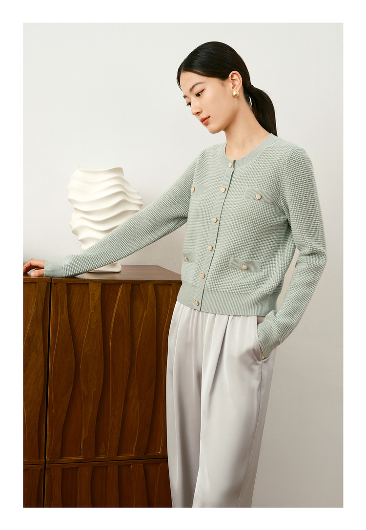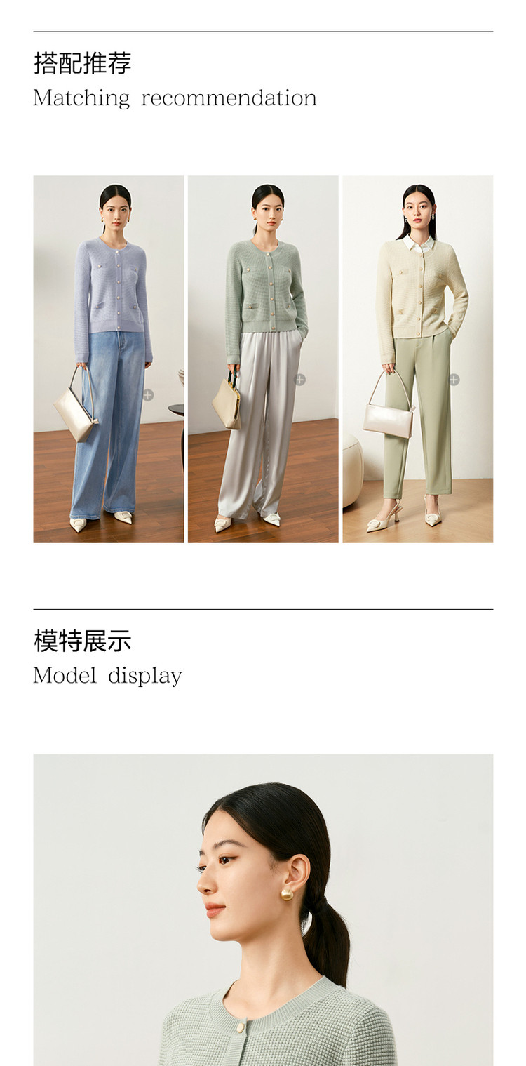 商品名称:【薄荷曼波】玖姿旗下安娜蔻系列小香风圆领H型绵羊毛套头毛衫 780876