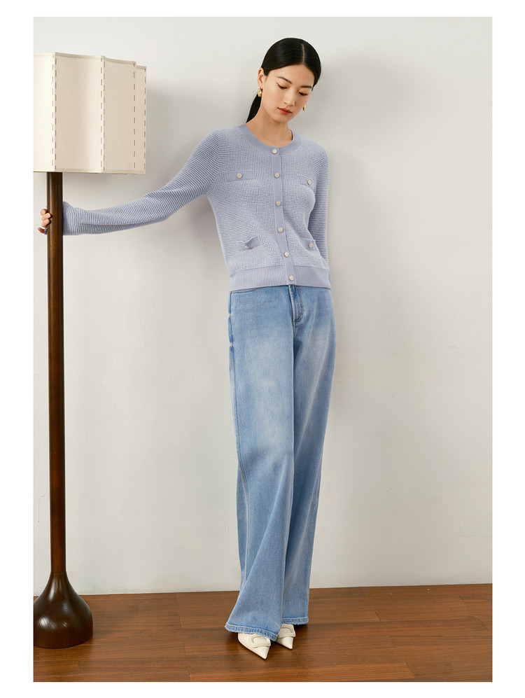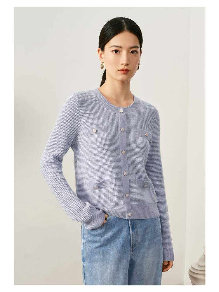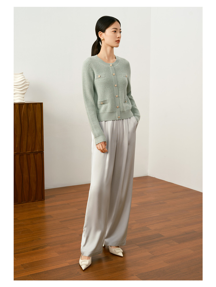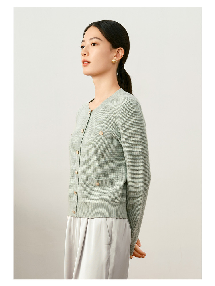 商品名称:【薄荷曼波】玖姿旗下安娜蔻系列小香风圆领H型绵羊毛套头毛衫 780876