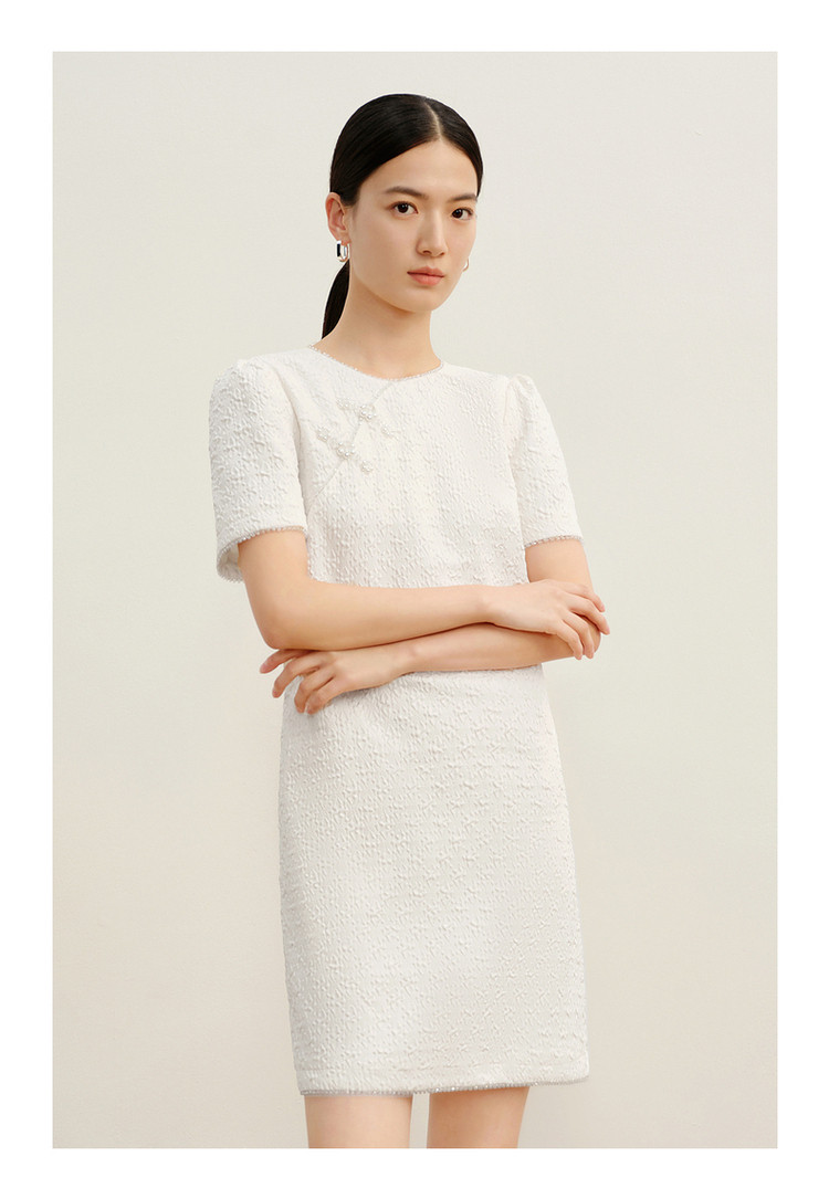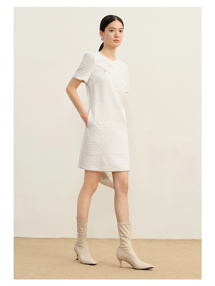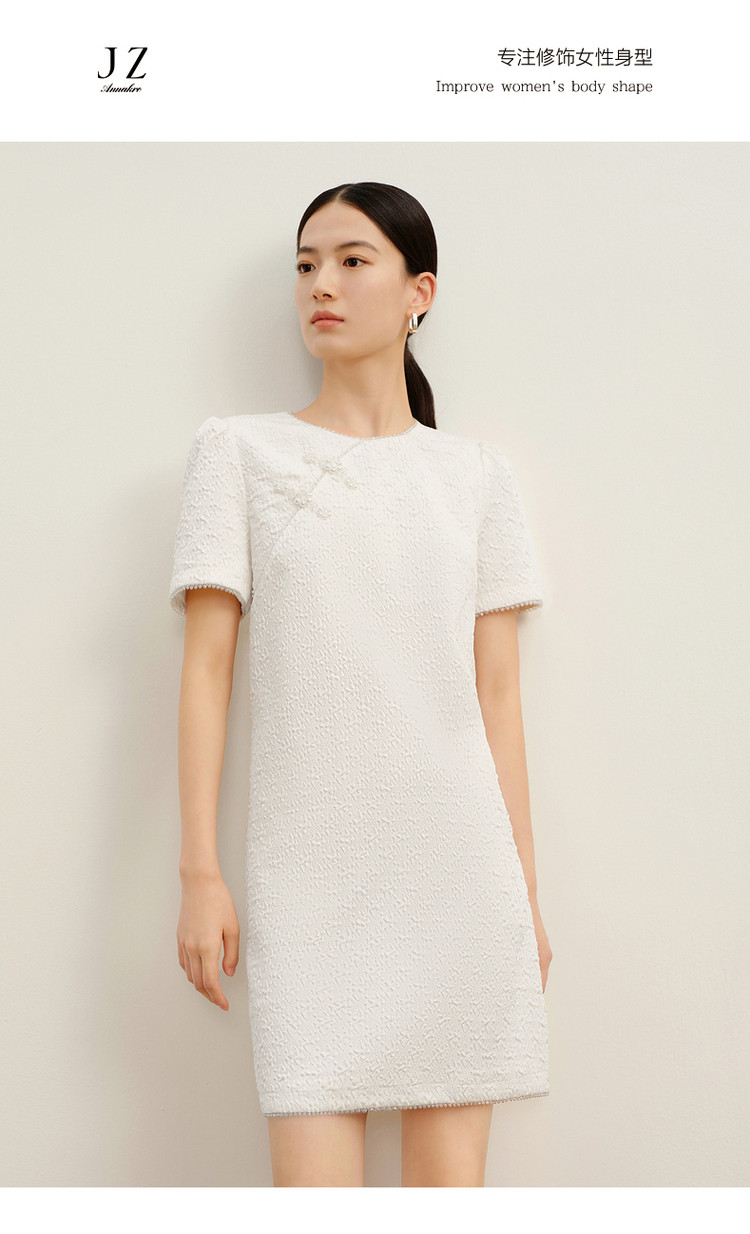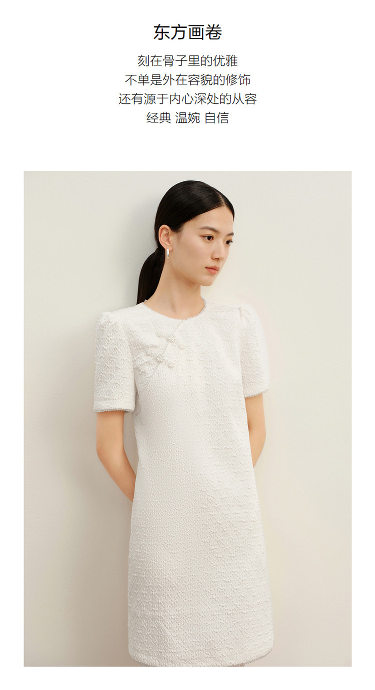 商品名称:玖姿旗下安娜蔻系列中式国风直筒肌理提花中长款连衣裙女秋季 900364