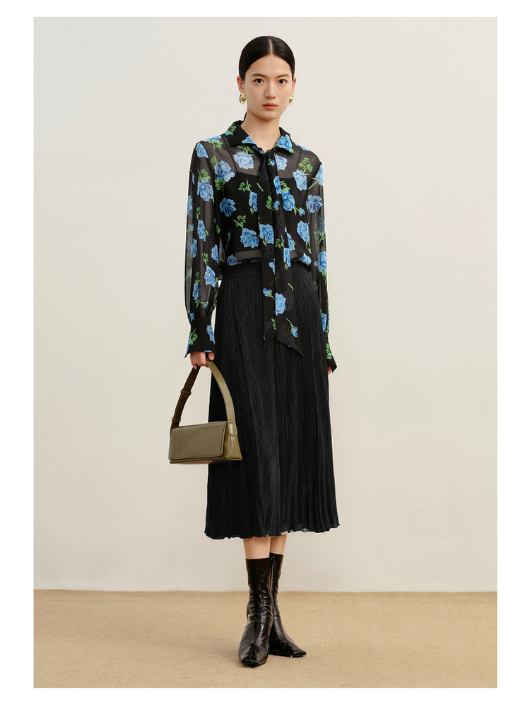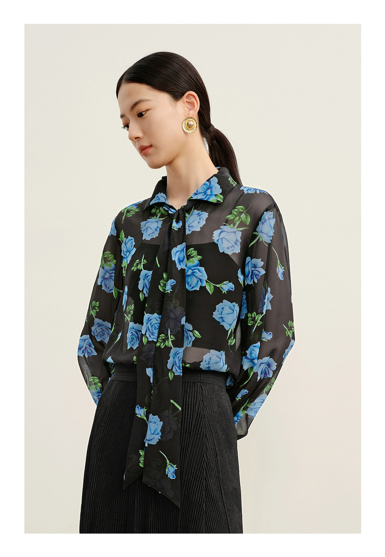 商品名称:玖姿旗下安娜蔻系列洋气法式复古肌理雪纺长袖衬衫女秋季 071628