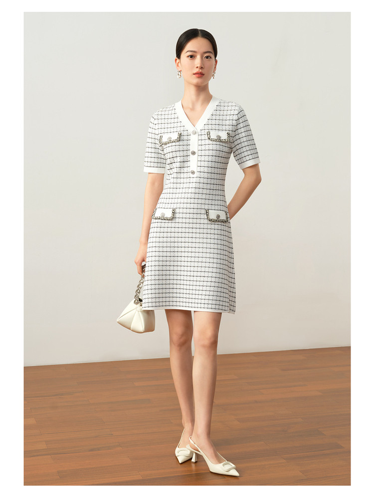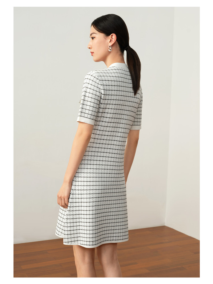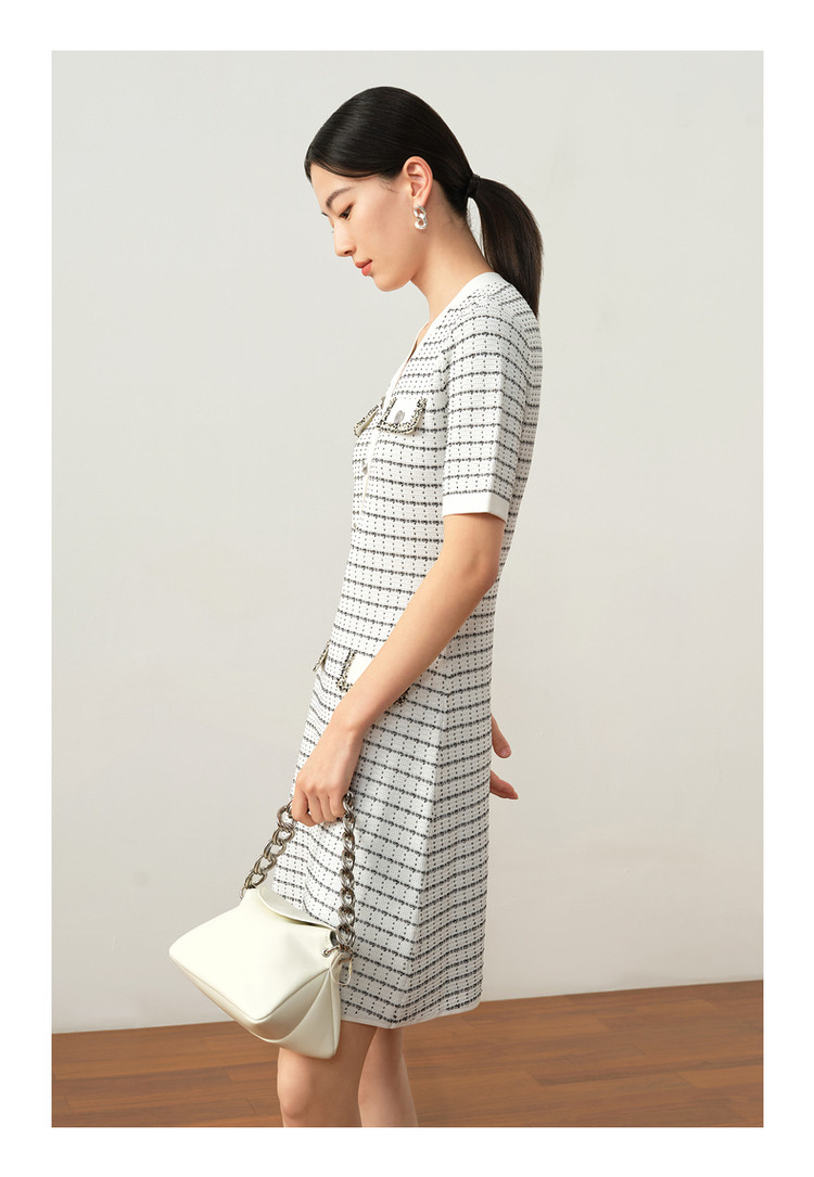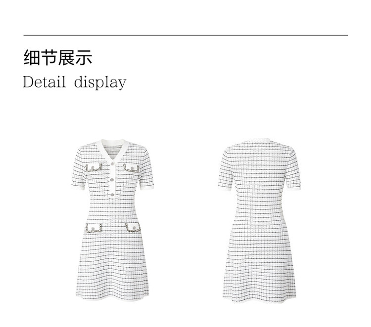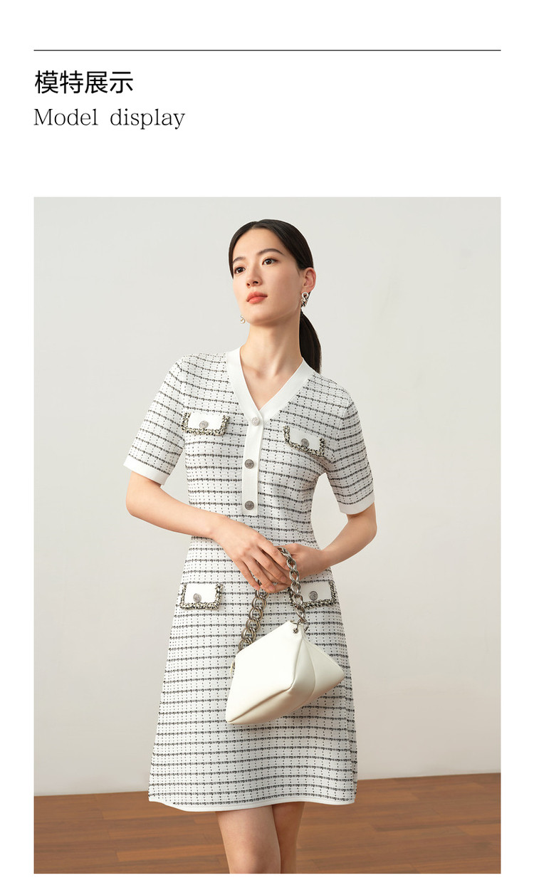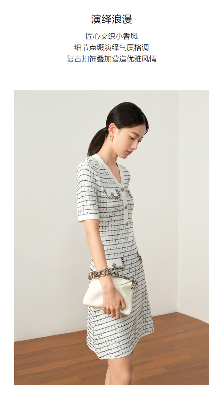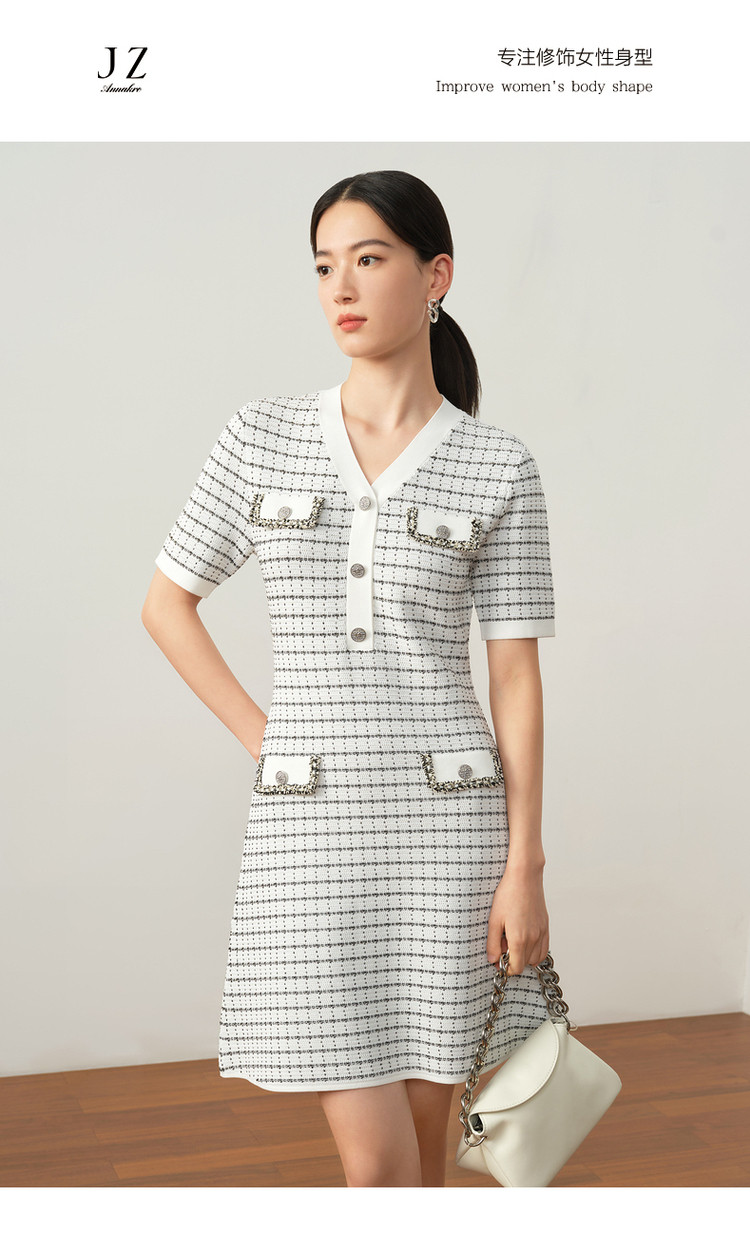 商品名称:玖姿旗下安娜蔻系列肌理小香风收腰短袖针织连衣裙女秋季 859020