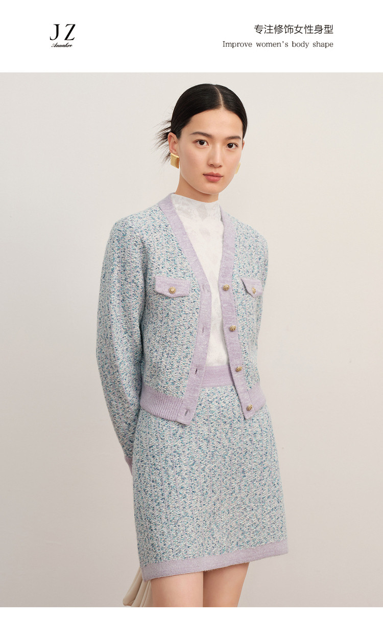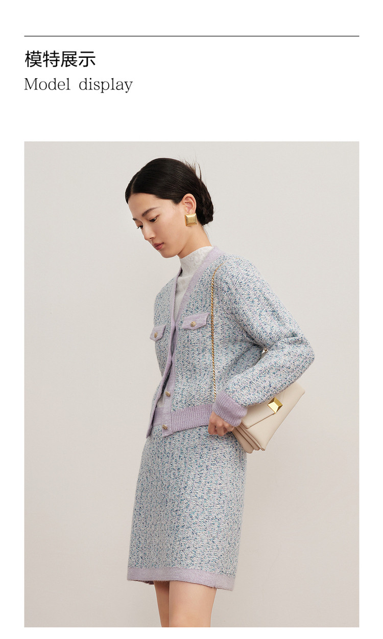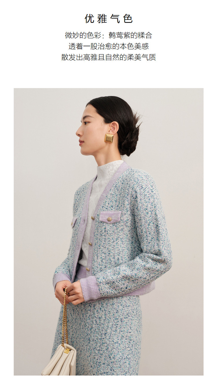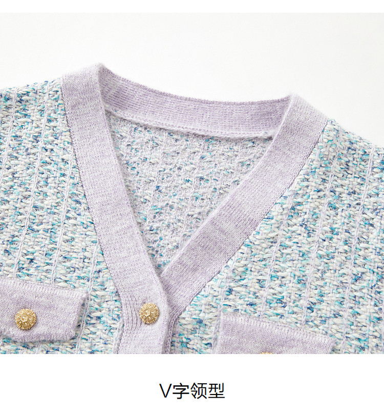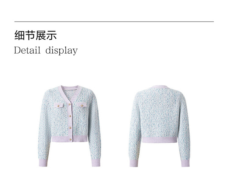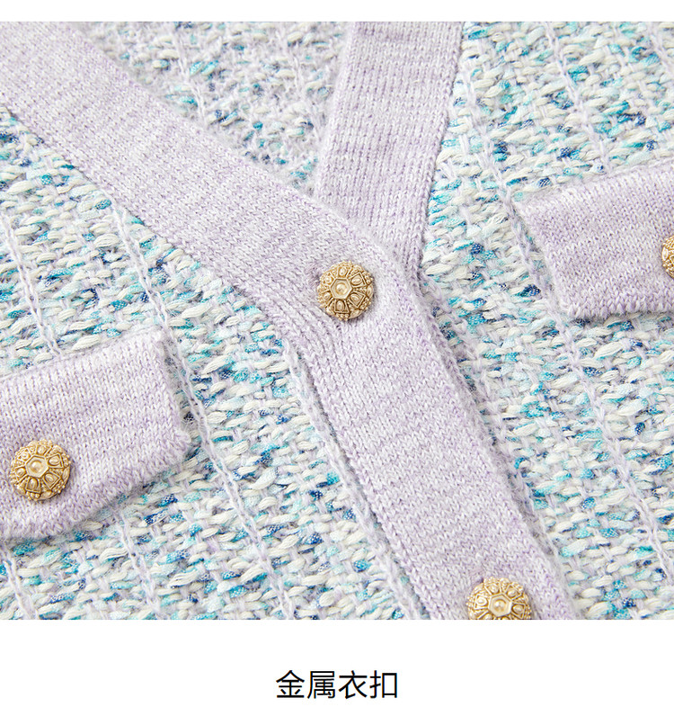 商品名称:玖姿旗下安娜蔻系列小香风渐变花纱针织毛衣开衫外套女冬季 092044