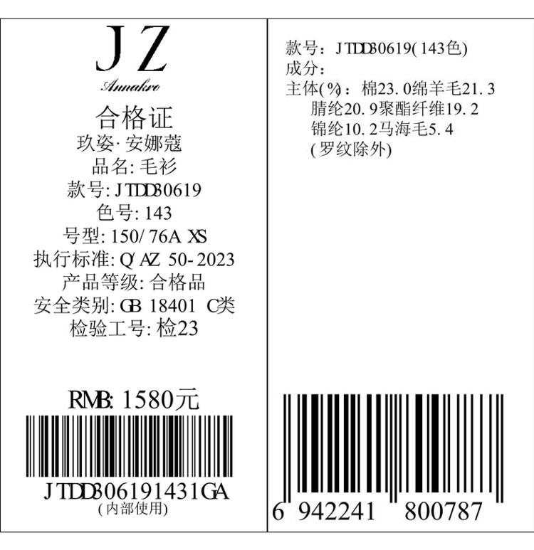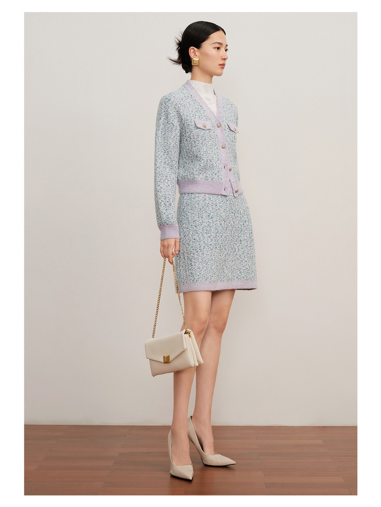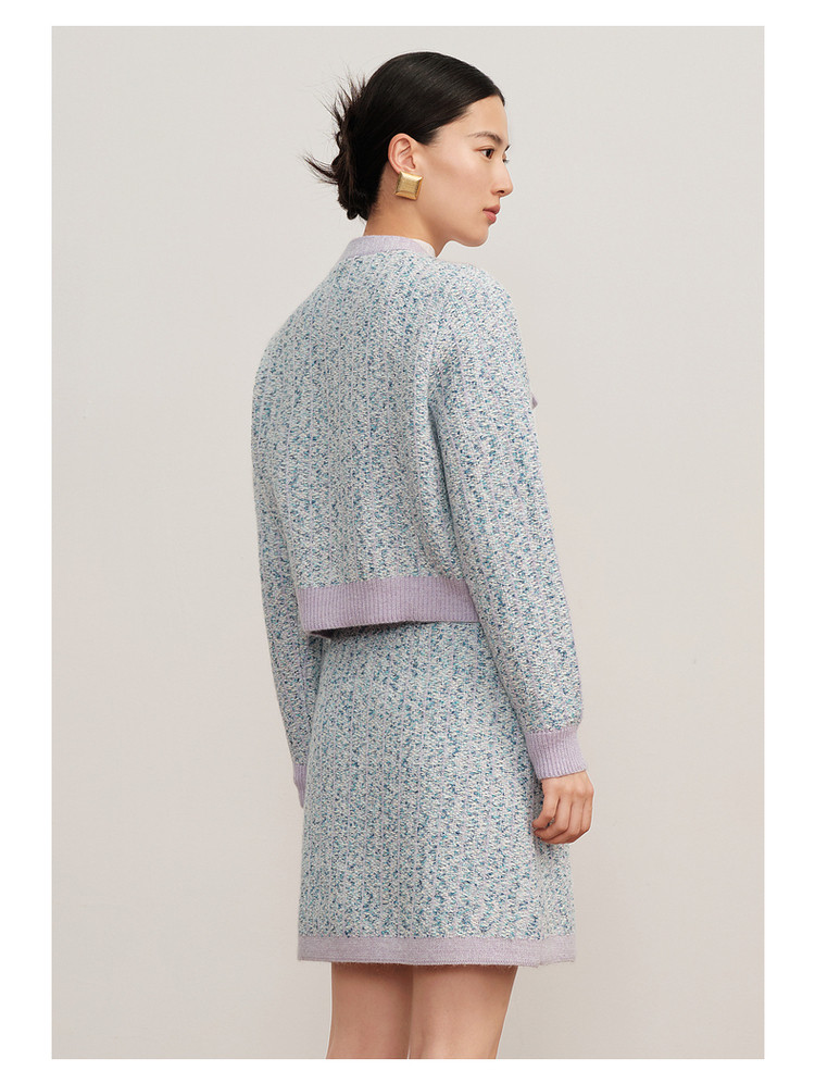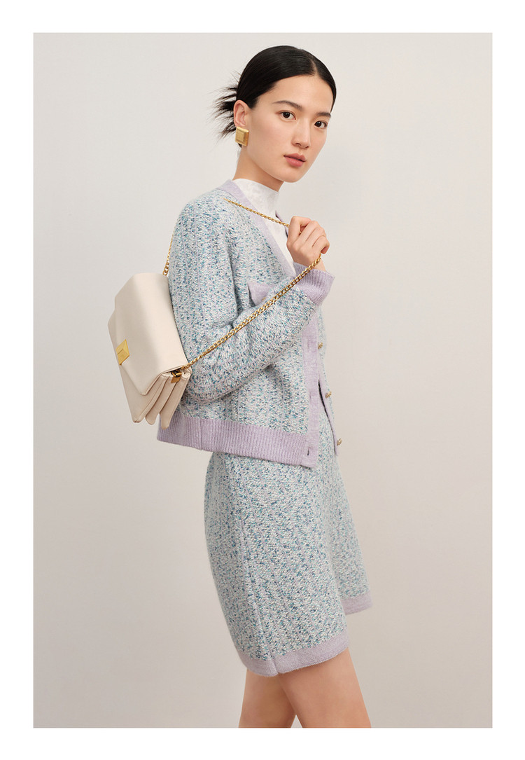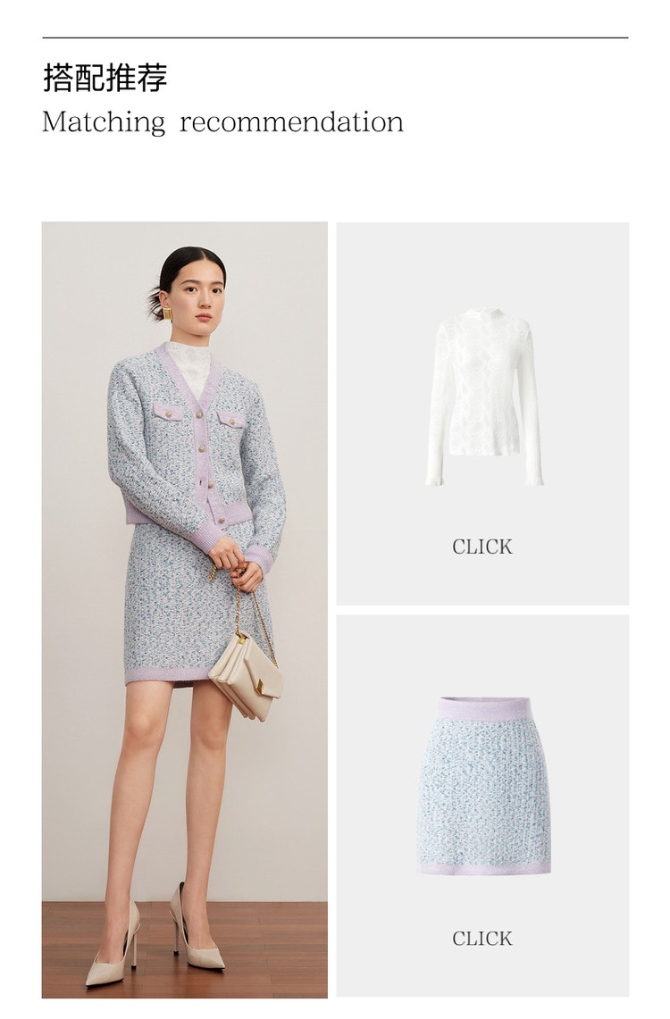 商品名称:玖姿旗下安娜蔻系列小香风渐变花纱针织毛衣开衫外套女冬季 092044