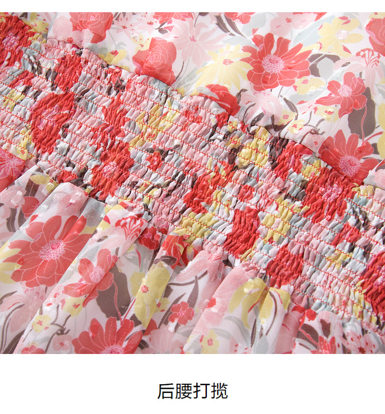 玖姿旗下安娜蔻系列法式田园雪纺印花连衣裙女秋季 730828