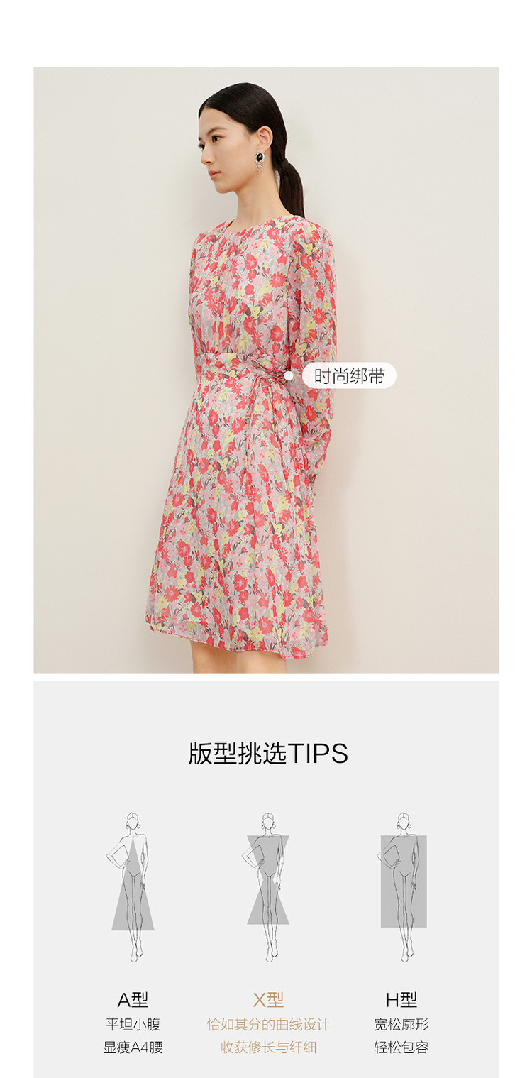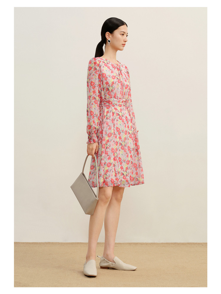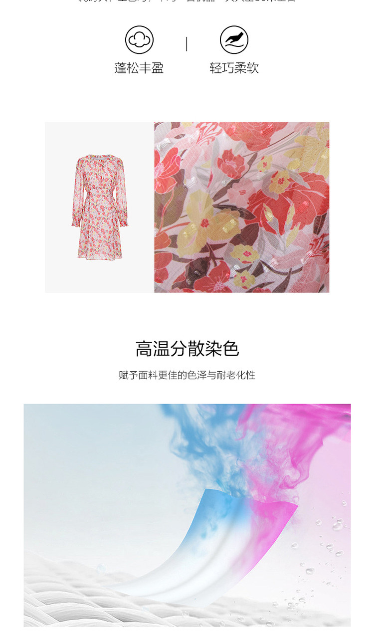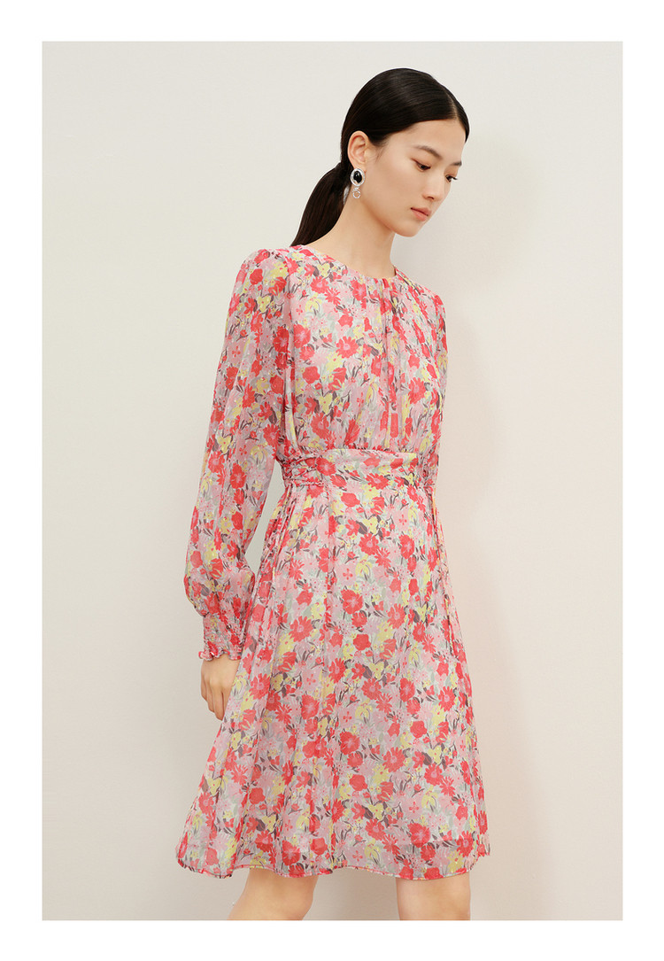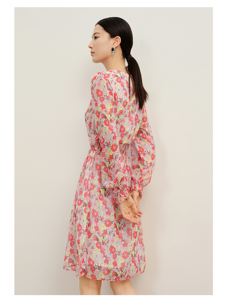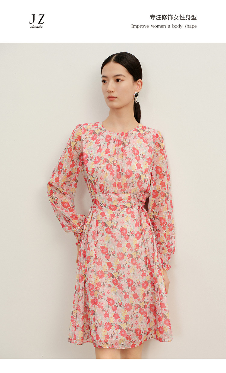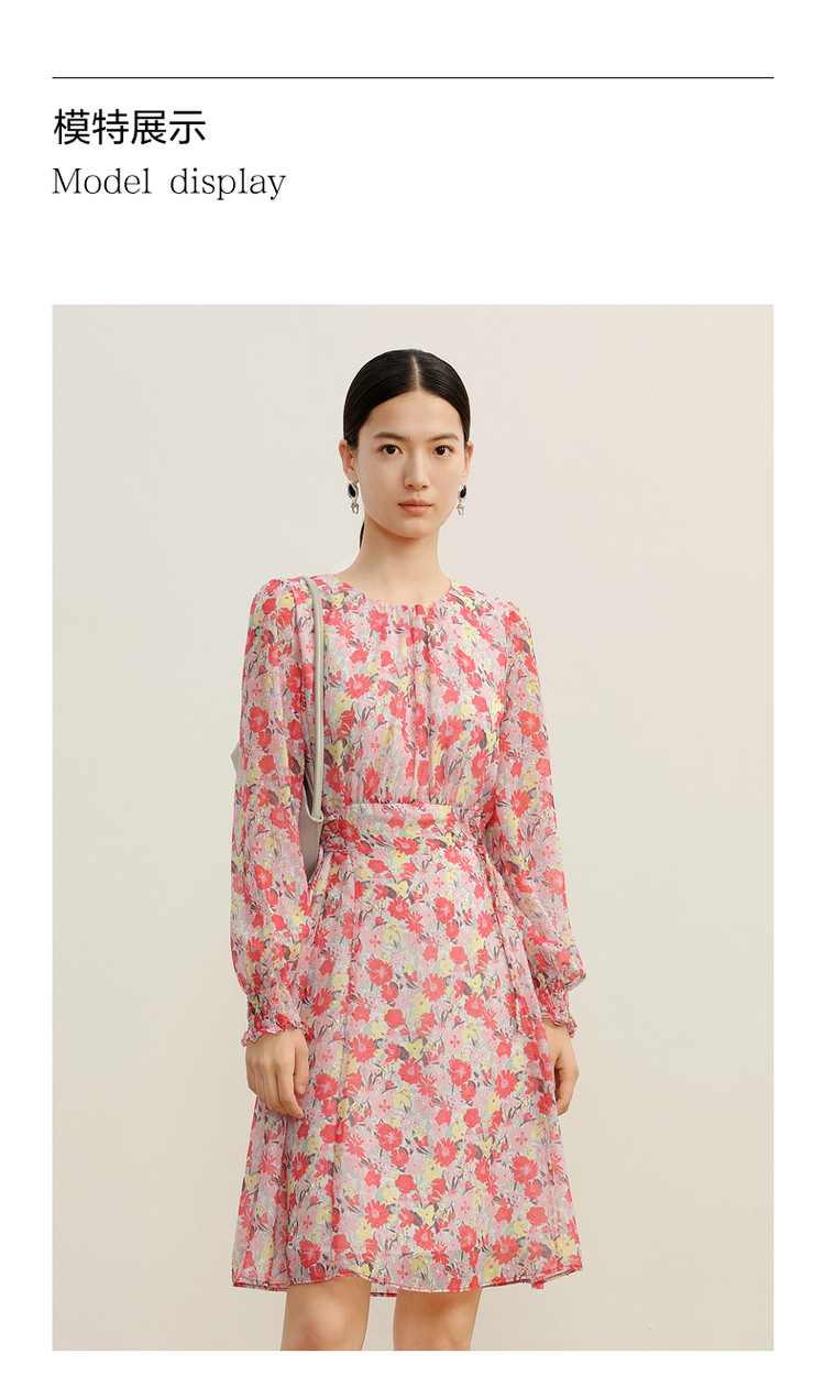 商品名称:玖姿旗下安娜蔻系列法式田园雪纺印花连衣裙女秋季 730828