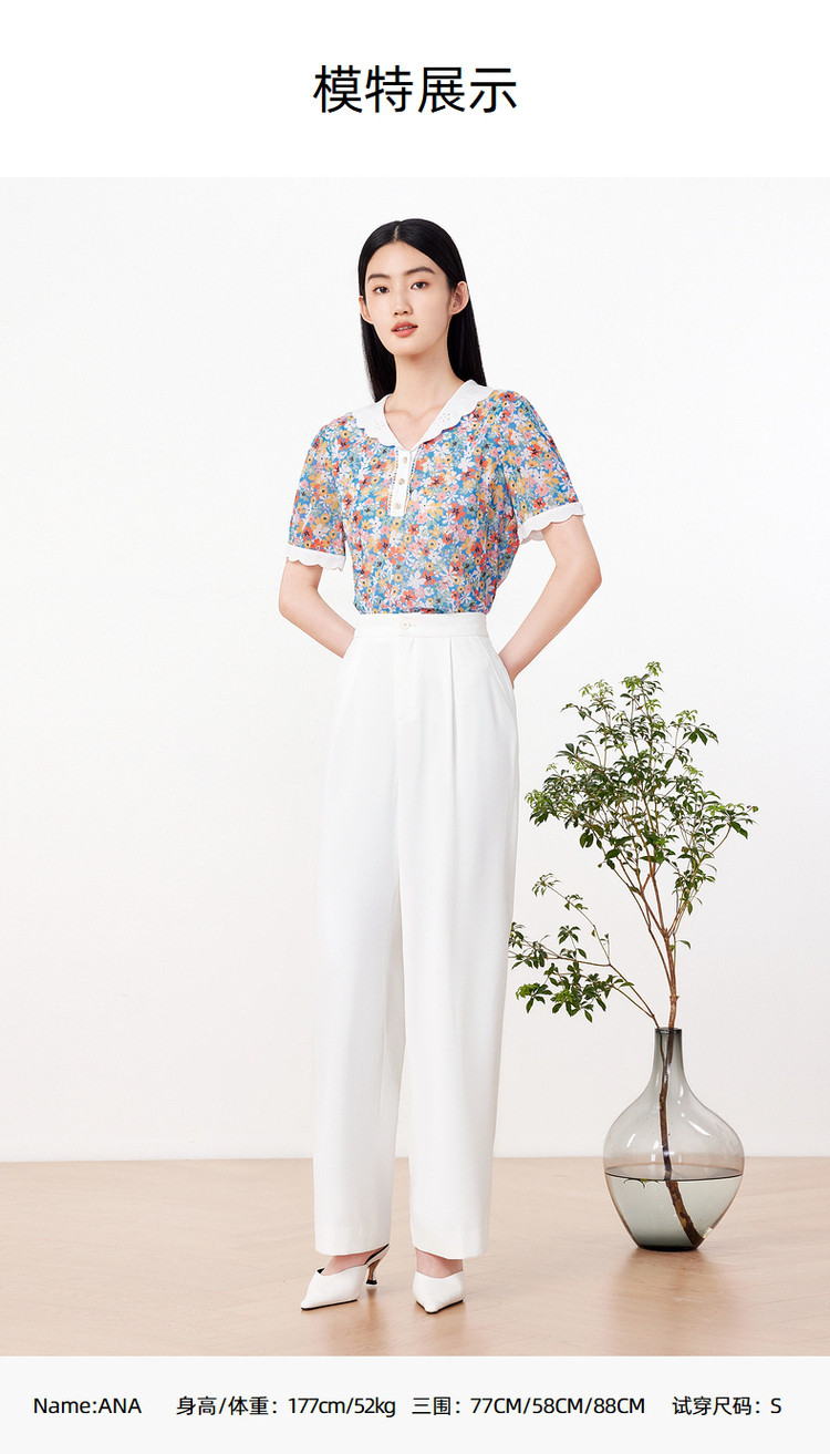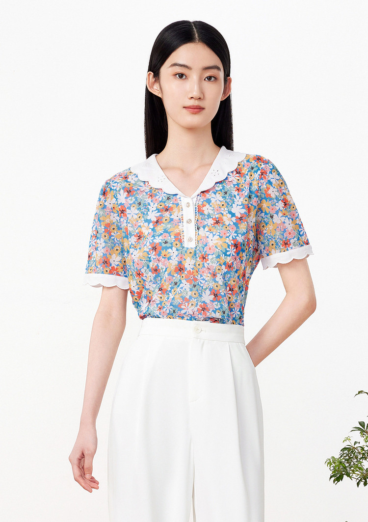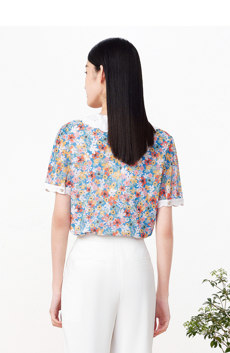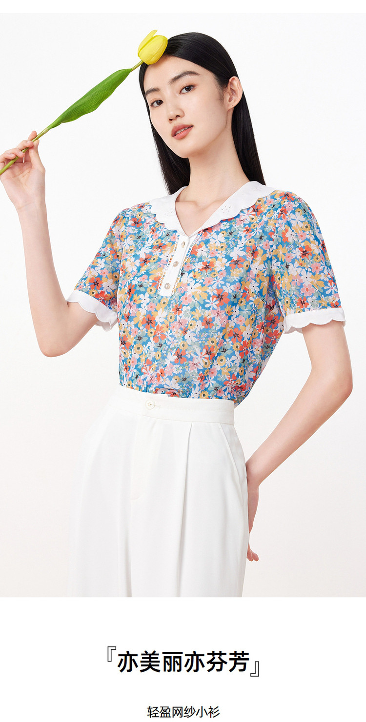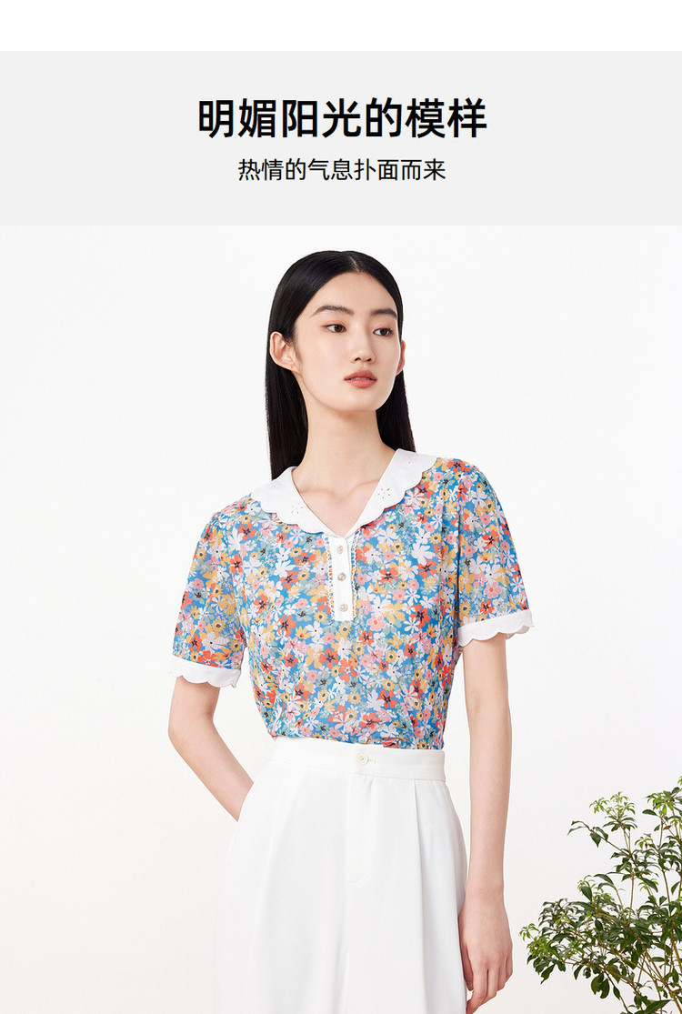 玖姿旗下安娜蔻系列时尚碎花短袖上衣女 846988