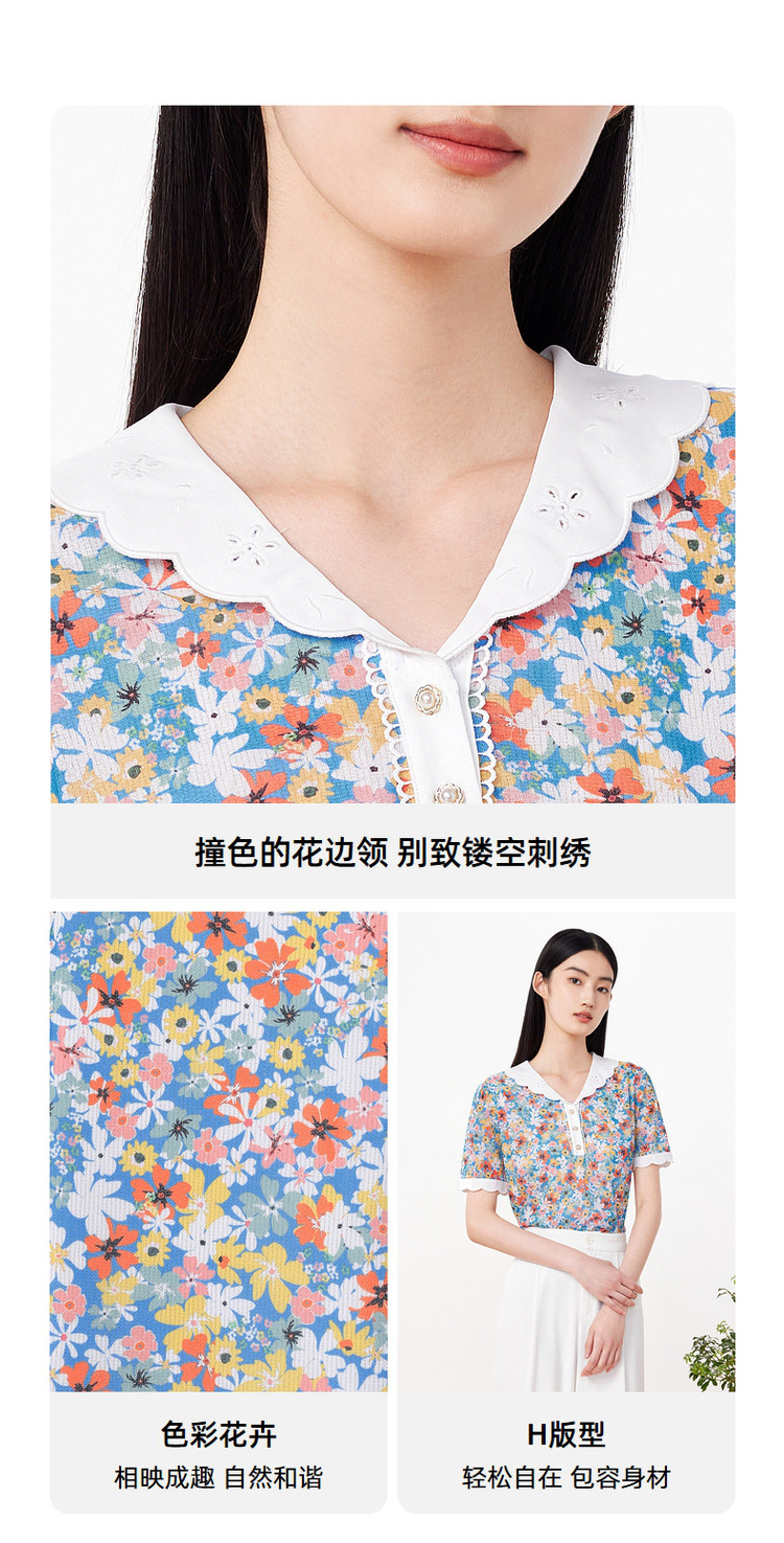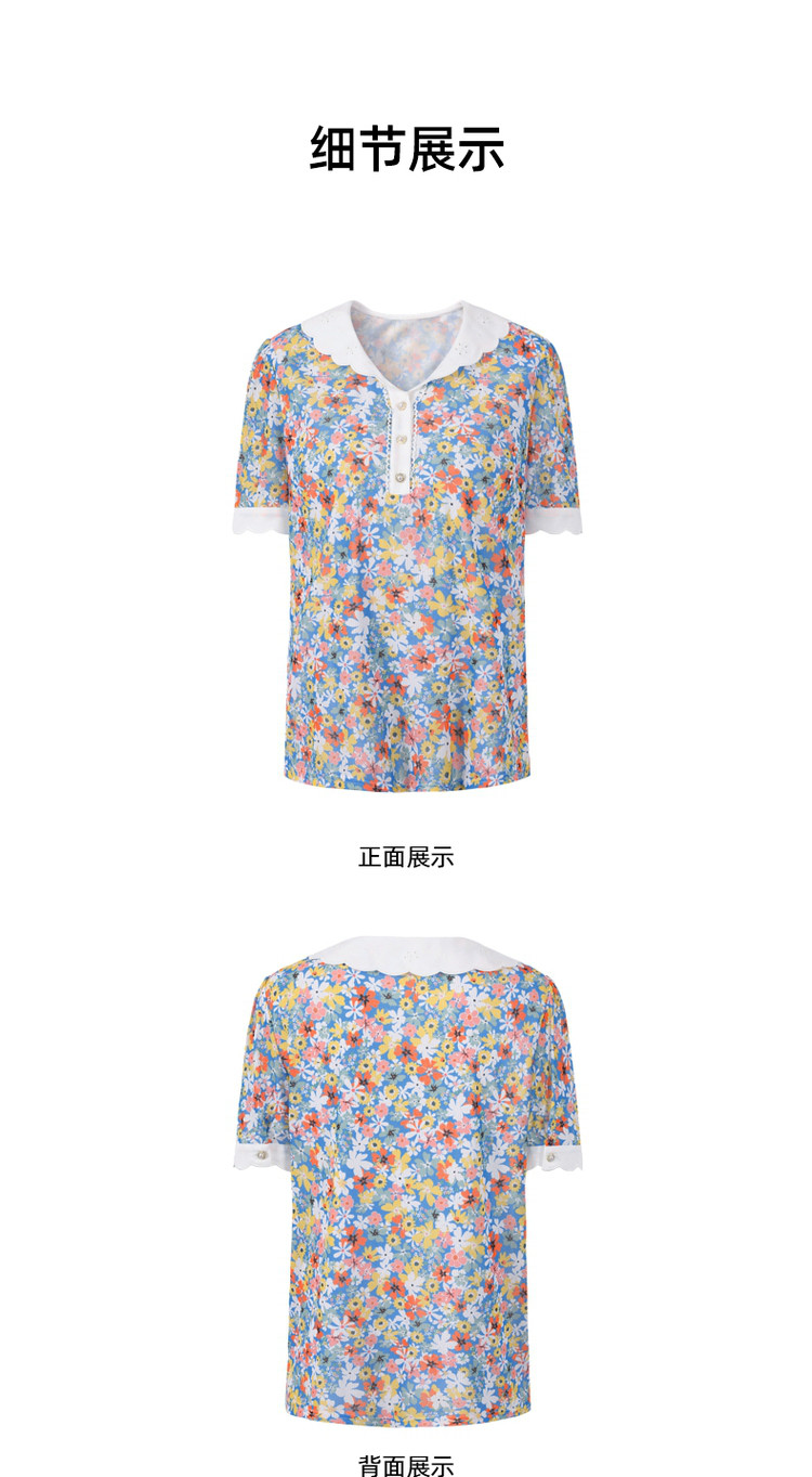 商品名称:玖姿旗下安娜蔻系列时尚碎花短袖上衣女 846988