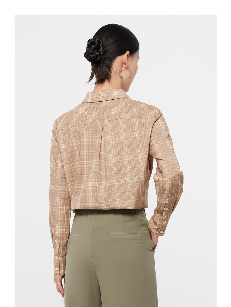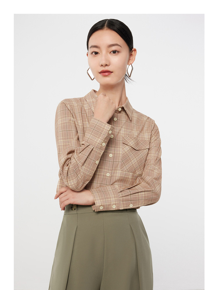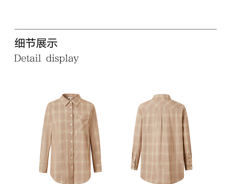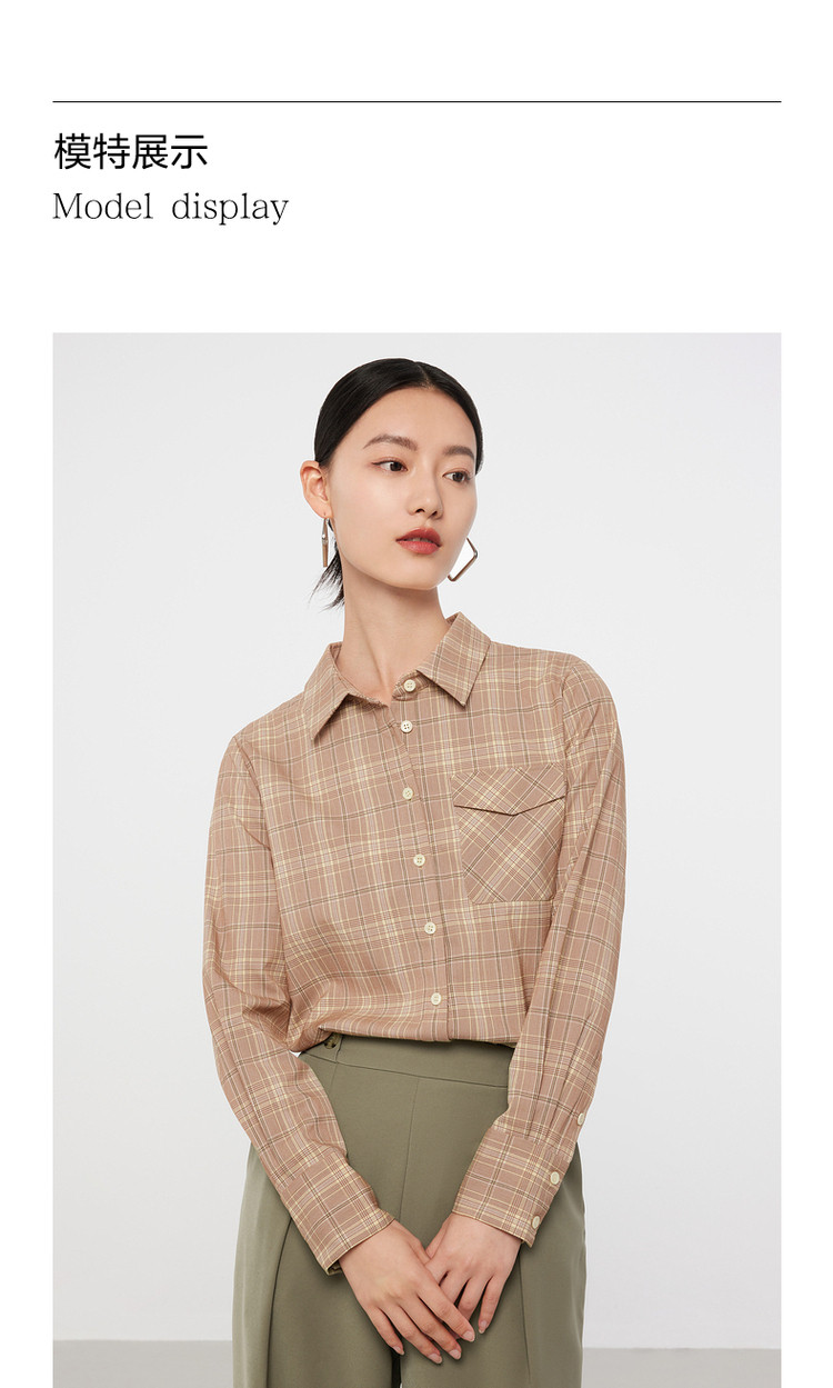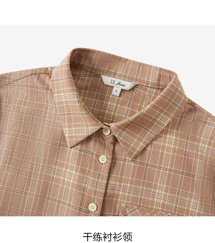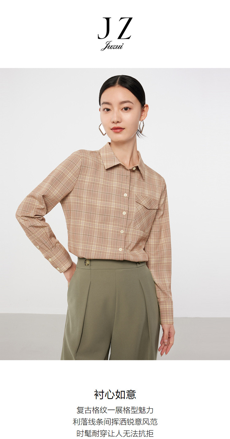 商品名称:JZ玖姿英伦风衬衫女装春季休闲格纹复古上衣咖啡色 634892