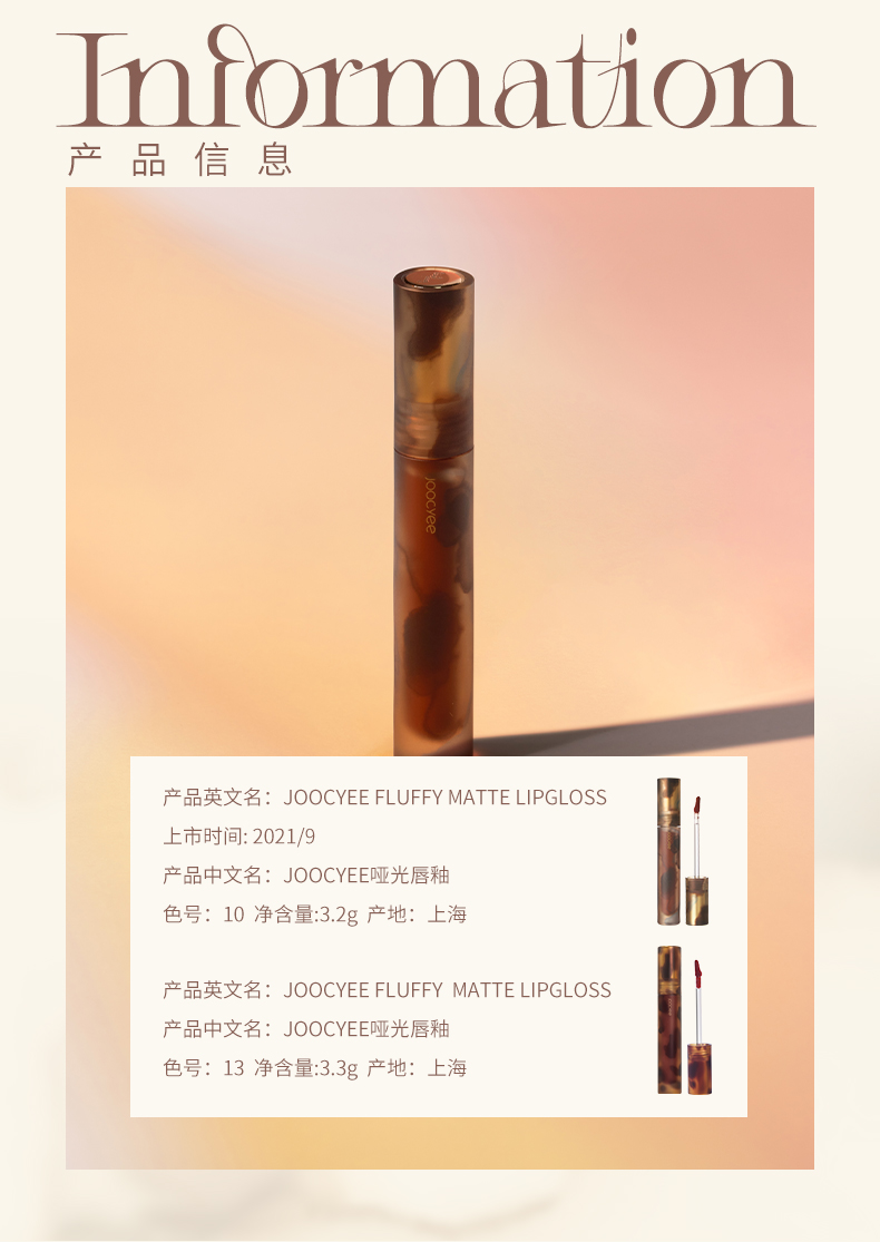商品名称:Joocyee酵色 琥珀哑光雾面唇釉唇泥口红 3.3g