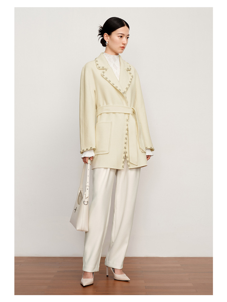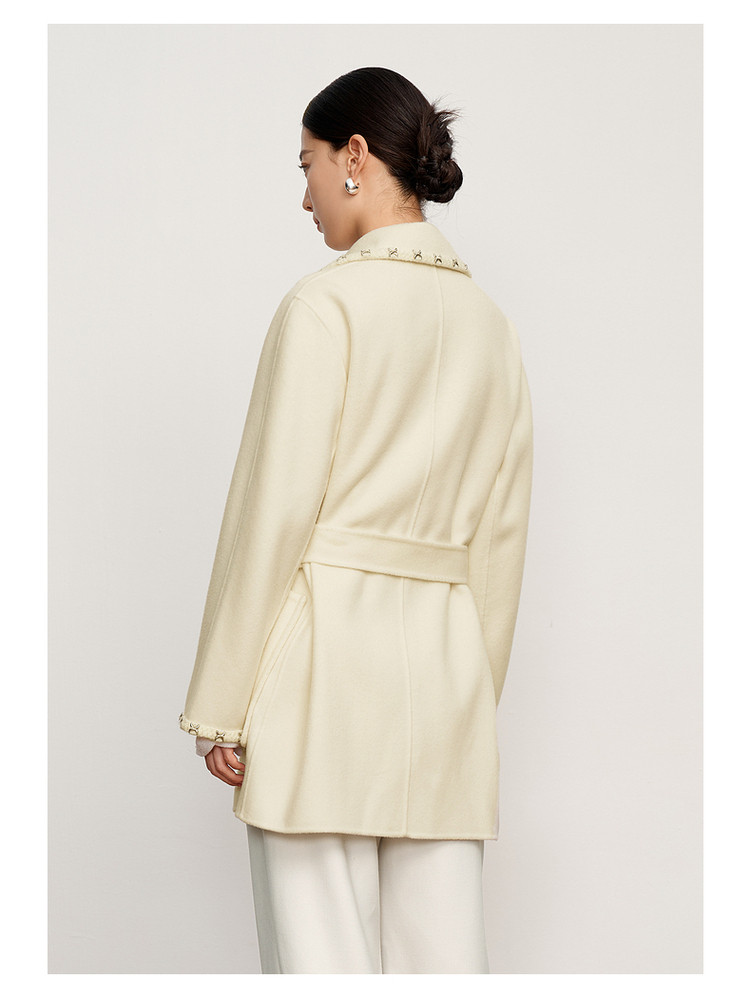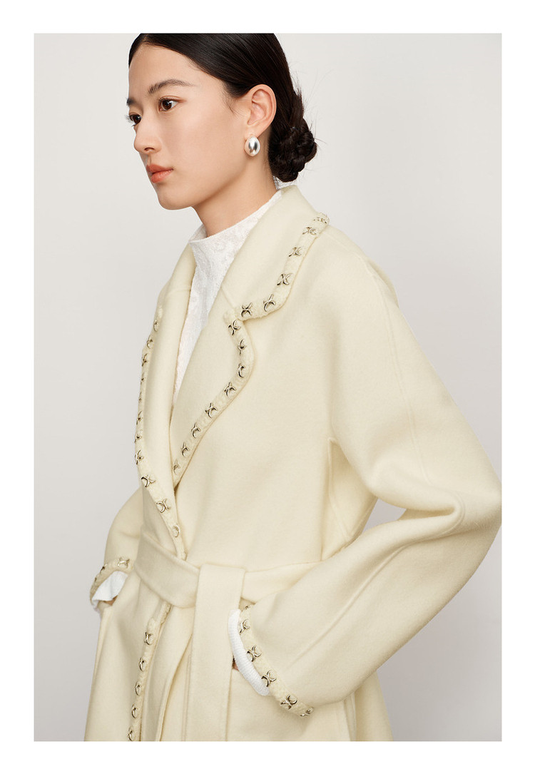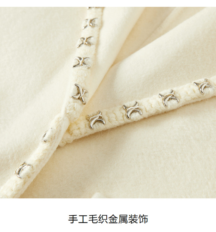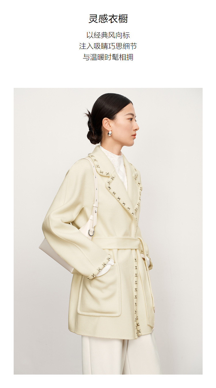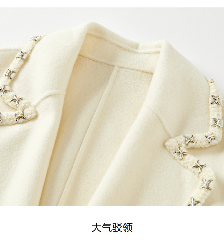 玖姿旗下安娜蔻系列优雅通勤双面呢中长羊毛大衣女冬季 694540