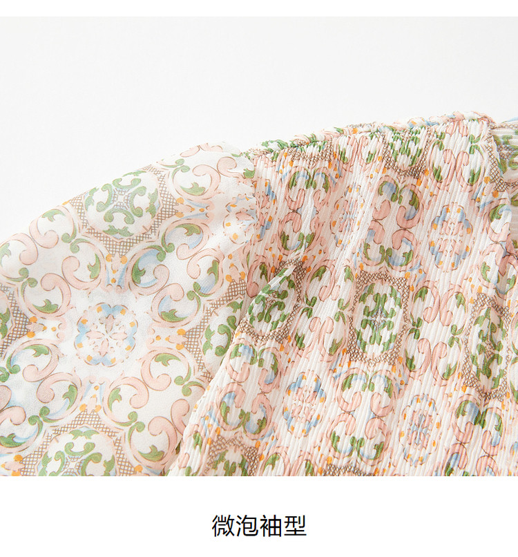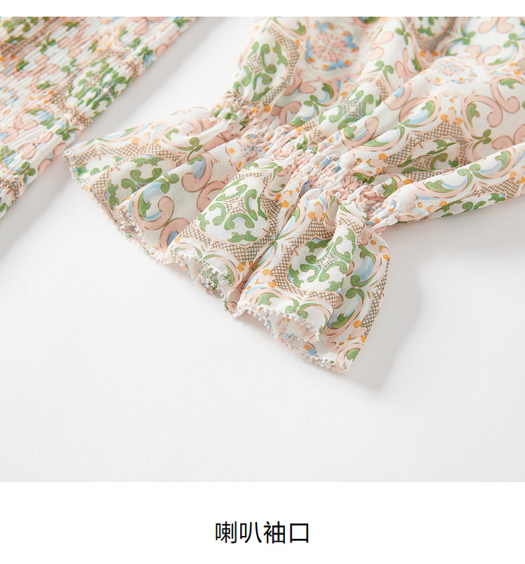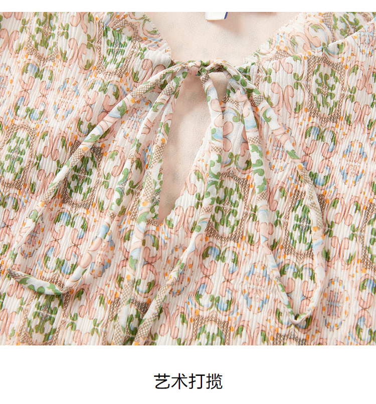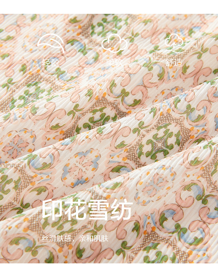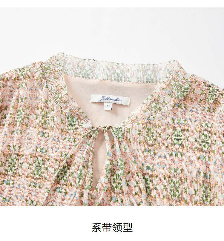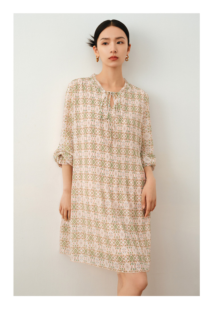 商品名称:玖姿旗下安娜蔻系列休闲压褶直筒雪纺印花连衣裙女秋季 051468