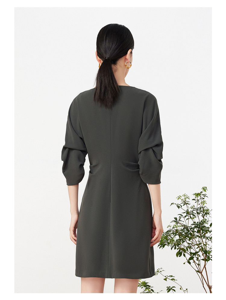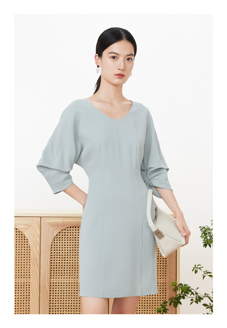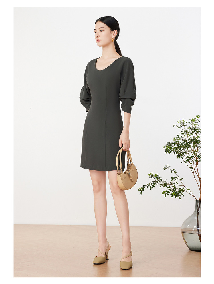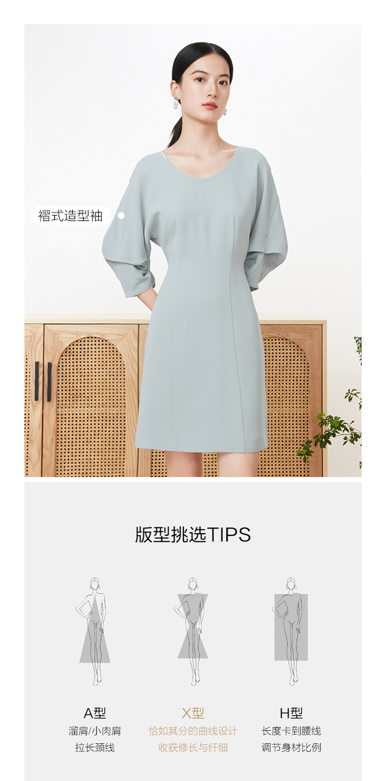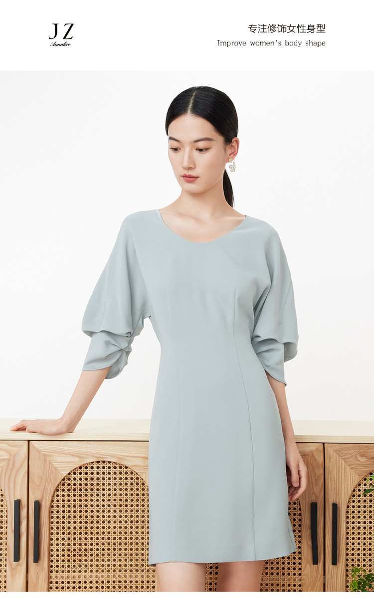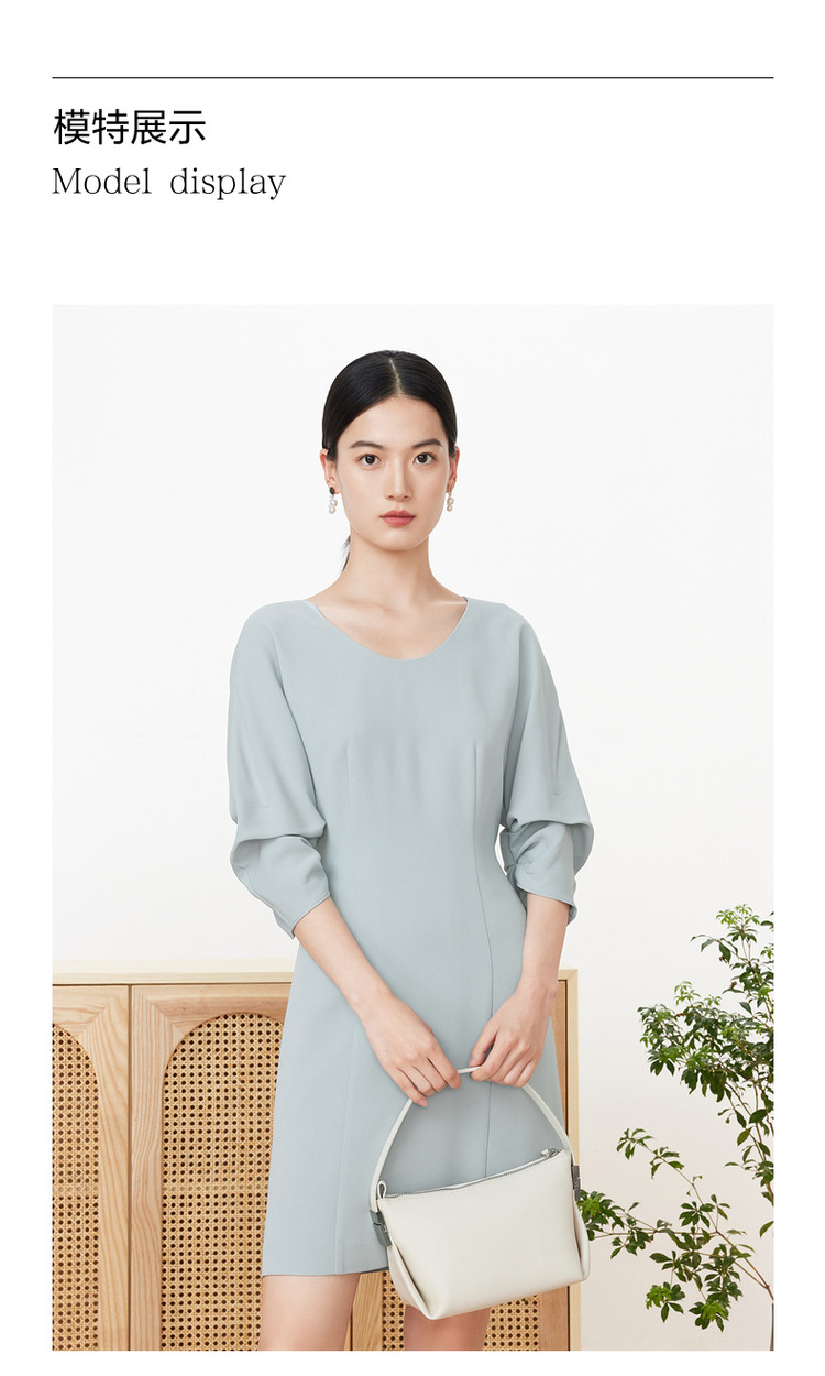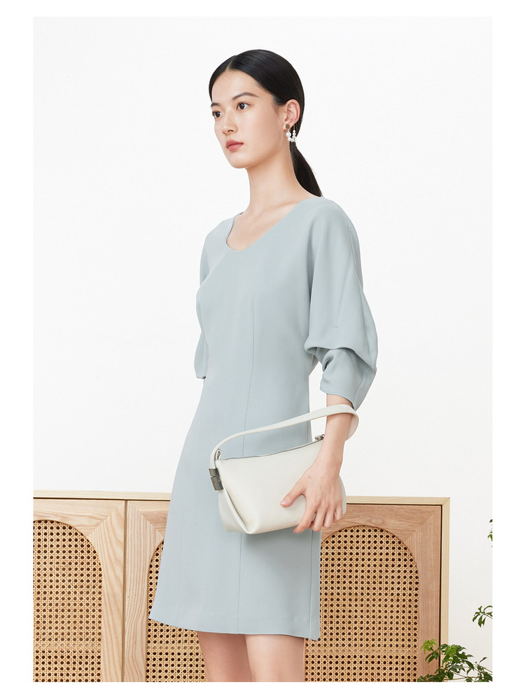 商品名称:旗下安娜蔻系列U型领设计感小个子连衣裙女装夏季纯色时尚感裙子 112204