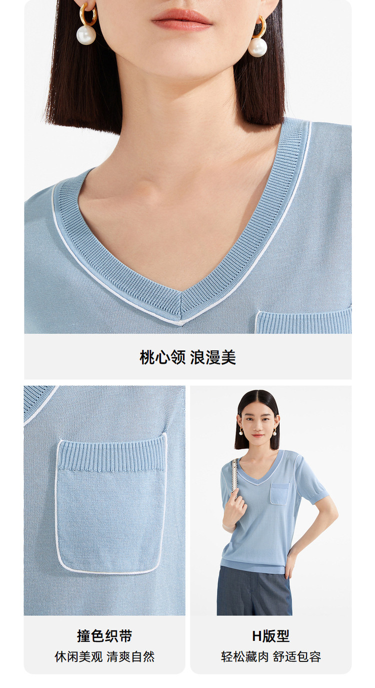 商品名称:JZ玖姿桃心领小衫女夏季针织衫 415628