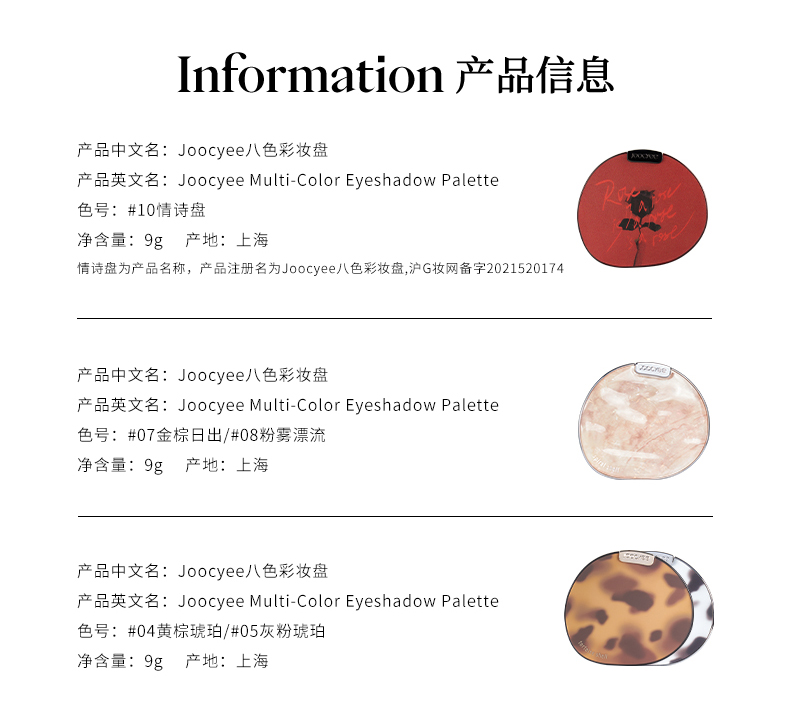 商品名称:Joocyee酵色 琥珀盘玫瑰情书眼影盘贝壳哑光情诗盘女八色