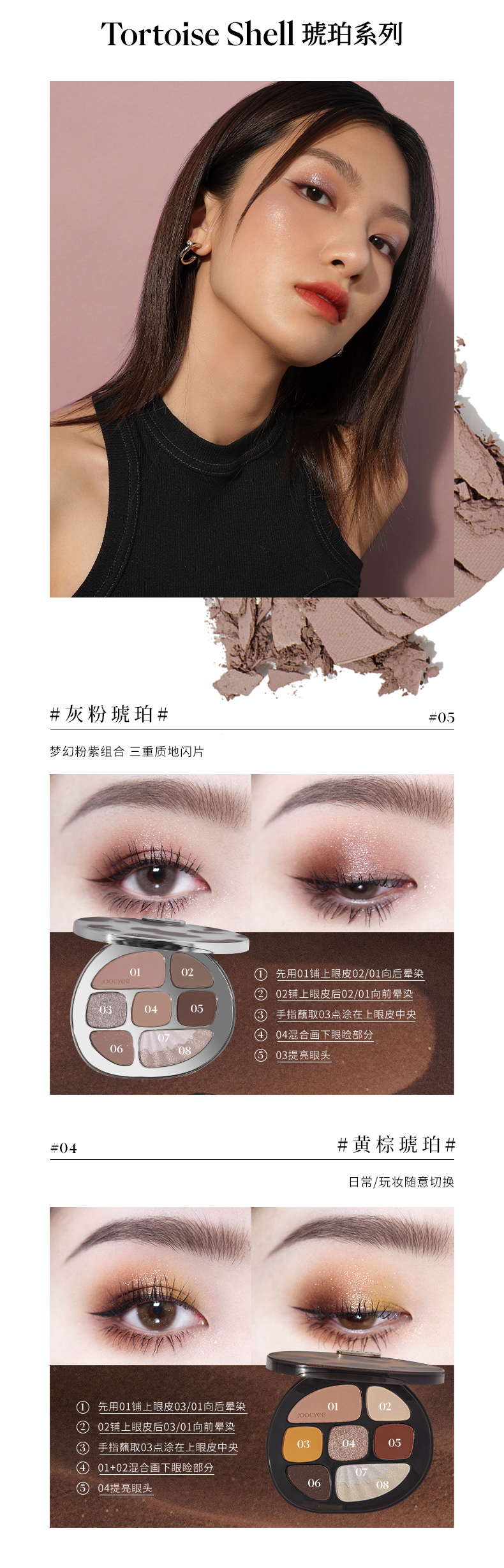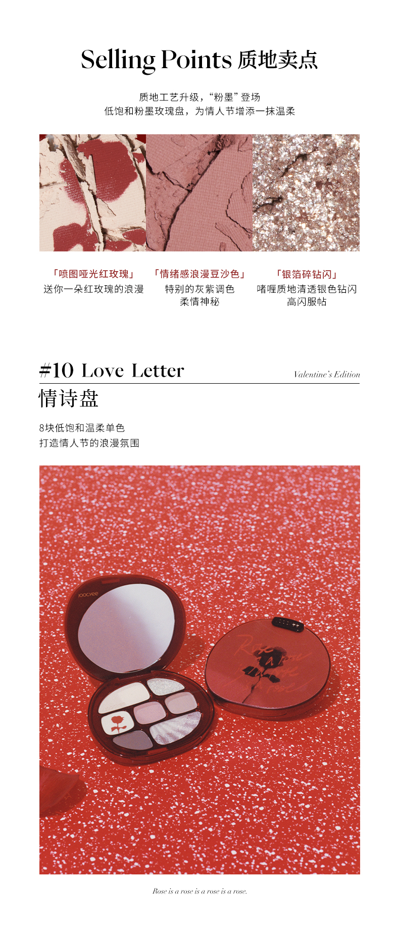 Joocyee酵色 琥珀盘玫瑰情书眼影盘贝壳哑光情诗盘女八色