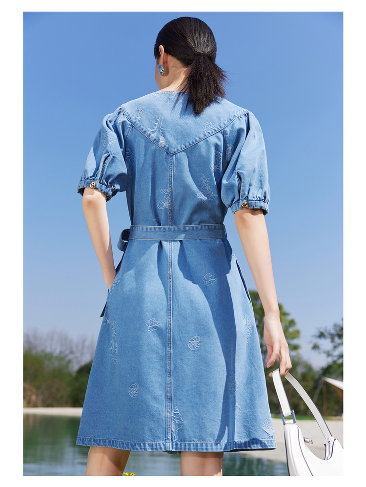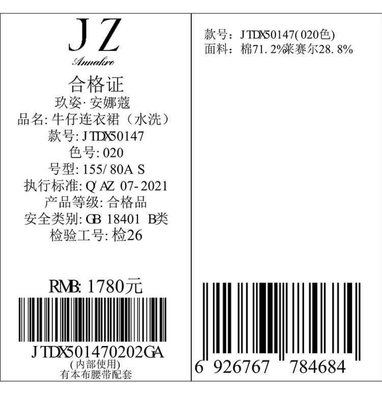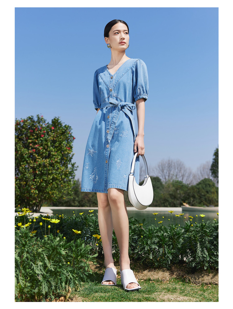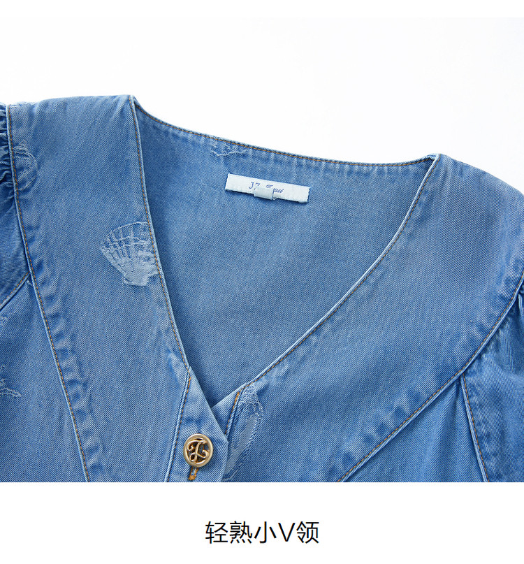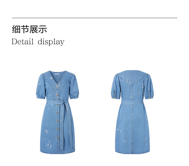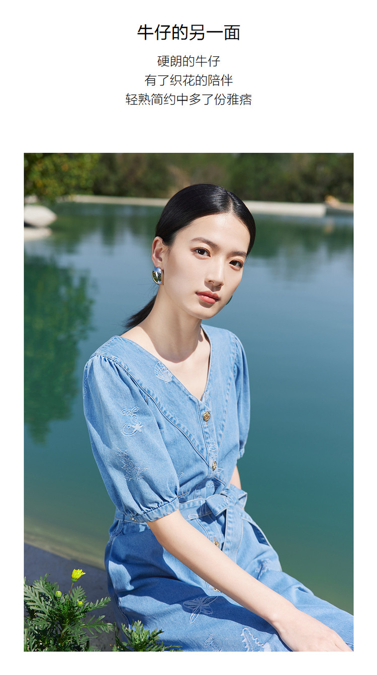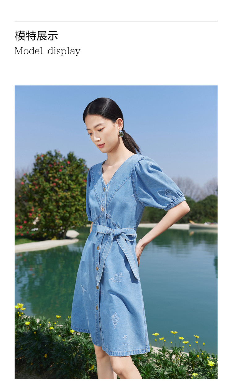 商品名称:玖姿旗下安娜蔻系列中长连衣裙女装夏季V领含莱赛尔提花裙子 144972