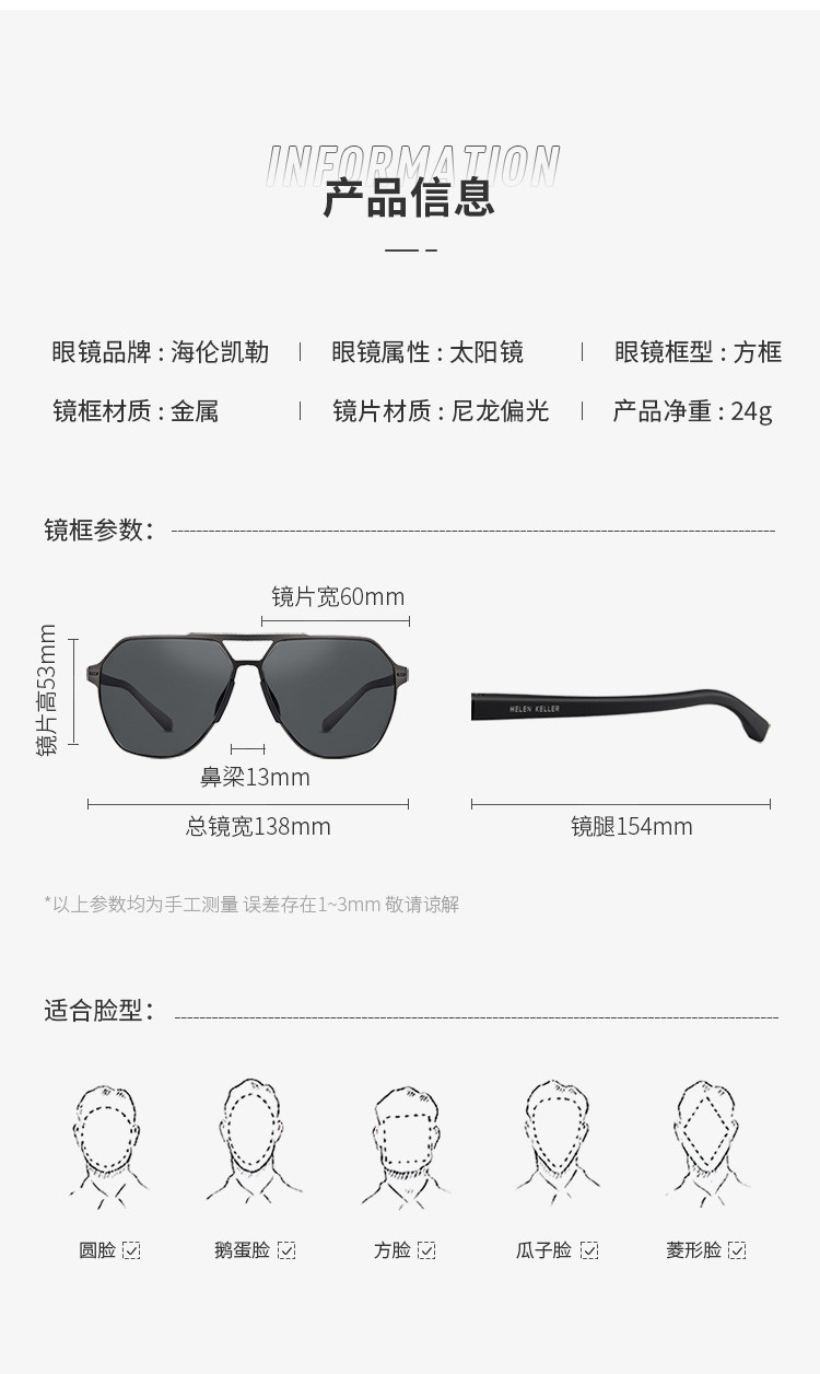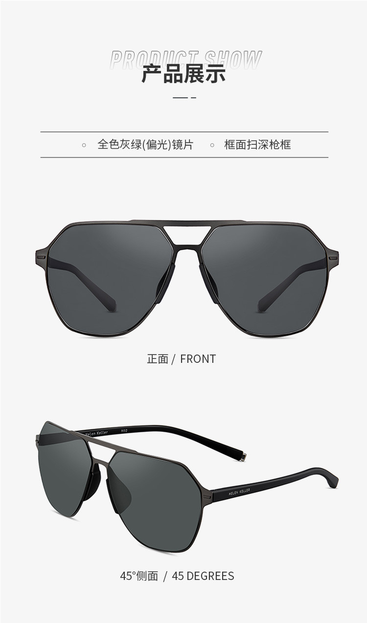 商品名称:海伦凯勒太阳镜棱角分明利落有型经典双梁墨镜偏光太阳镜 818907