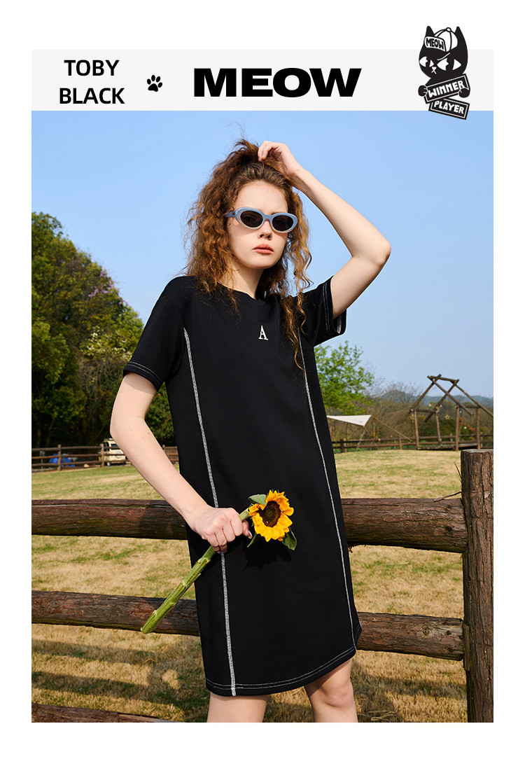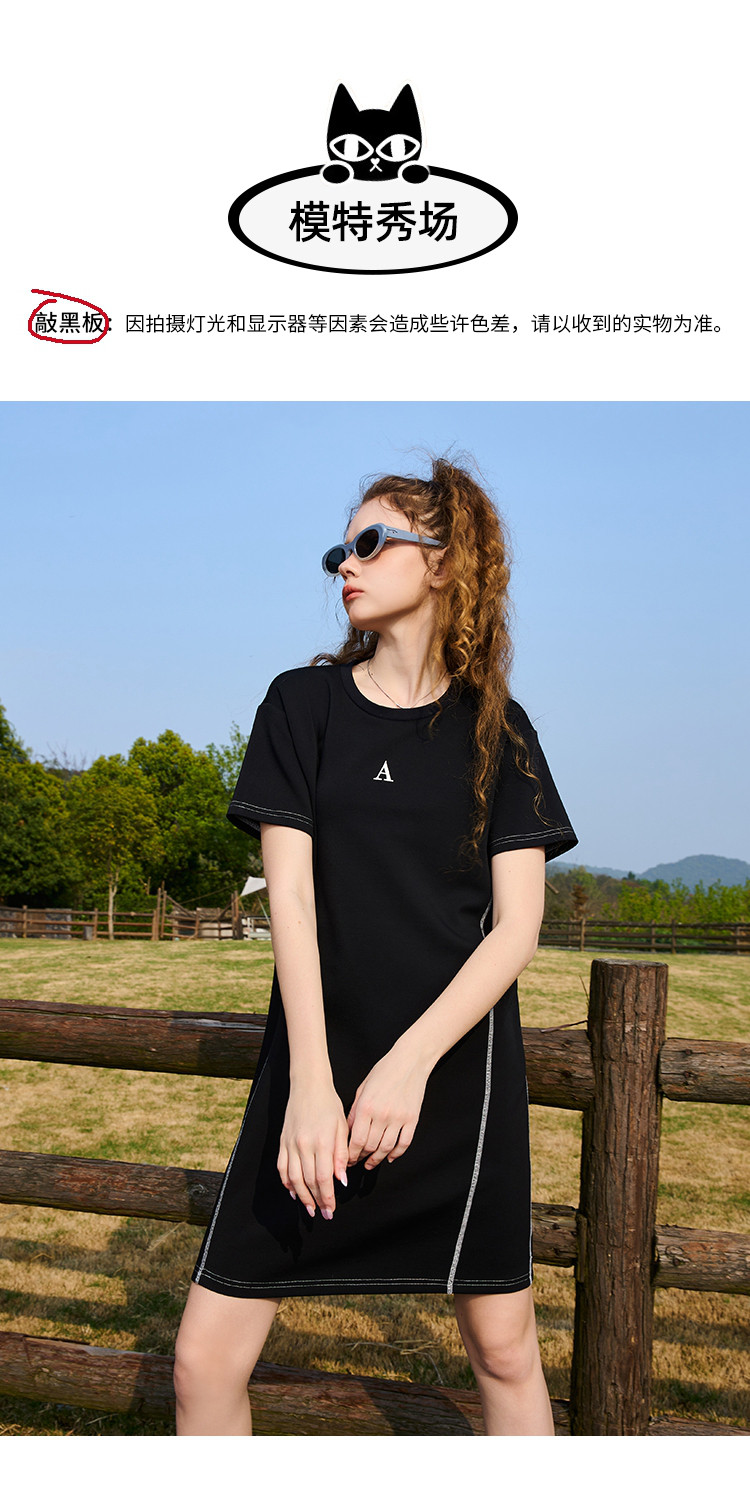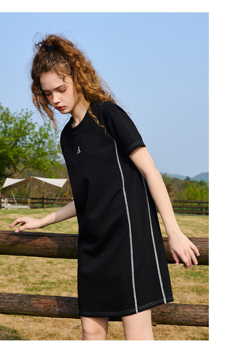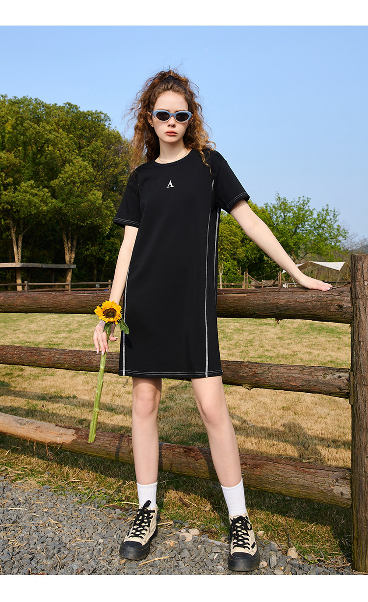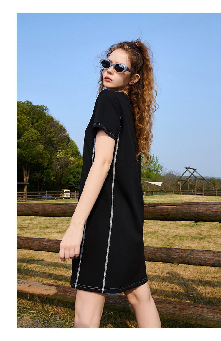 商品名称:【100%棉】夏季撞色明线简约显瘦日常百搭连衣裙 813021