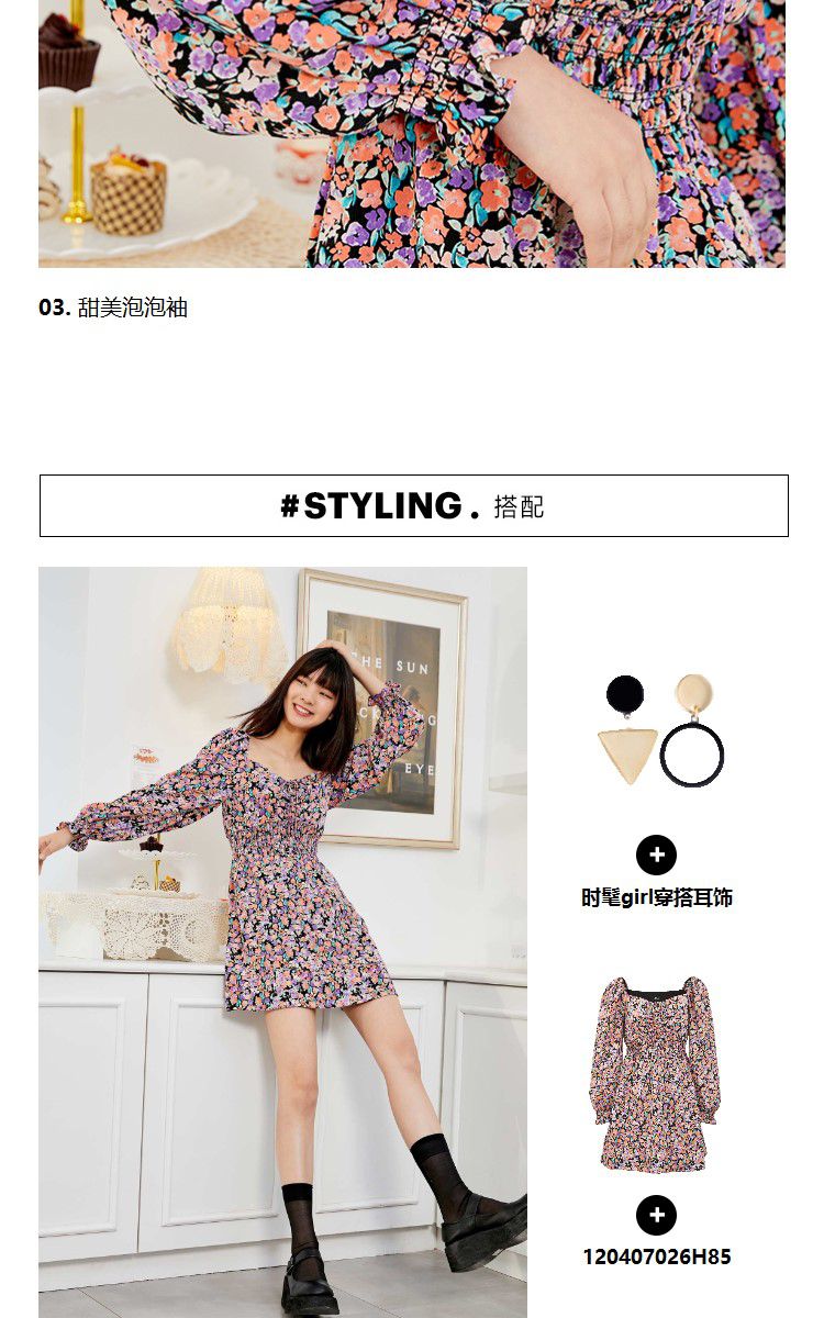 商品名称:【福利秒杀款】夏季碎花图案袖腰部收紧连衣裙女 852954