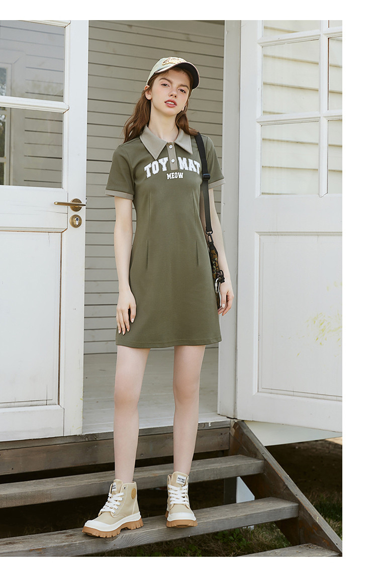 商品名称:【学院风】夏季美式复古Polo领印花字母连衣裙 255197