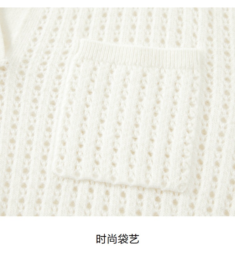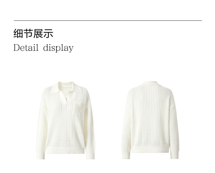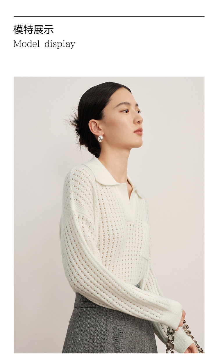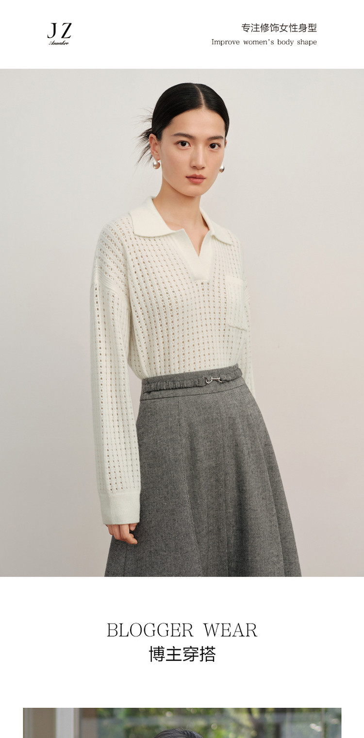商品名称:玖姿旗下安娜蔻系列翻领镂空羊毛针织衫女冬季 300492