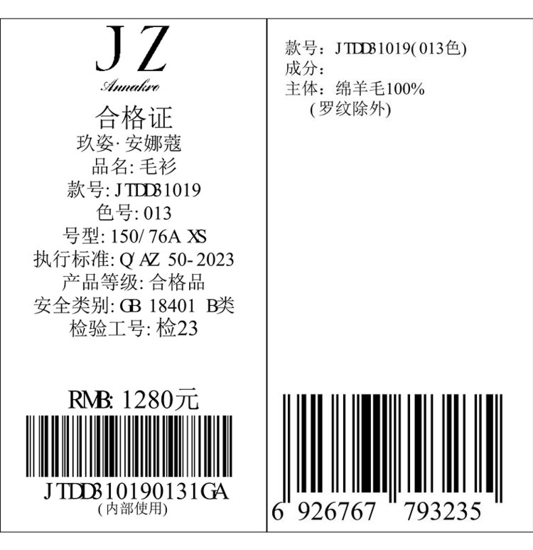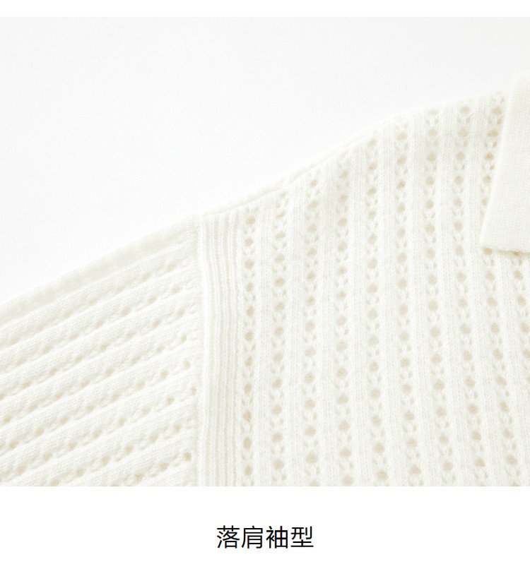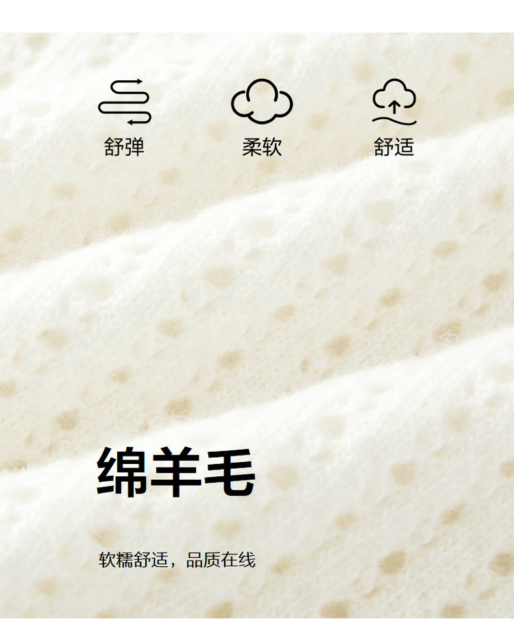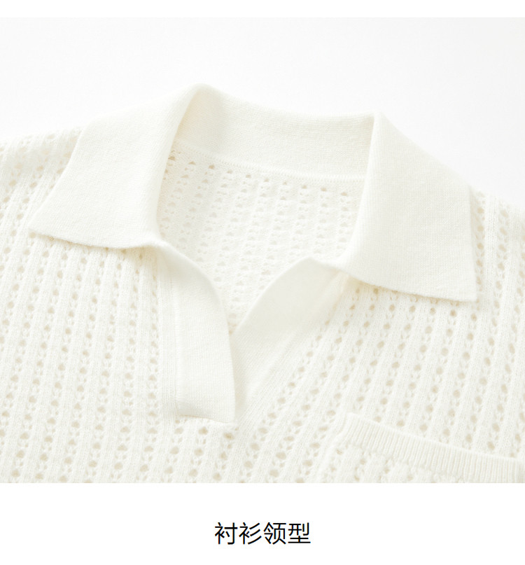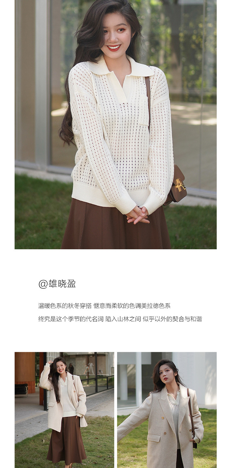 商品名称:玖姿旗下安娜蔻系列翻领镂空羊毛针织衫女冬季 300492