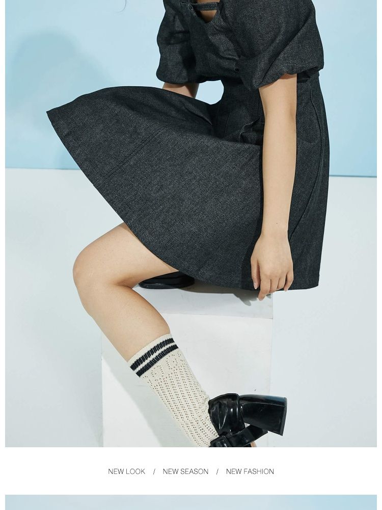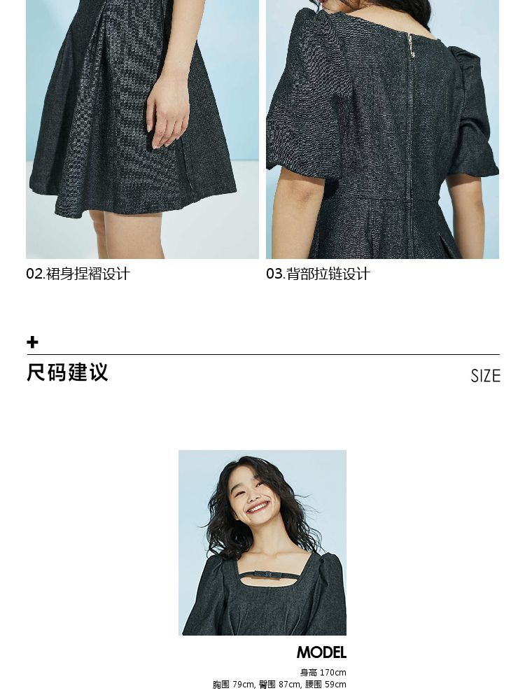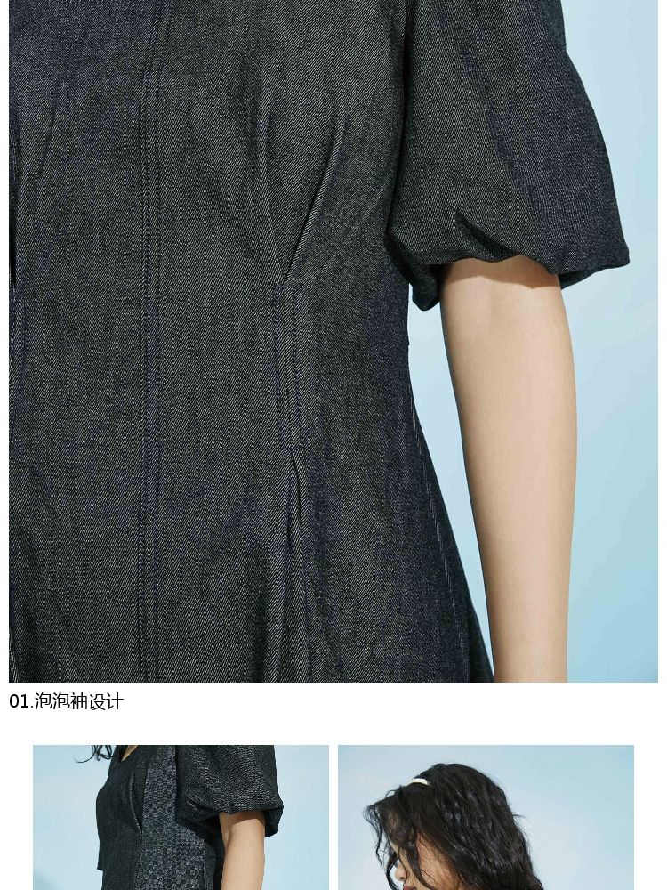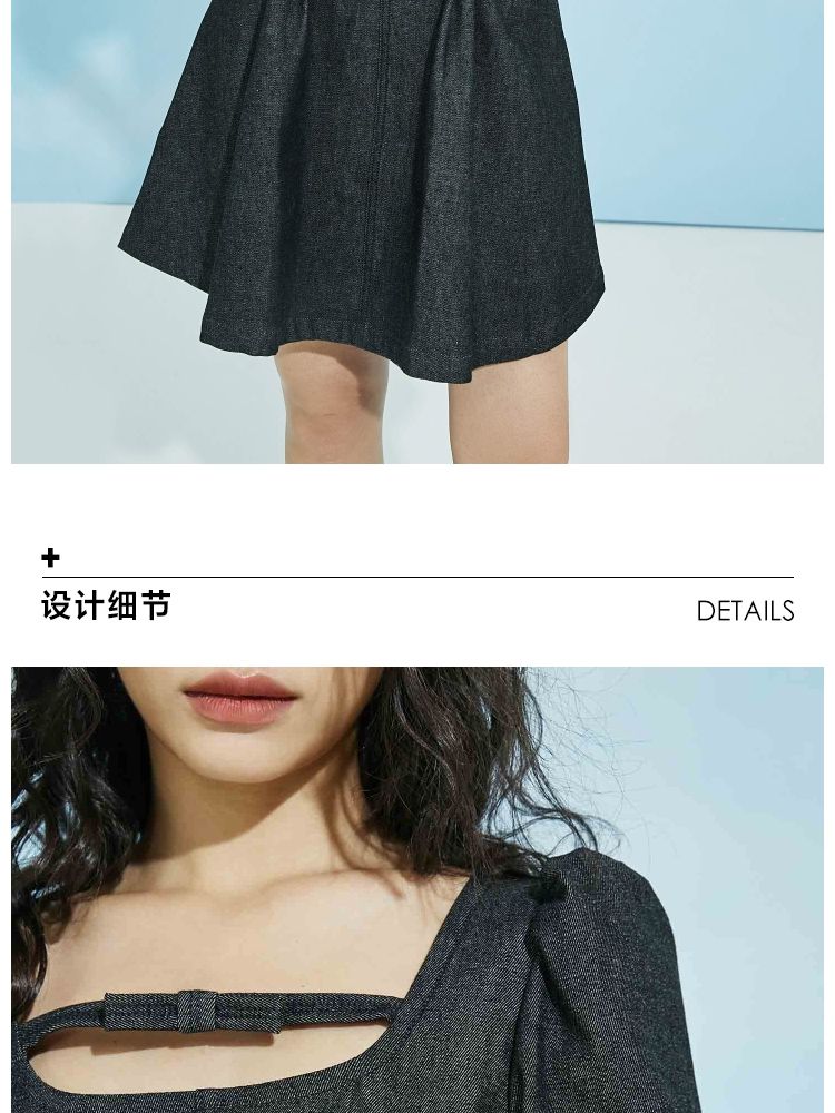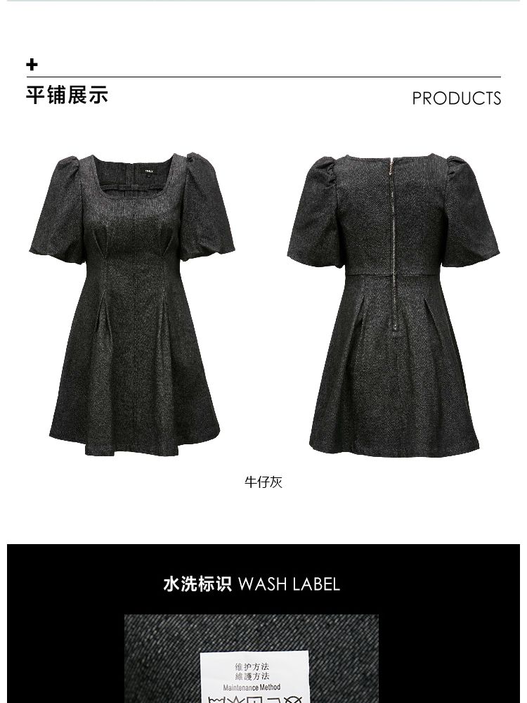 商品名称:【福利款】夏季镂空捏褶泡泡袖牛仔法式连衣裙女 577626