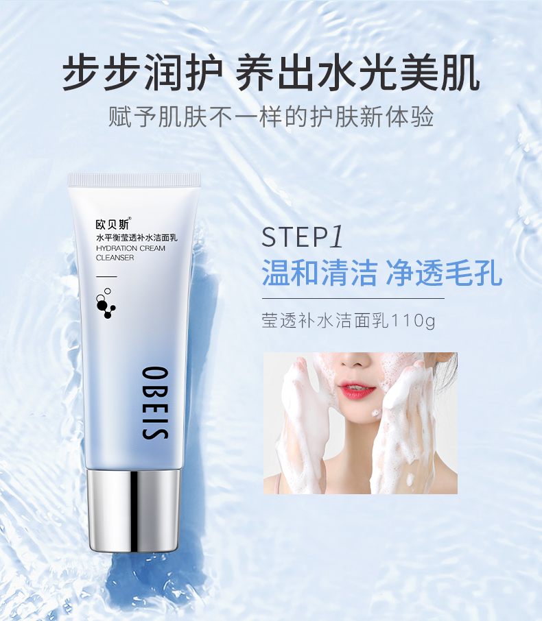 欧贝斯 水平衡密集补水三件套(夏令装)洁面110g +水130ml+乳液100ml