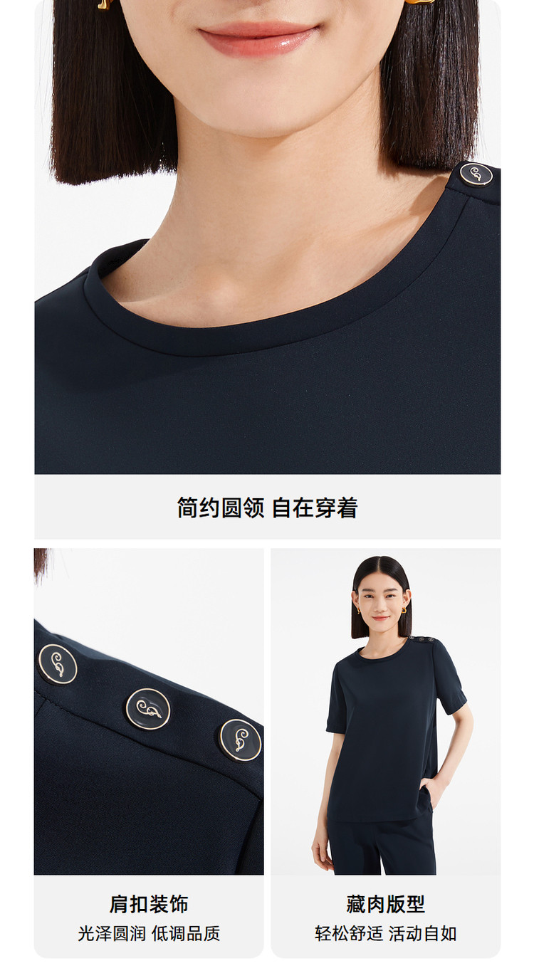 商品名称:JZ玖姿商场同款小衫女装夏季简约圆领T恤JWCX80304 766284