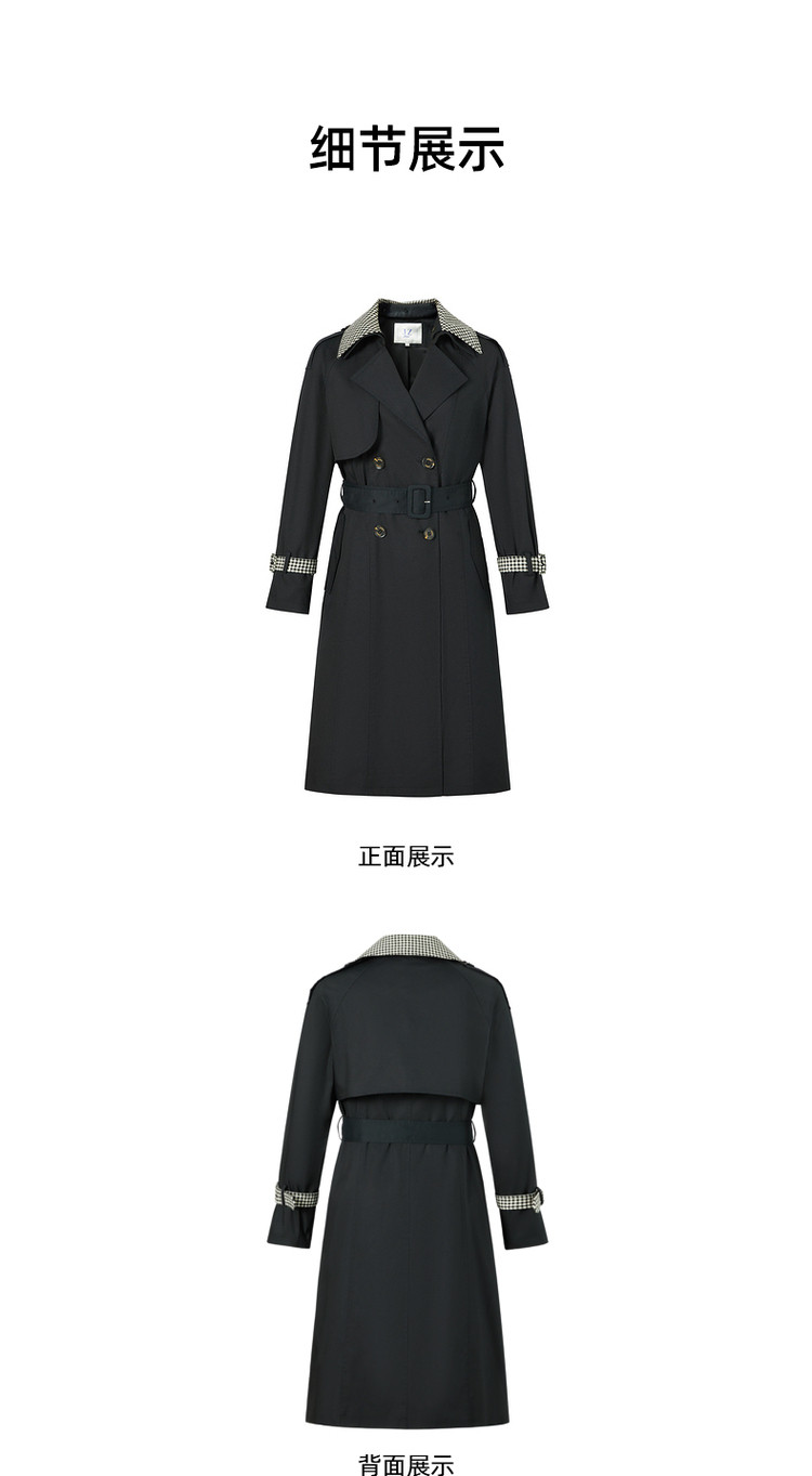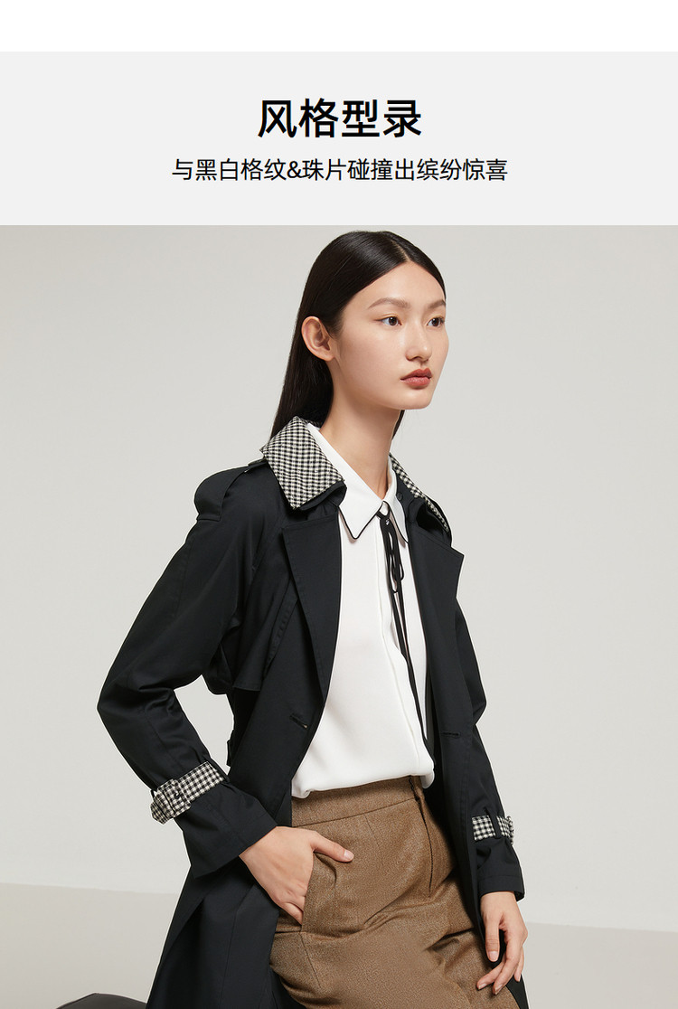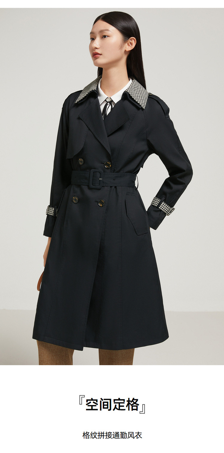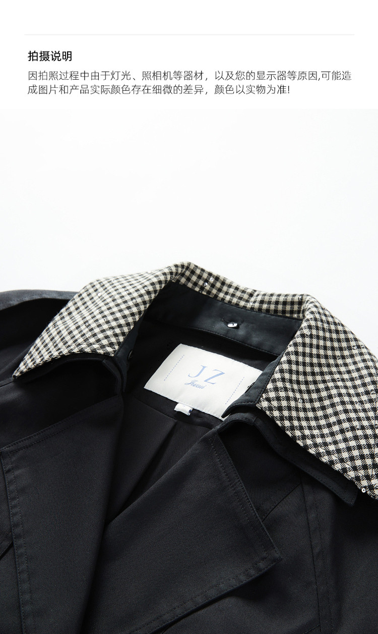 商品名称:JZ玖姿时尚格纹拼接通勤风衣女装秋季休闲OL风户外感外套 284748