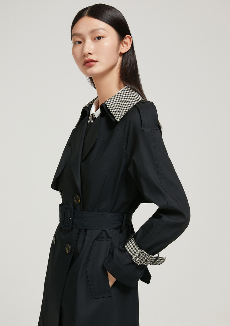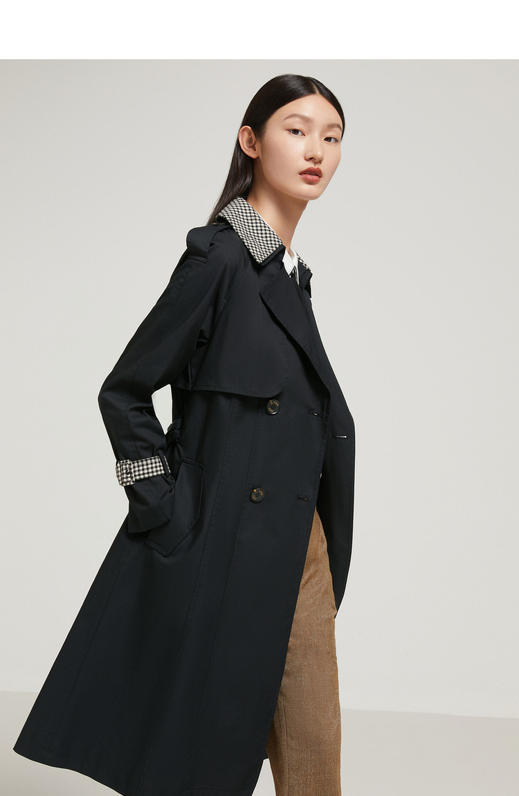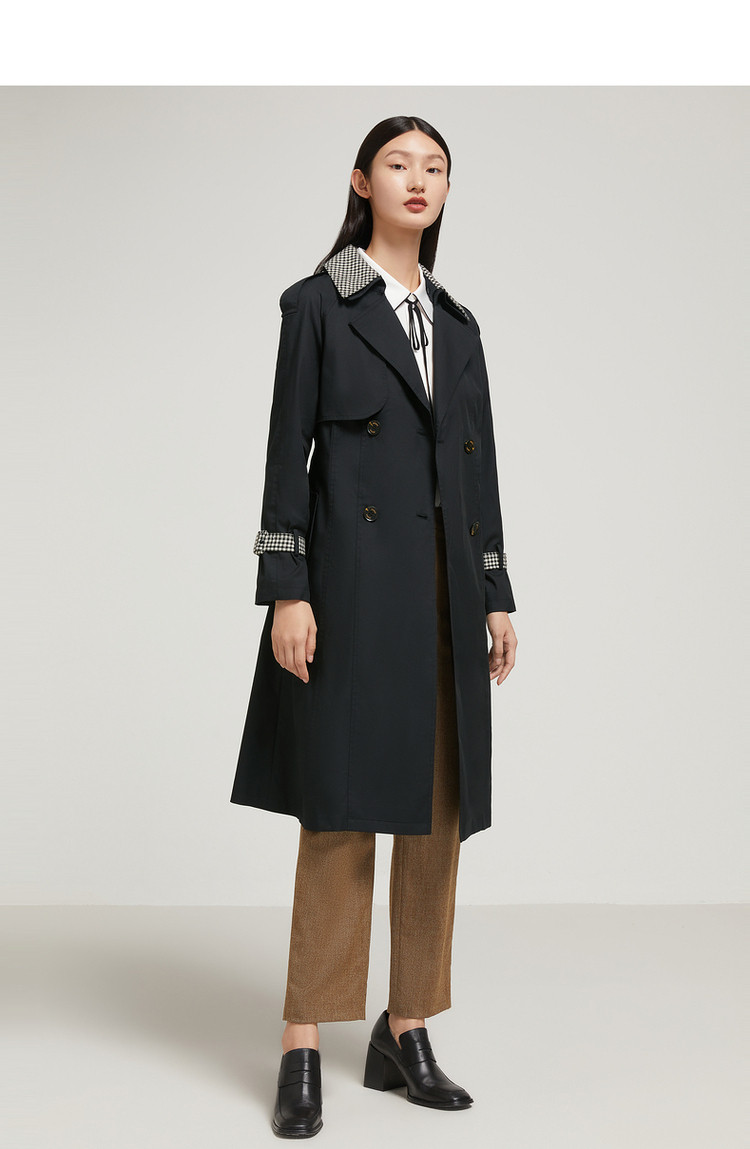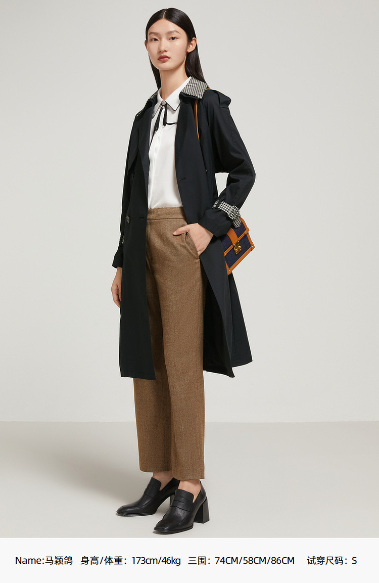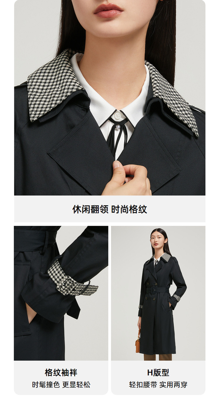 商品名称:JZ玖姿时尚格纹拼接通勤风衣女装秋季休闲OL风户外感外套 284748