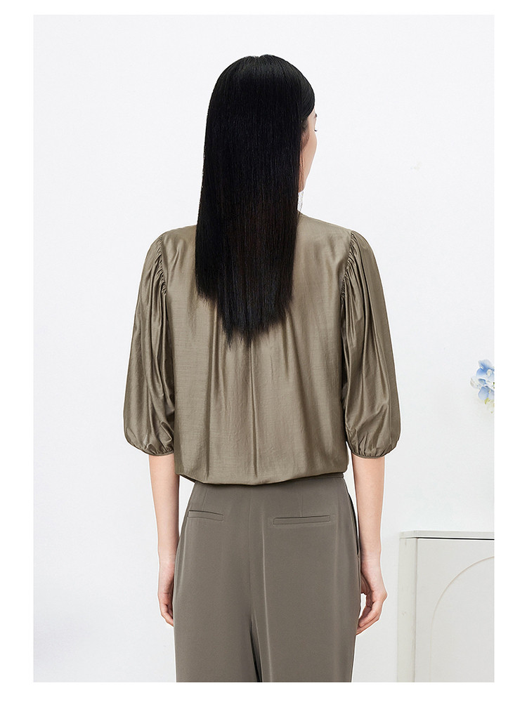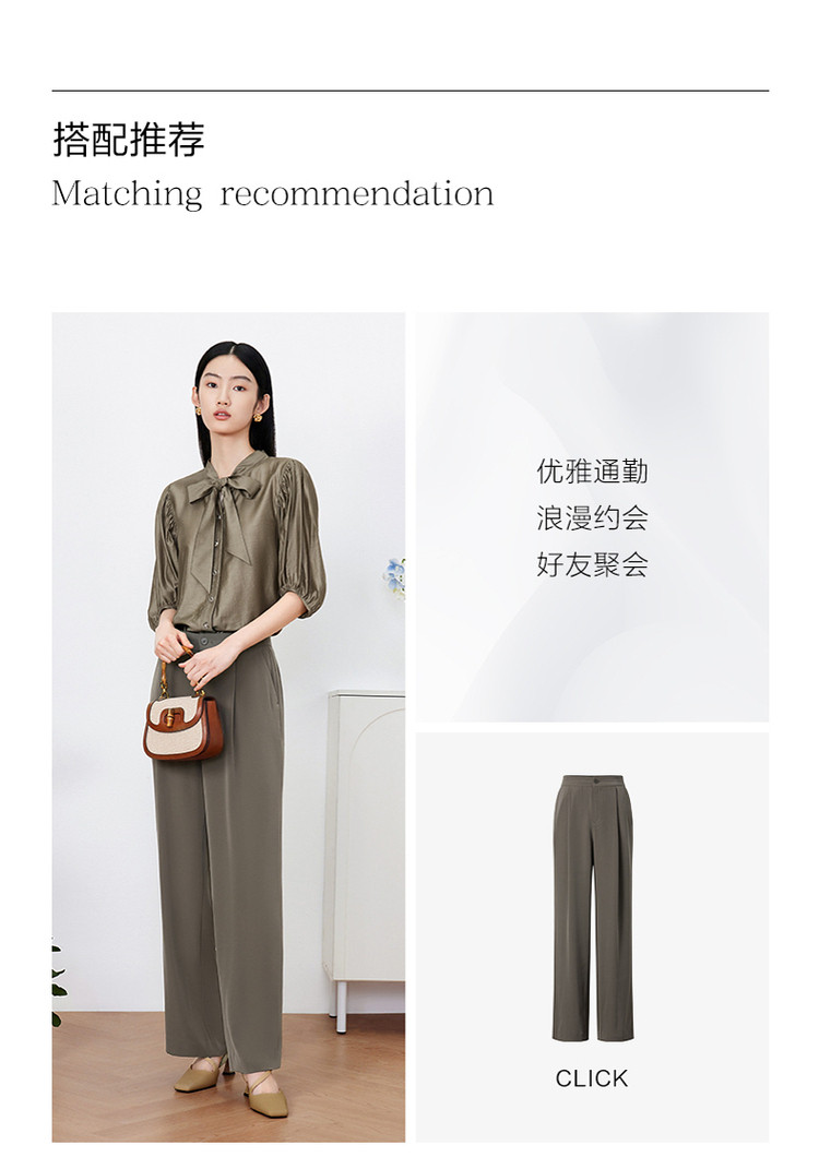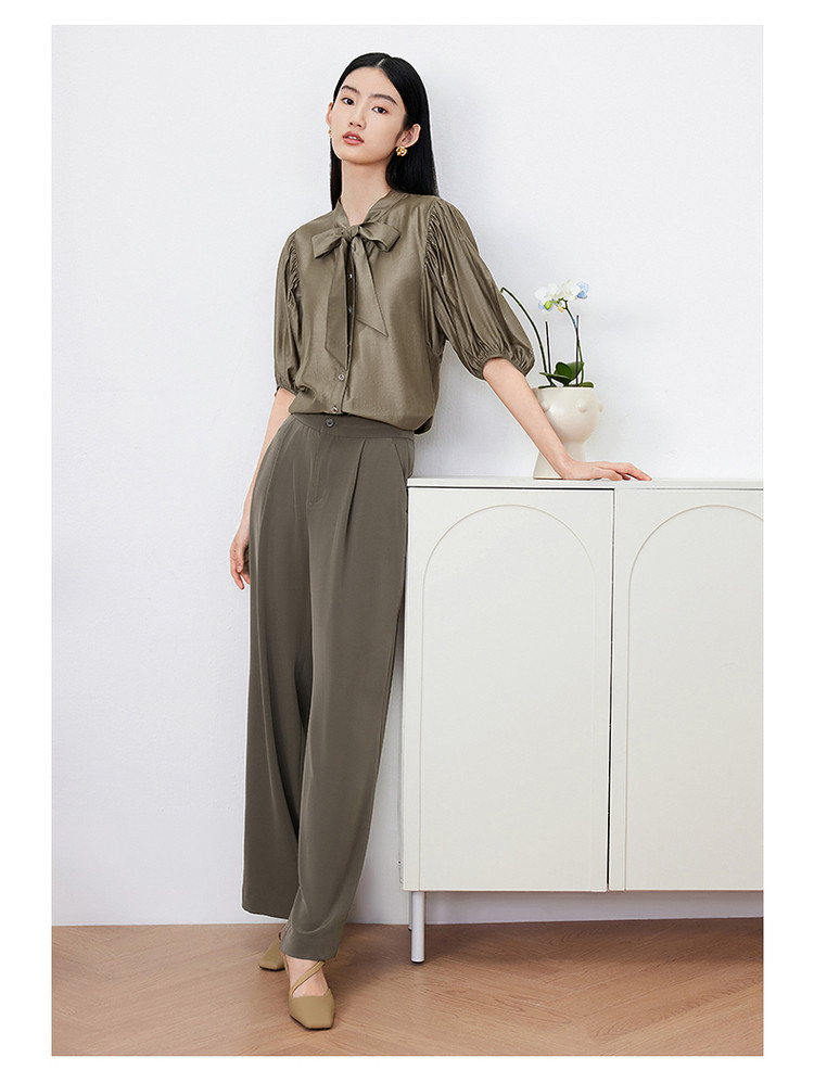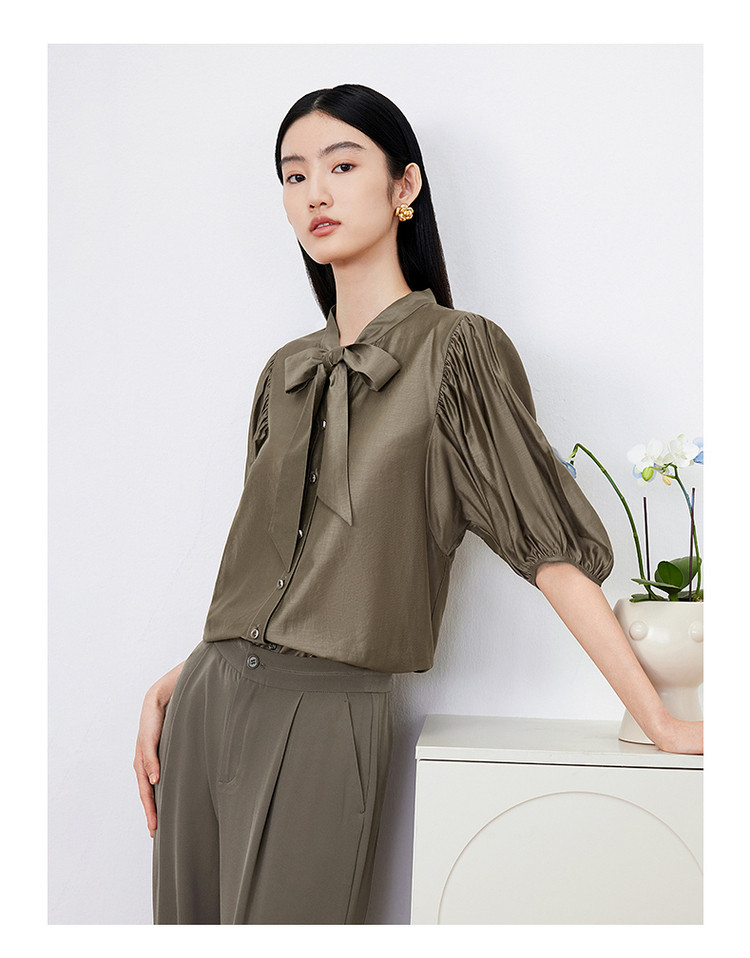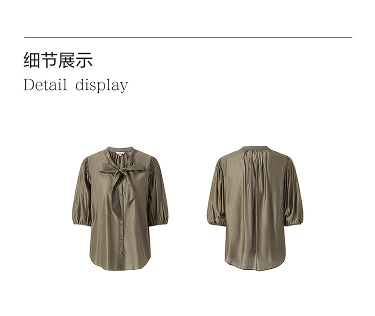 商品名称:玖姿旗下安娜蔻系列轻盈感飘带衬衫女装夏季宽松纯色单上衣 672460
