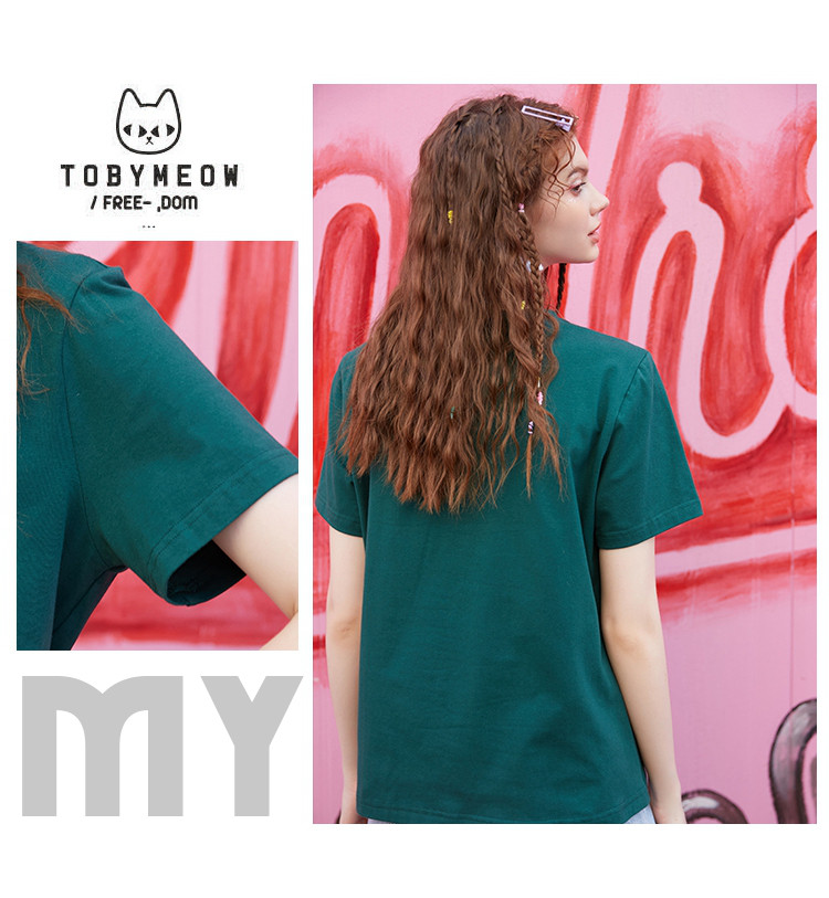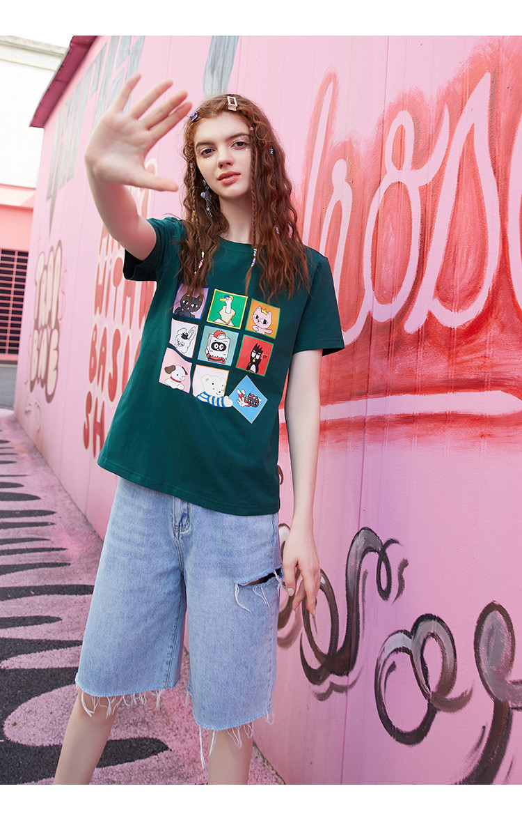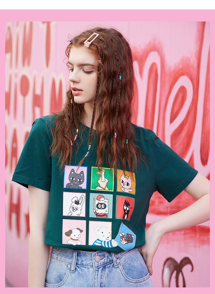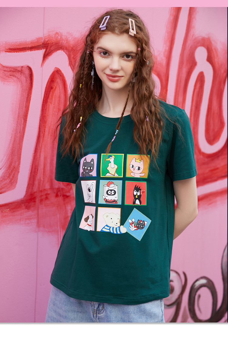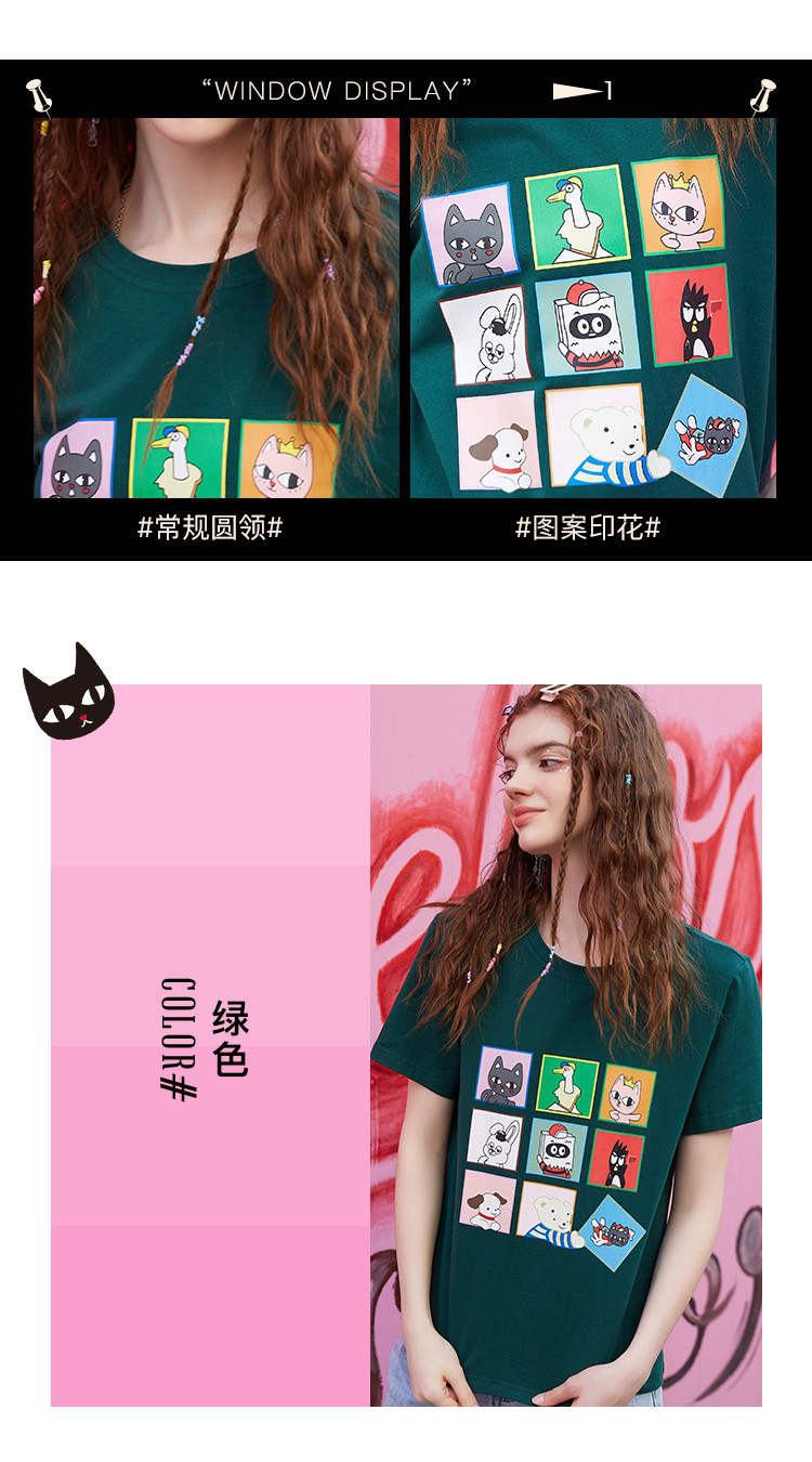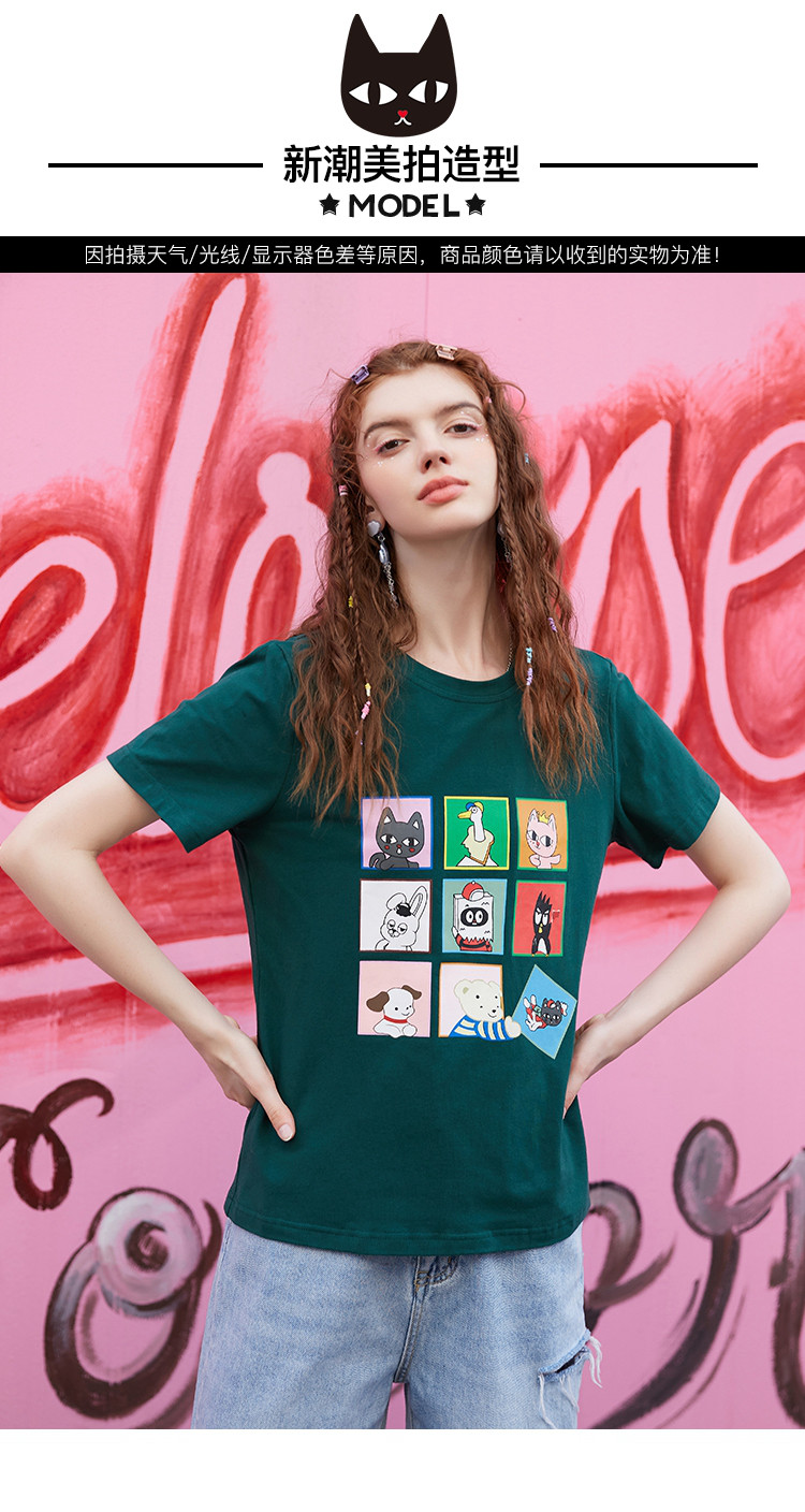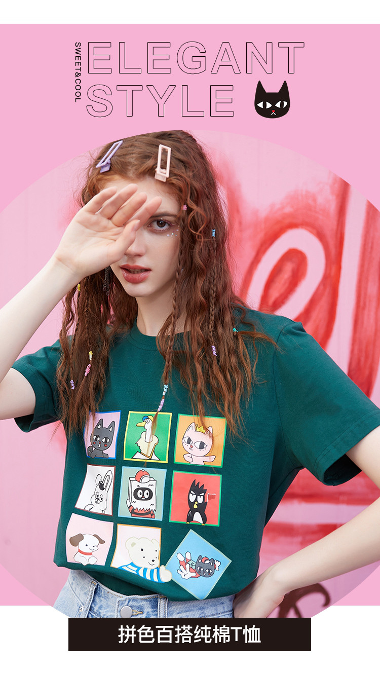 商品名称:夏款时尚拼图印花拼色短袖上衣正肩百搭个性女式T恤 234077
