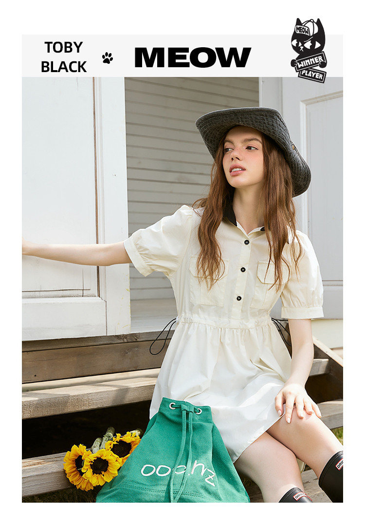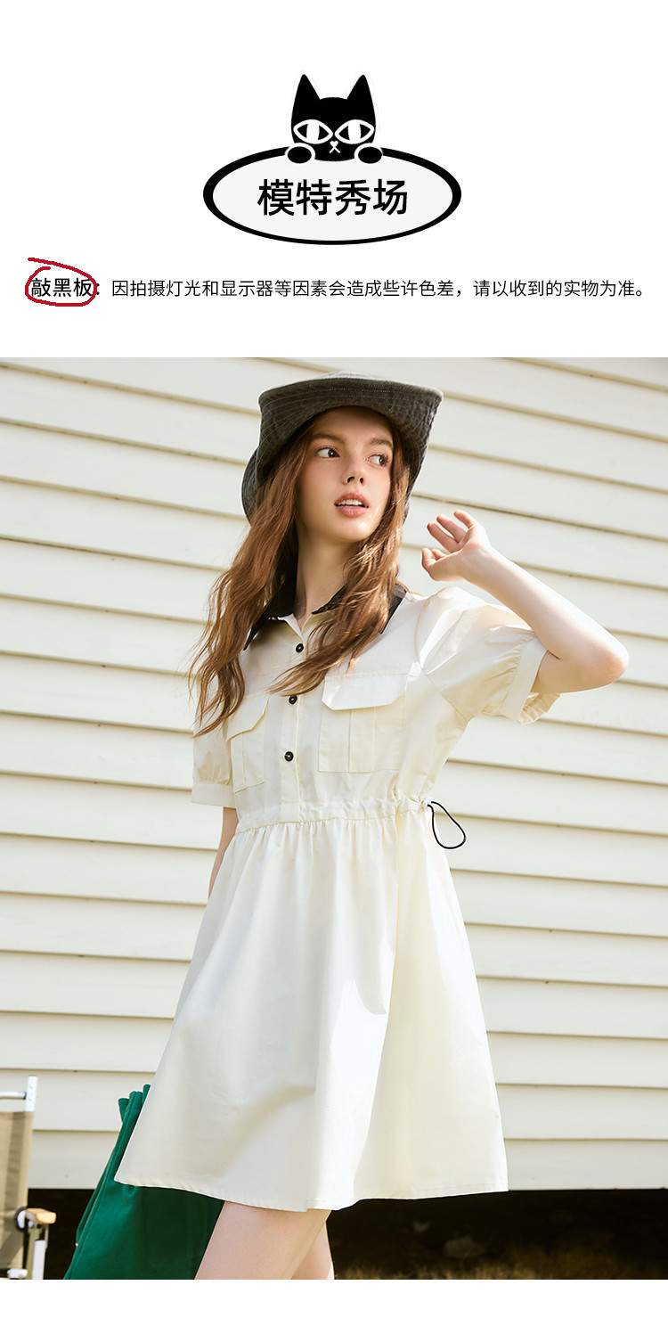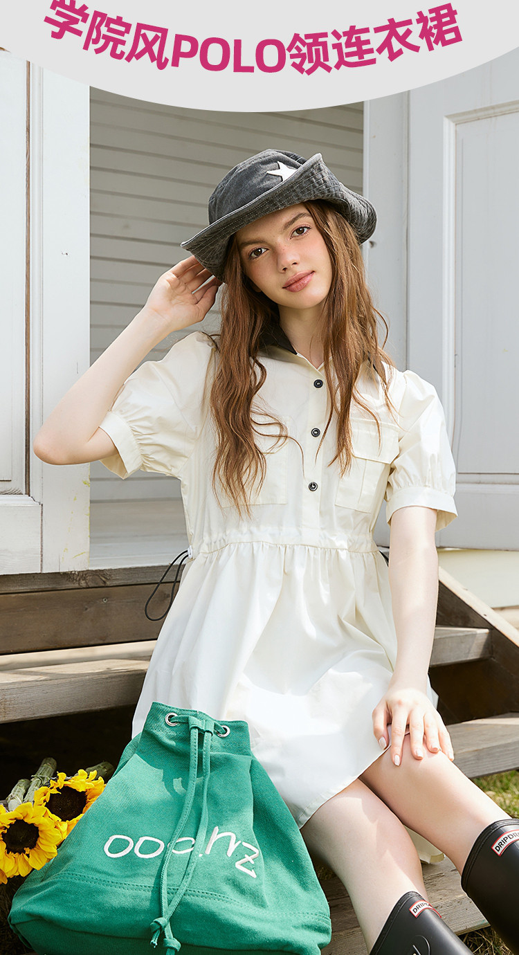商品名称:夏季学院风Polo领收腰显瘦纯色简约甜美风连衣裙 650205