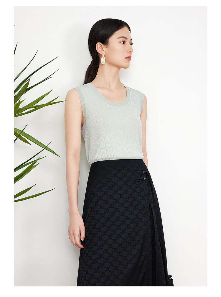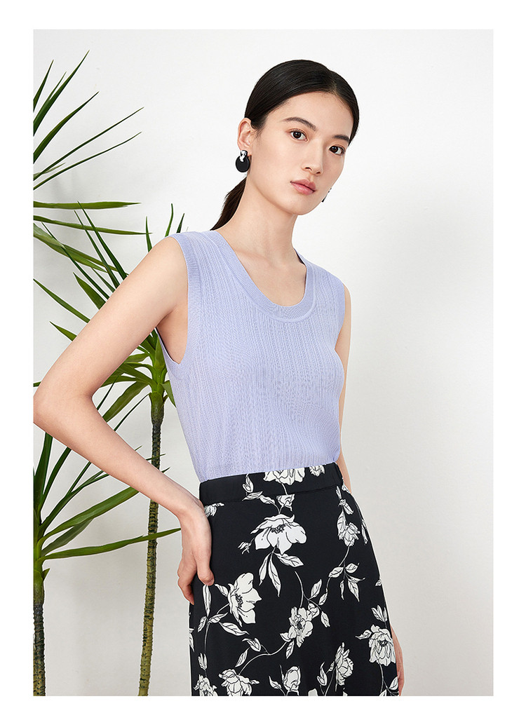 玖姿旗下安娜蔻系列圆领背心女装夏季职业纯色打底上衣 354764