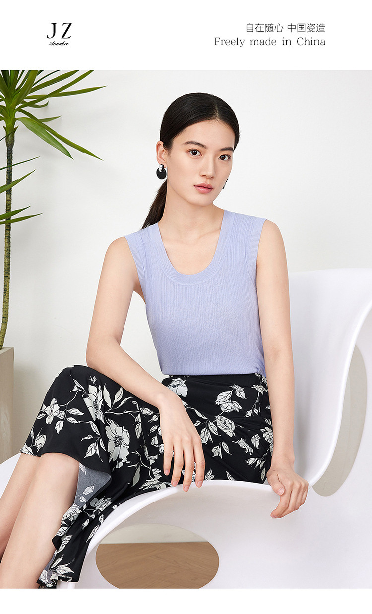 商品名称:玖姿旗下安娜蔻系列圆领背心女装夏季职业纯色打底上衣 354764