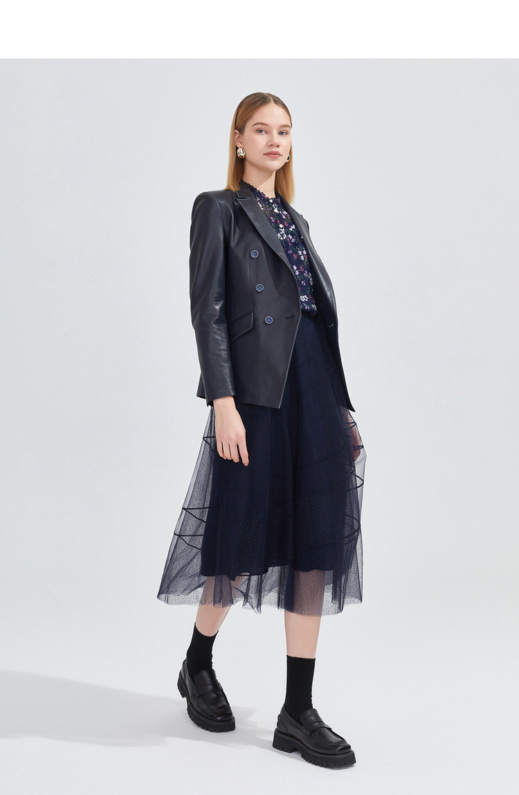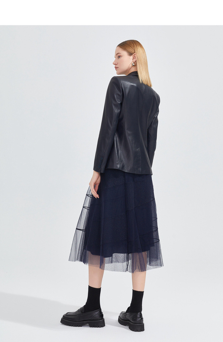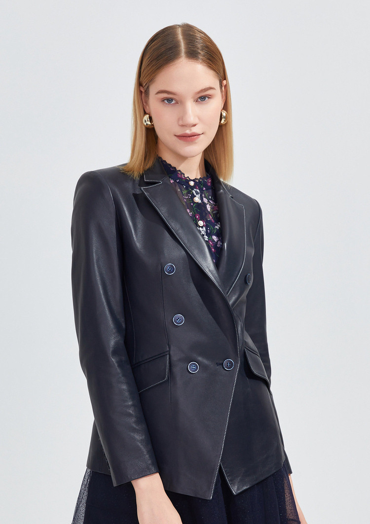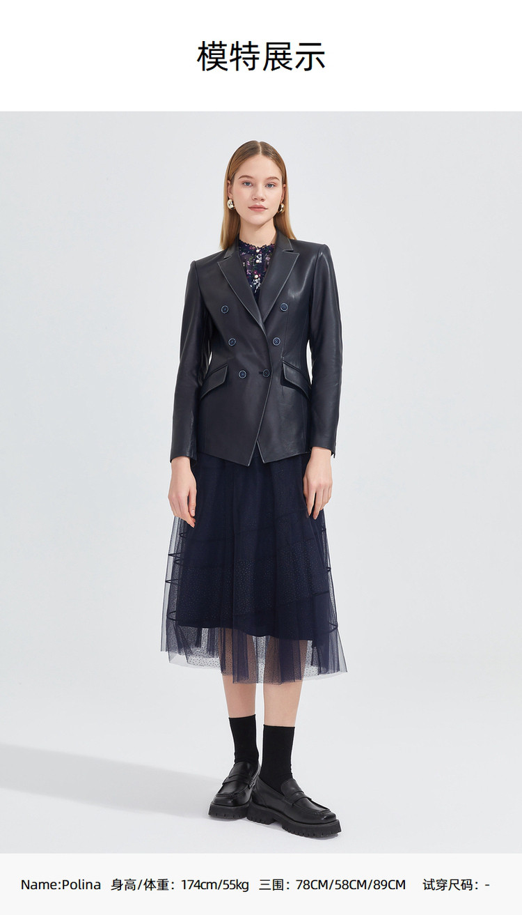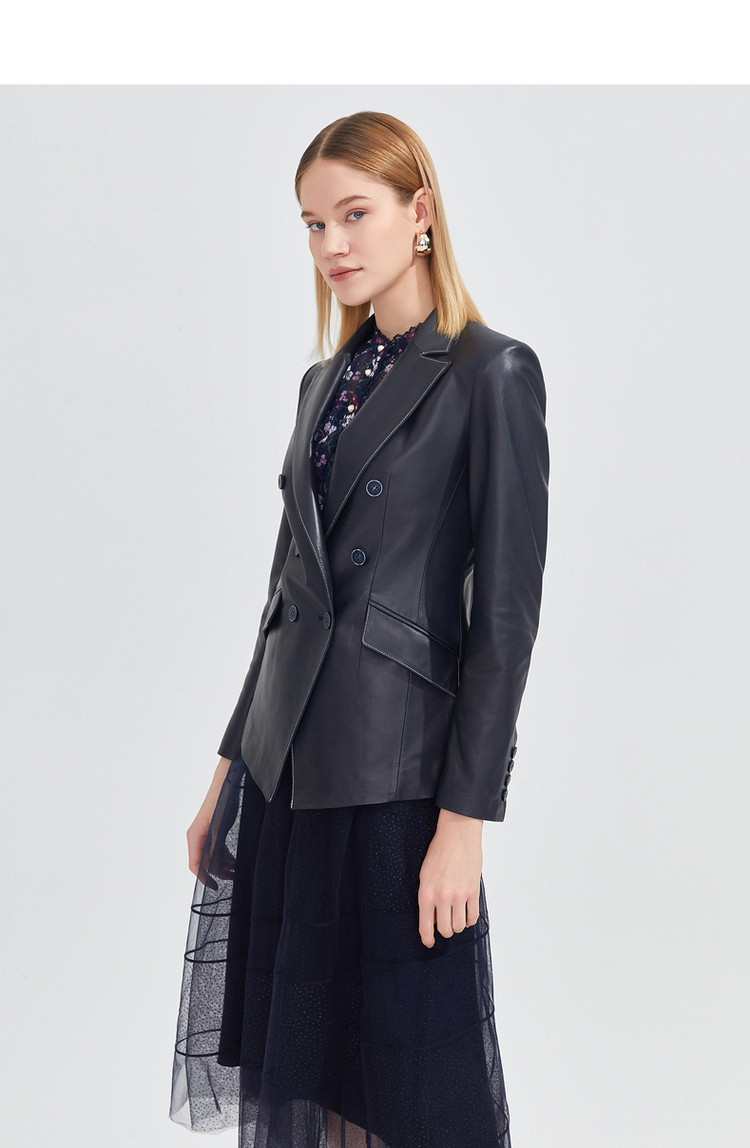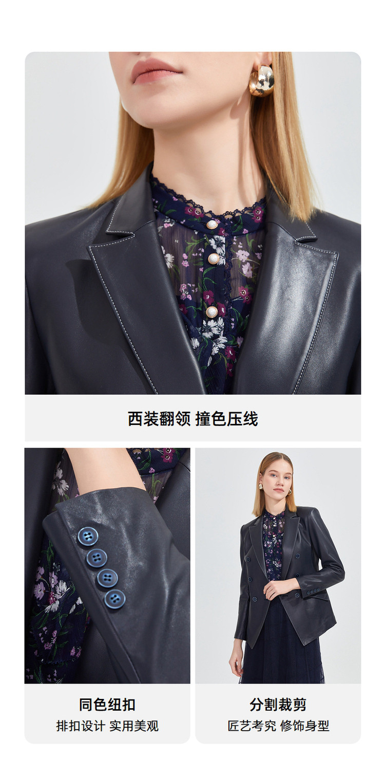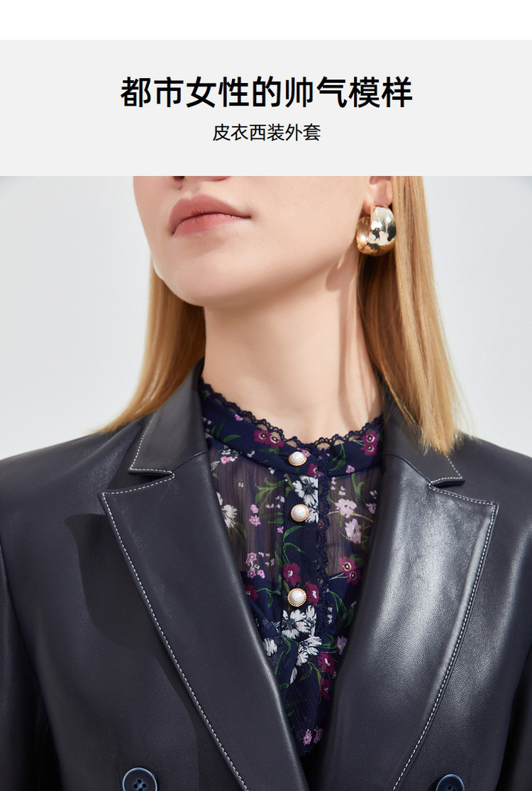 商品名称:玖姿春季复古感修身干练通勤皮质西装外套 072588