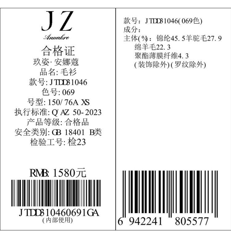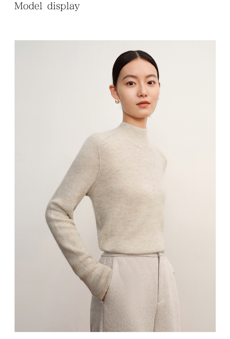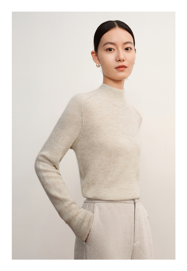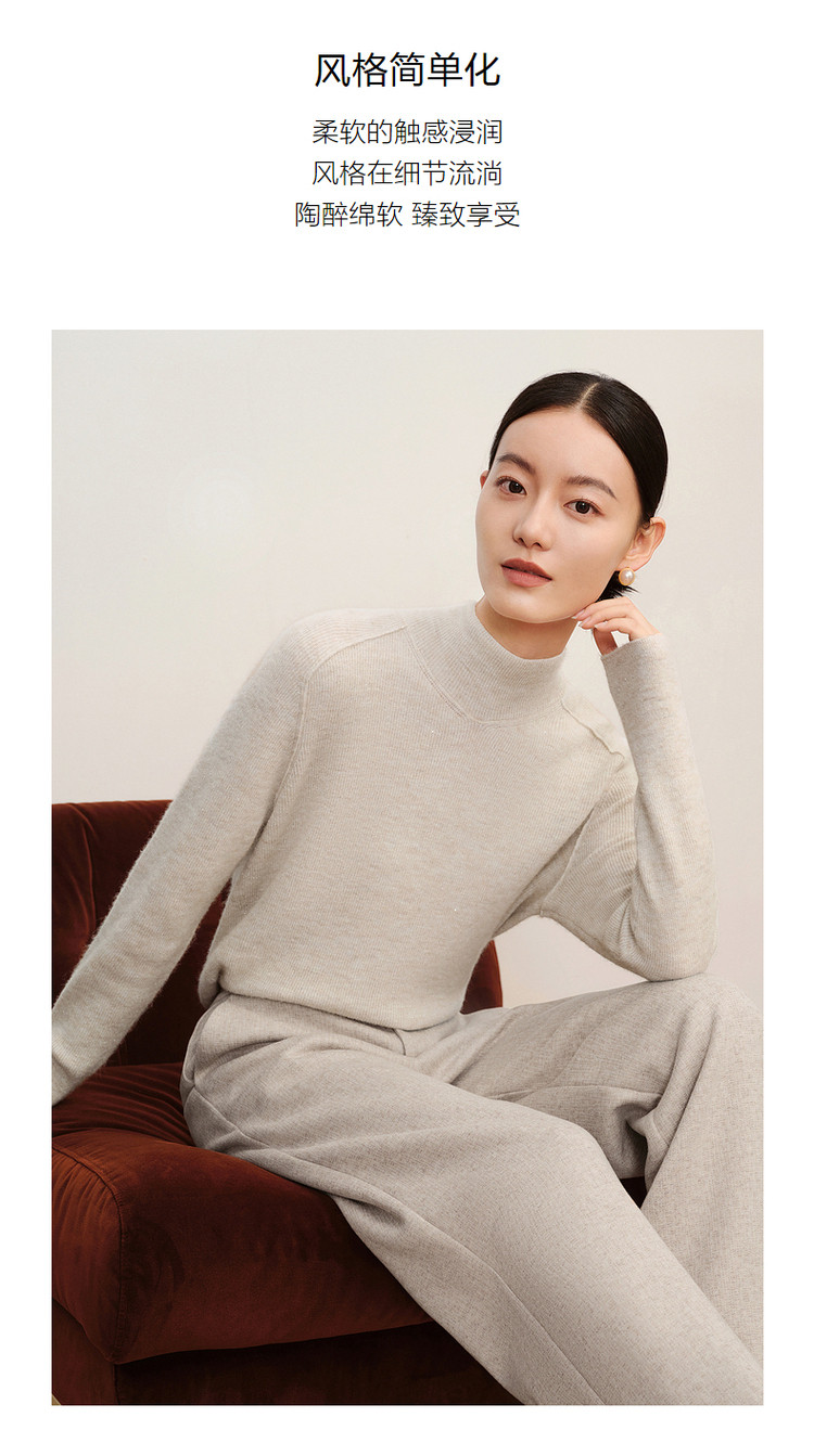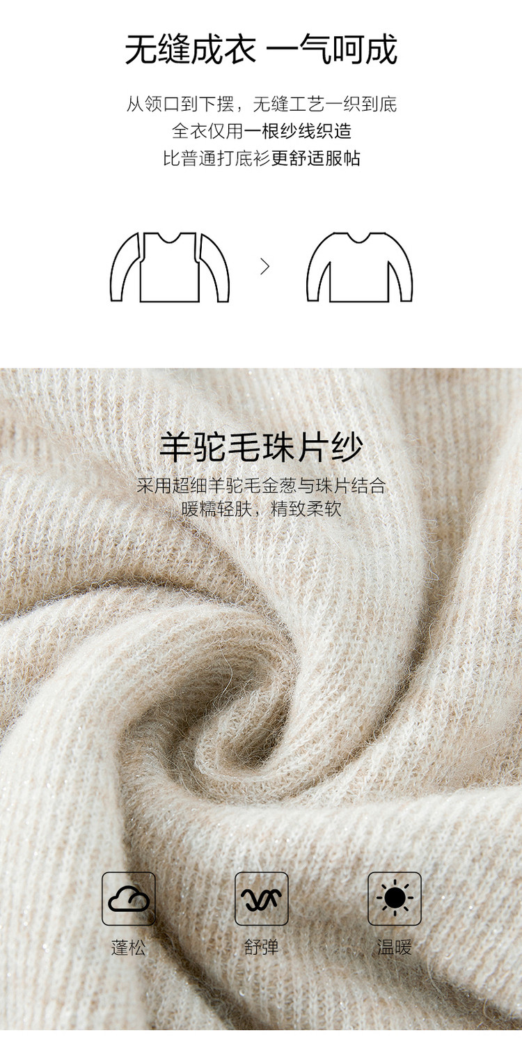 商品名称:玖姿旗下安娜蔻系列柔软舒适无缝一体羊毛珠片混纺毛衫女冬季 651596
