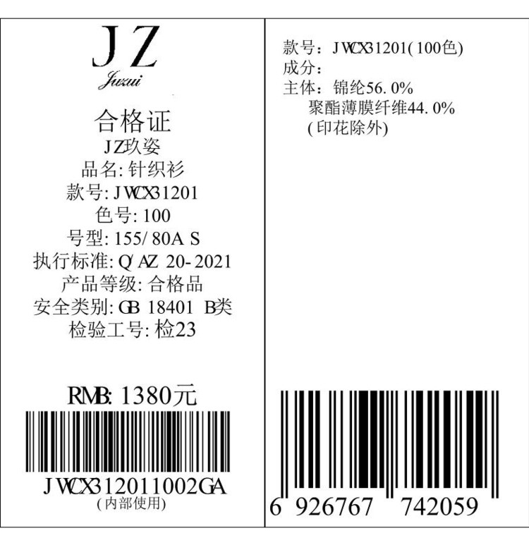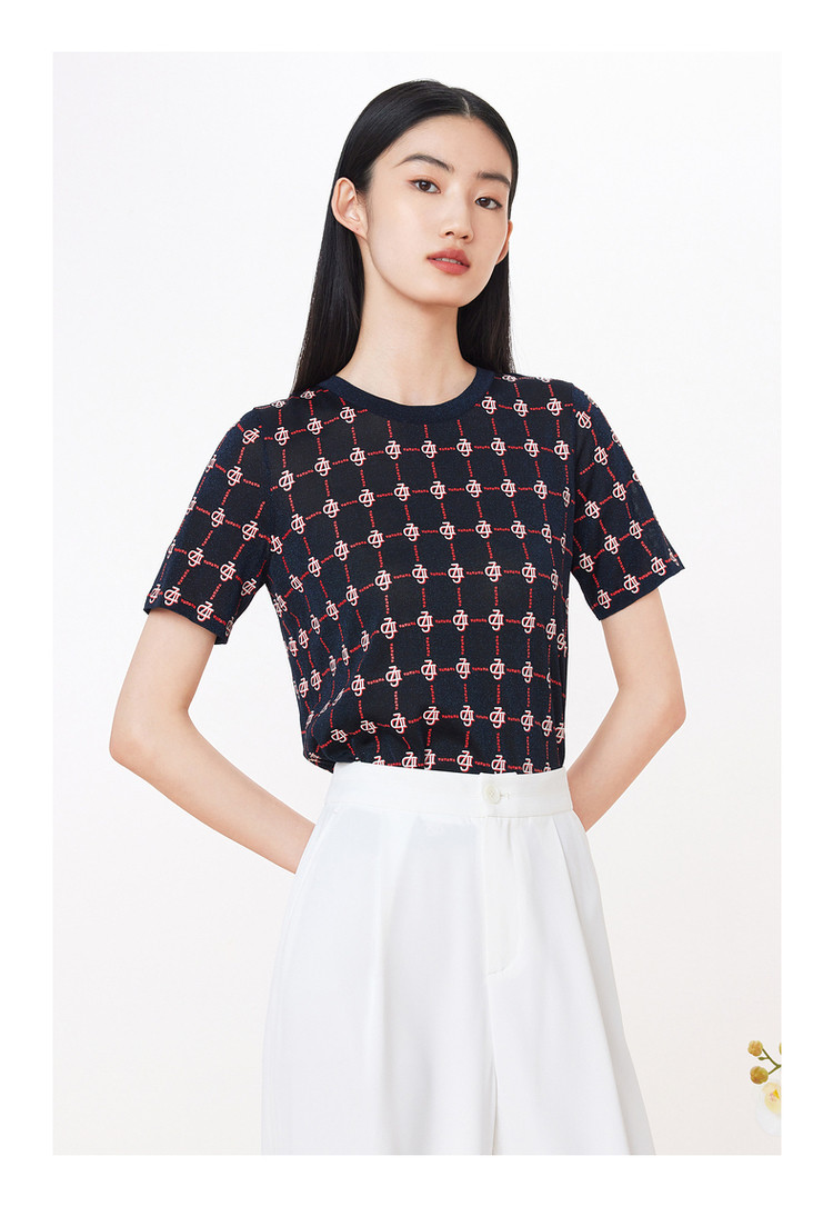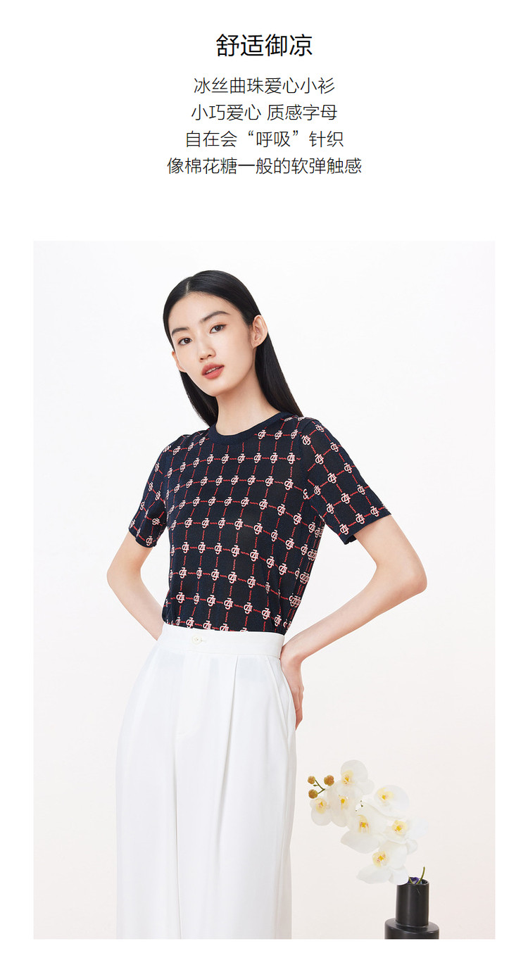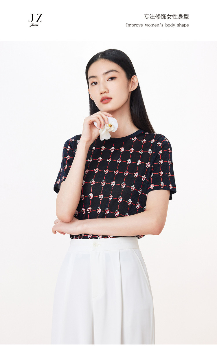 商品名称:JZ玖姿商场同款夏季洋气休闲字母短袖针织衫JWCX31201 504460