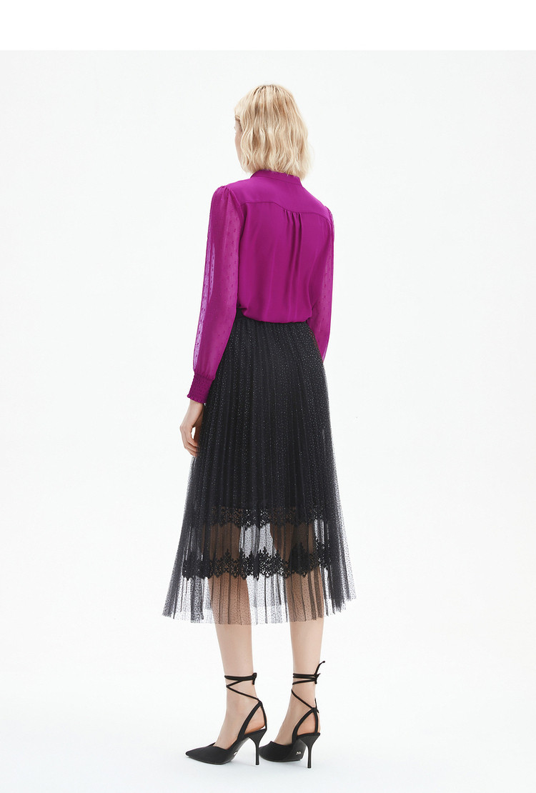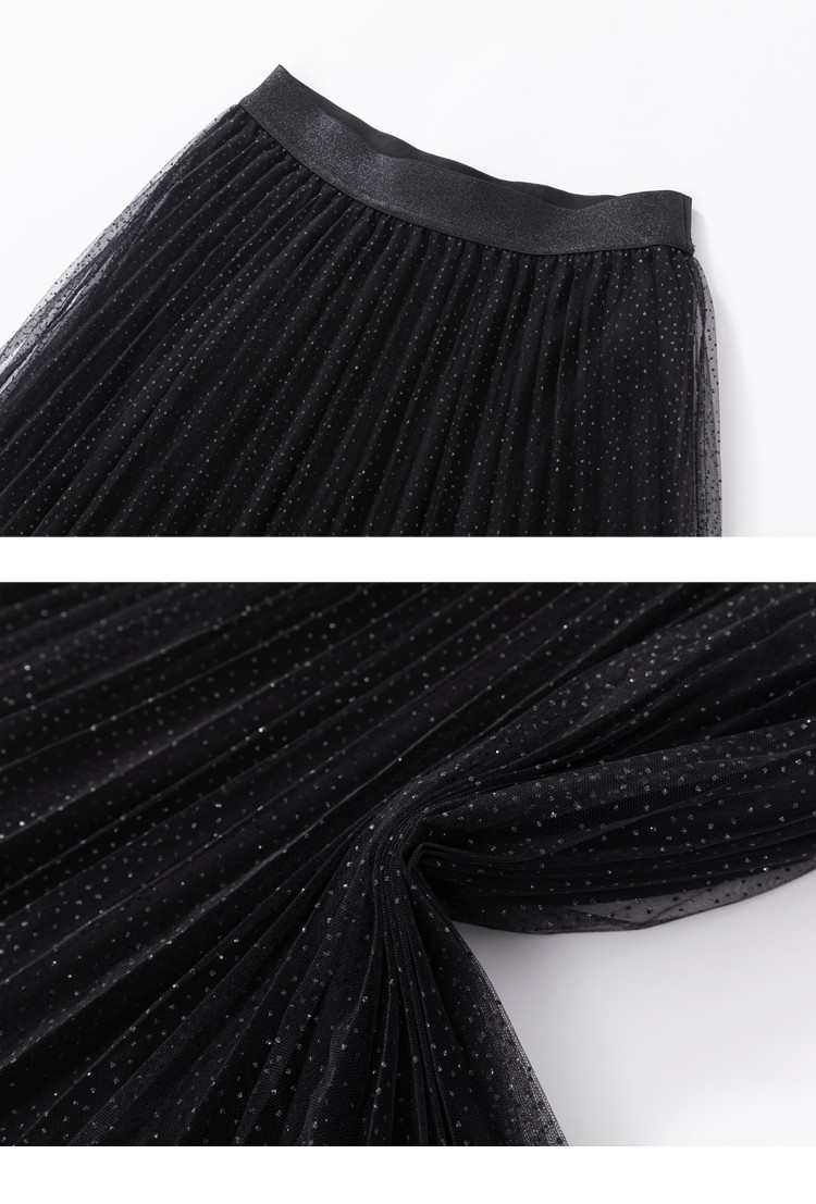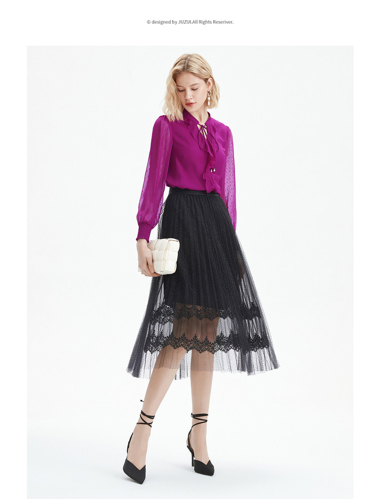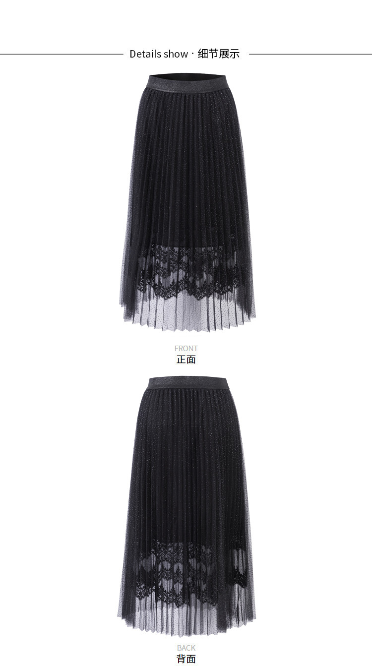 商品名称:玖姿旗下安娜蔻系列时尚浪漫网纱蕾丝百褶裙女中长半身裙 382220
