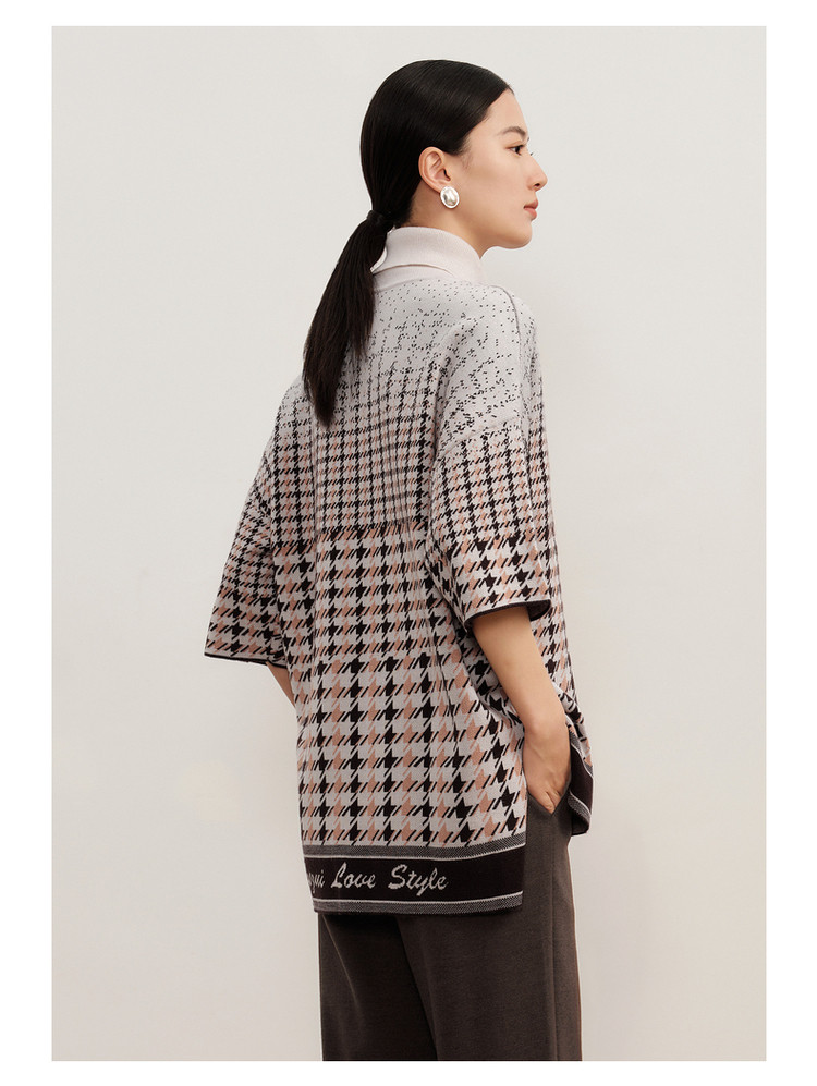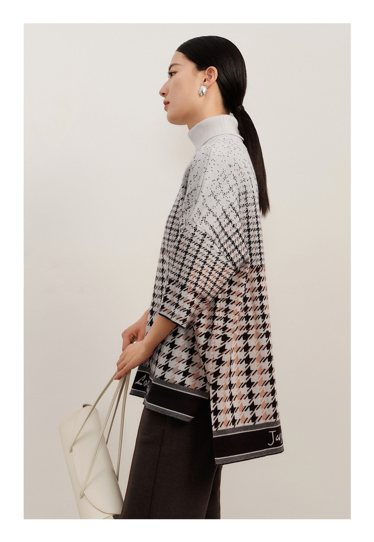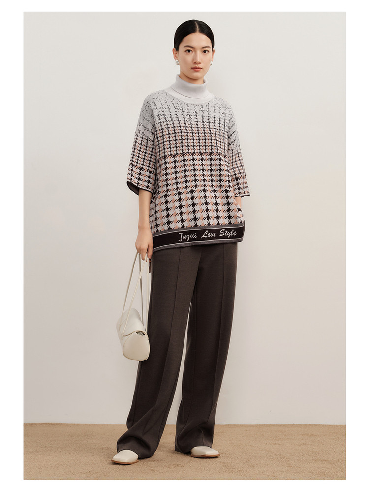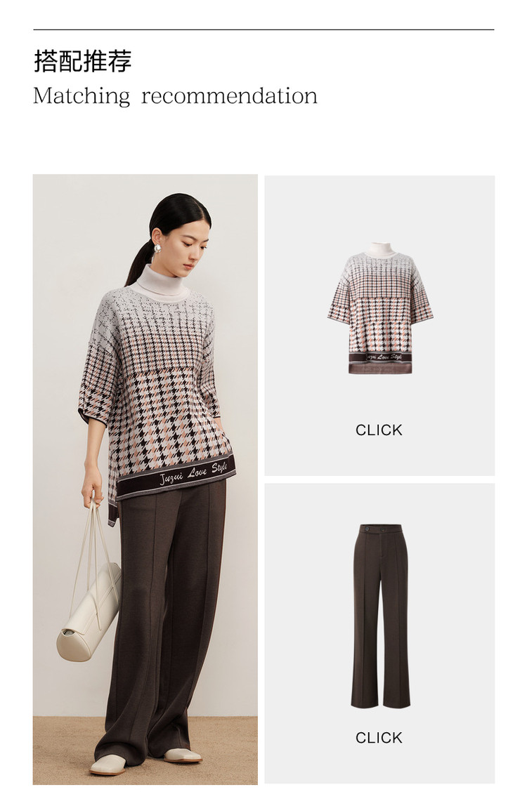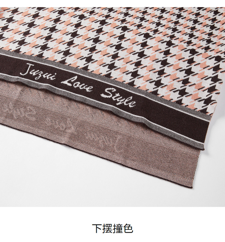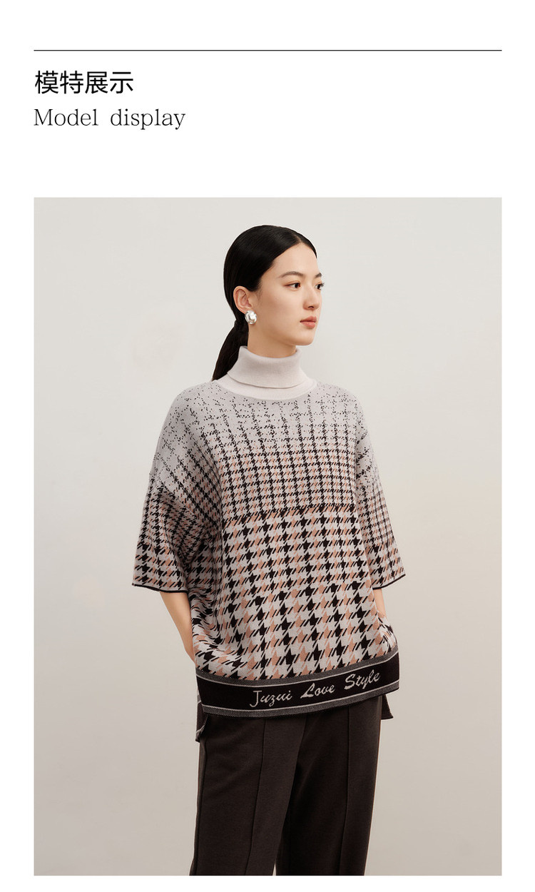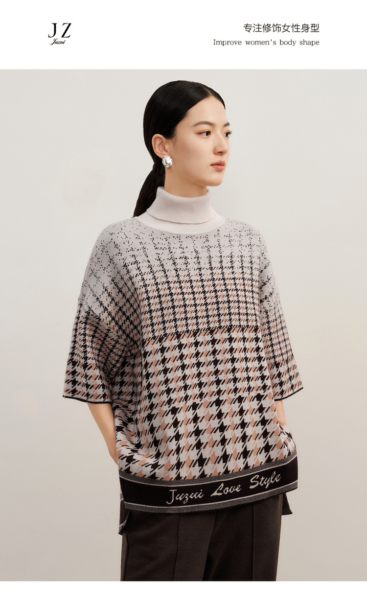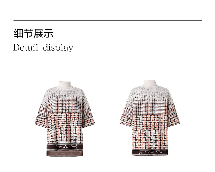 商品名称:商场同款JZ玖姿千鸟格高领宽松针织衫女冬季JWBD31101 514764