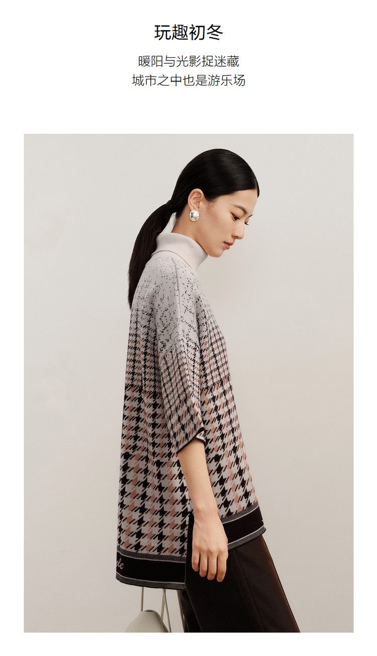 商场同款JZ玖姿千鸟格高领宽松针织衫女冬季JWBD31101 514764