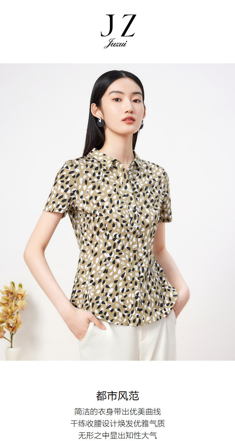 JZ玖姿印花全棉衬衫女装夏季印花图案上衣JWCX60215 353228